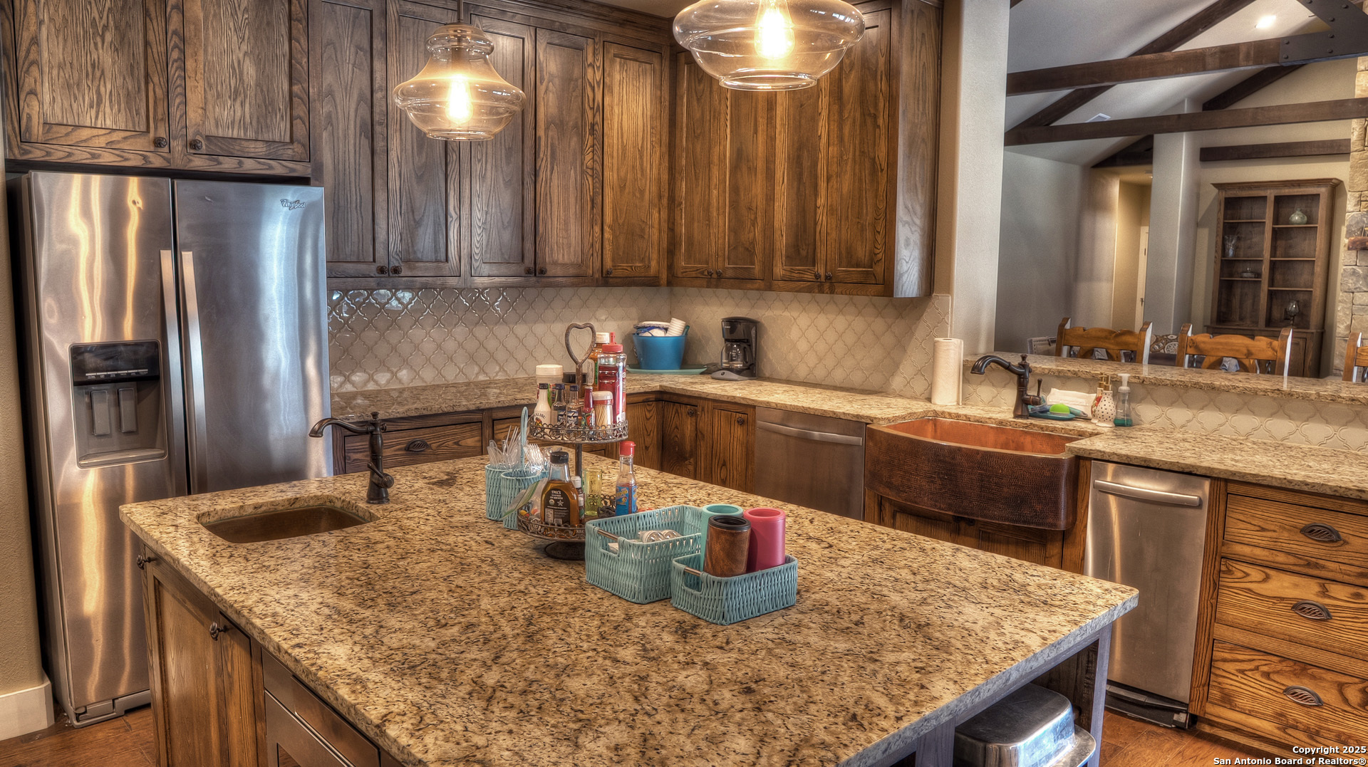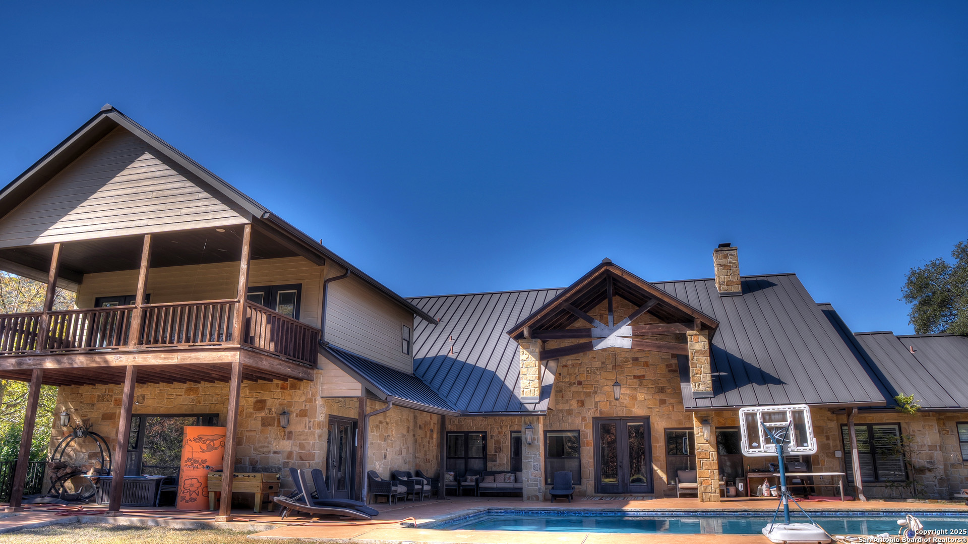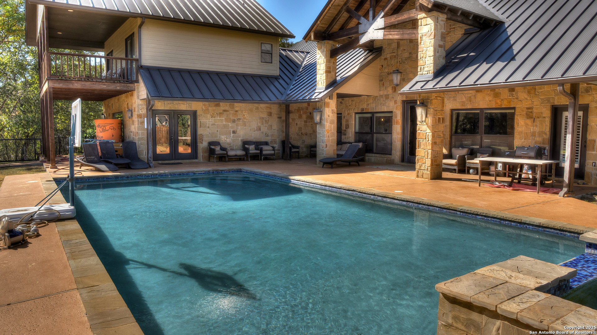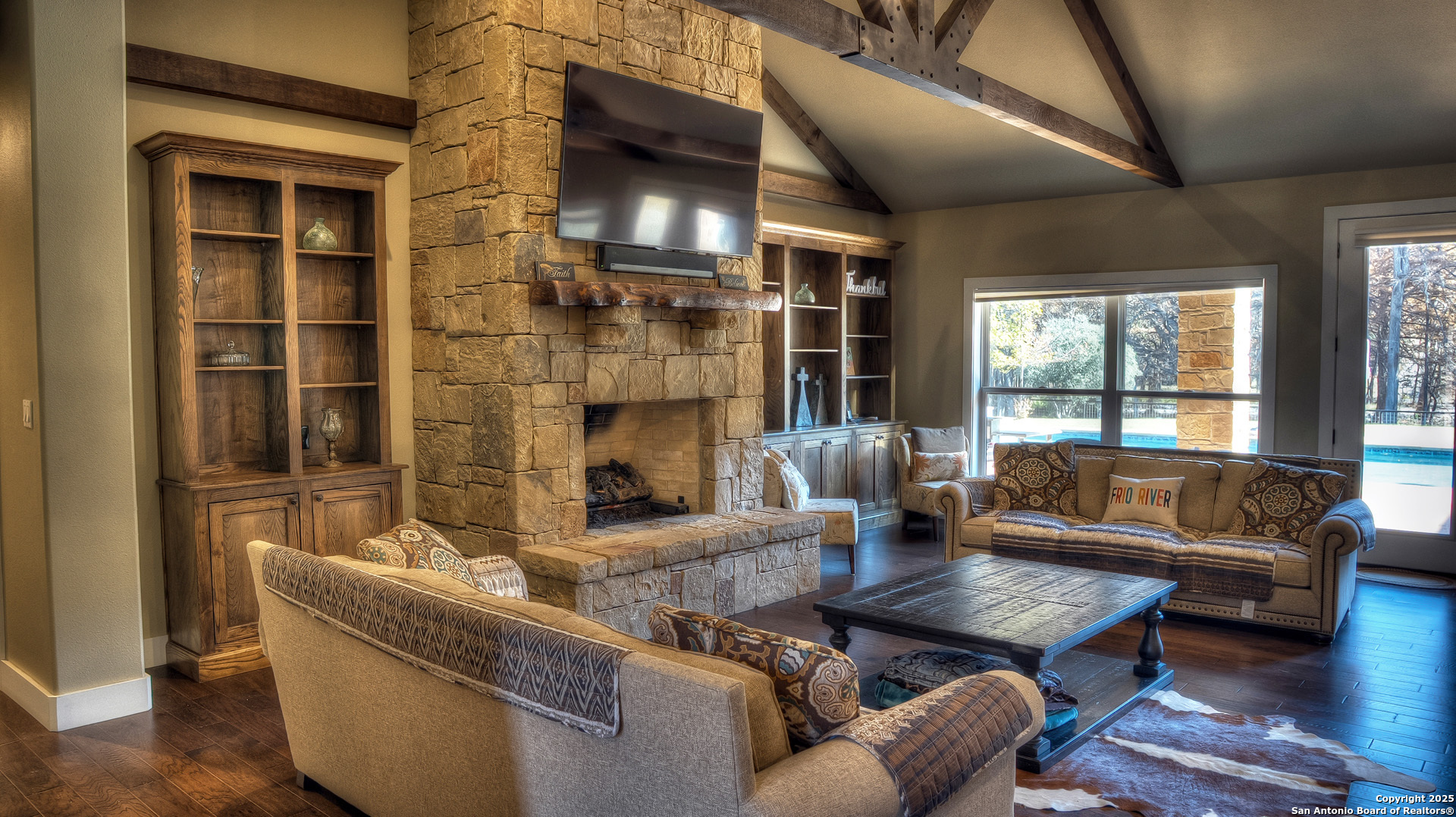 **Luxury Living on the Frio** This stunning property in the Texas Hill Country is sure to impress and check all the boxes! Spanning 1.5 acres, it features 112' of Frio River frontage. Built in 2016, the main home features 3 bedrooms and 2 bathrooms and offers an estimated 3,000 square feet of living space. The primary bedroom includes an ensuite bathroom with a soaking tub, dual vanities, and an oversized walk-in closet. The kitchen is a chef's dream, equipped with built-in stainless steel appliances, a vegetable sink, and ample workspace. Adding to the luxury aesthetic are the floor-to-ceiling rock fireplace and exposed wooden beams that enhance the home's architectural design. Upstairs, the Media/Game Room provides an additional amenity for both owners and guests. The Guest Casita features two bedrooms and two bathrooms, along with its own kitchen, laundry facilities, a private balcony overlooking the river, and a separate side entrance, making it ideal for renting out. The sparkling pool includes a spa with a waterfall, surrounded by a spacious patio perfect for outdoor entertaining and summer fun. Being sold fully-furnished. No restrictions, No HOA or annual dues.
