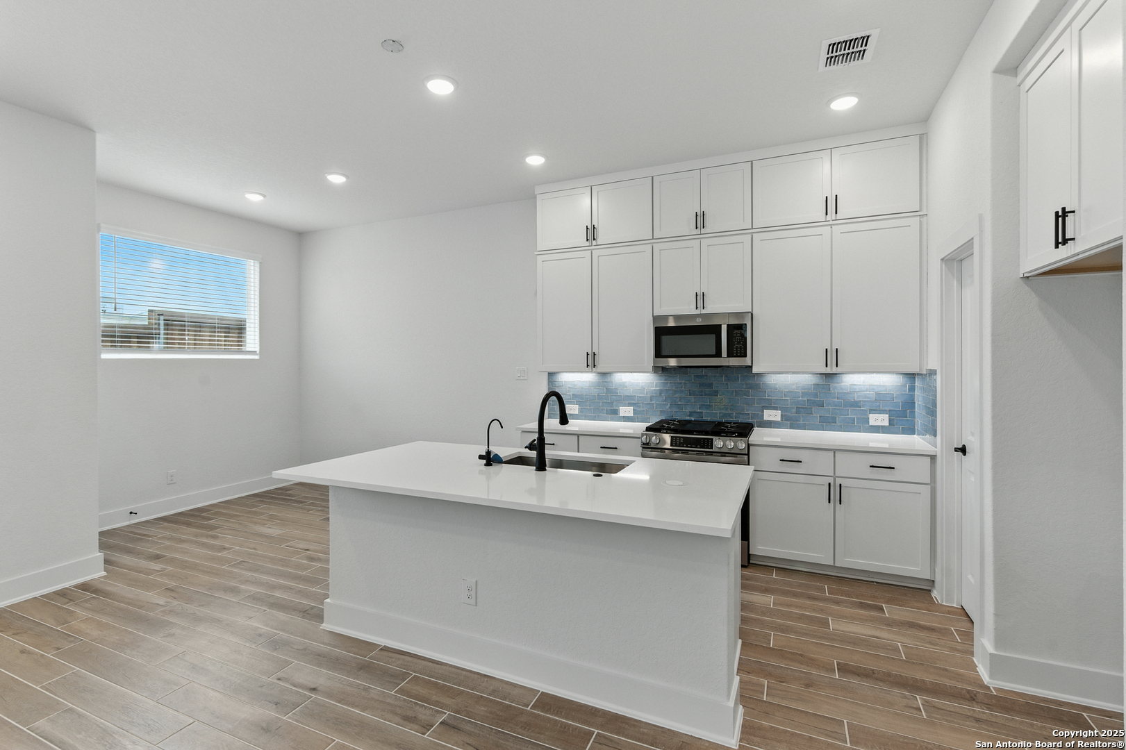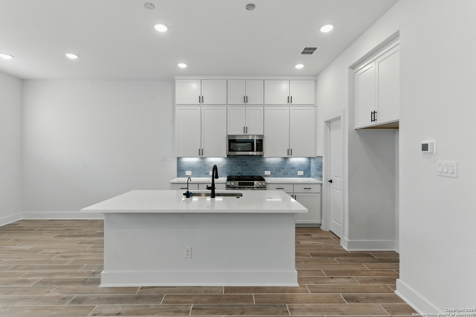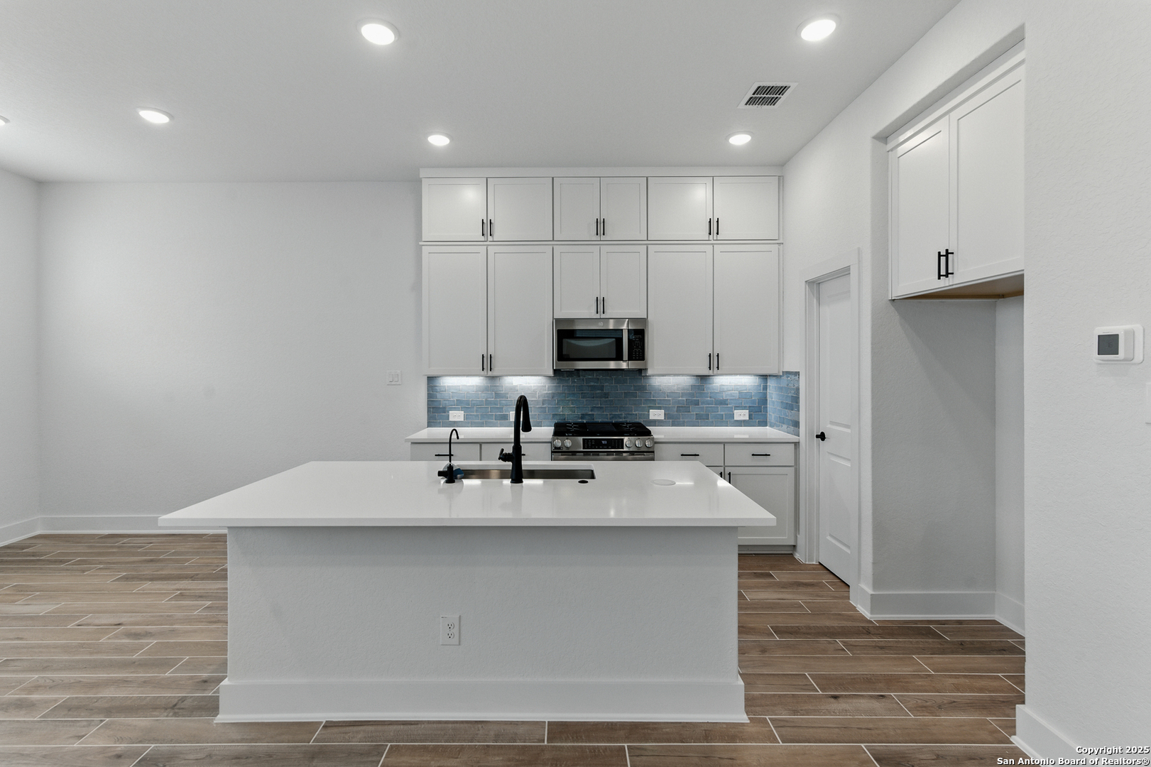 Move in Ready! Beautiful home very close to UTSA, the Medical Center and more! Don't sleep on this generously upgraded unit. This floorplan features a walk-in pantry, double stacked cabinets, island seating and comes with stainless steel appliances. With 3 bedrooms and 2.5 baths, this unit has it all. The back covered patio leads to a landscaped back yard with wrought iron fencing and a private gate leading to the community park. There are no rear neighbors, and the home is Energy Star rated; it won't last long!