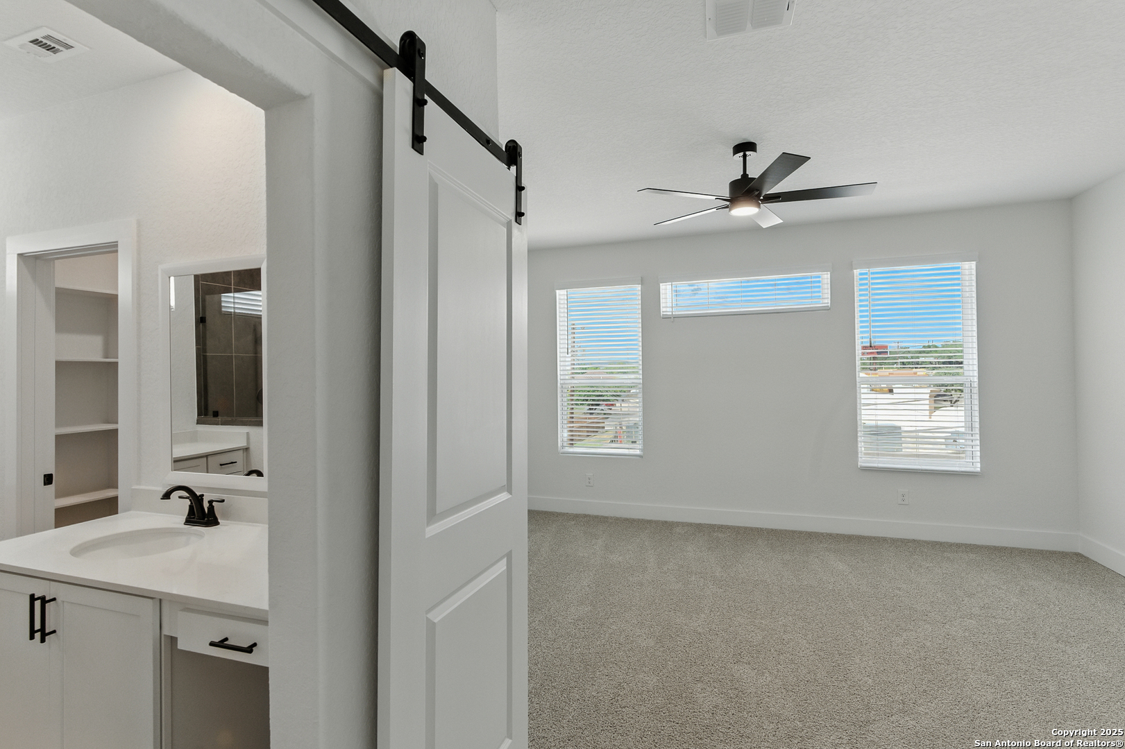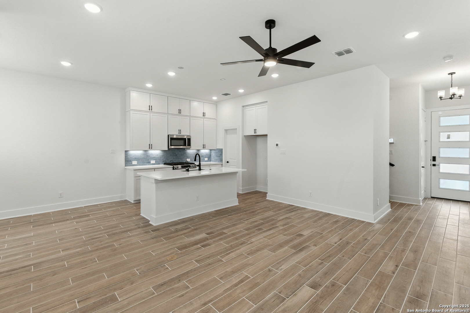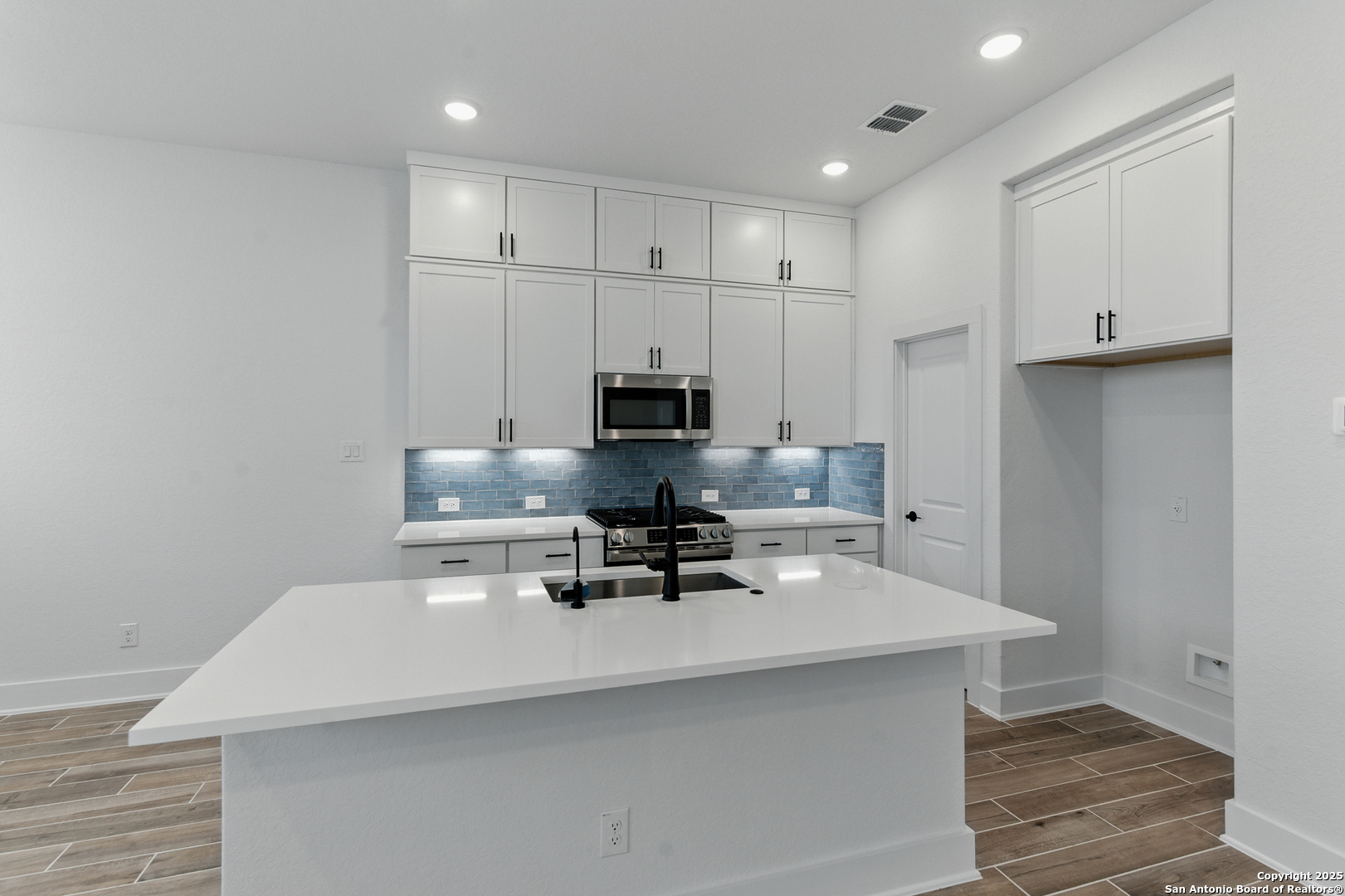 Move in Ready! Beautiful home very close to UTSA, the Medical Center and more! Don't sleep on this generously upgraded unit. This floorplan features a walk-in pantry, double stacked cabinets, island seating and comes with stainless steel appliances. With 3 bedrooms and 2.5 baths, this unit has it all. The back covered patio leads to a landscaped back yard with wrought iron fencing and a private gate leading to the community park. There are no rear neighbors, and the home is Energy Star rated; it won't last long!