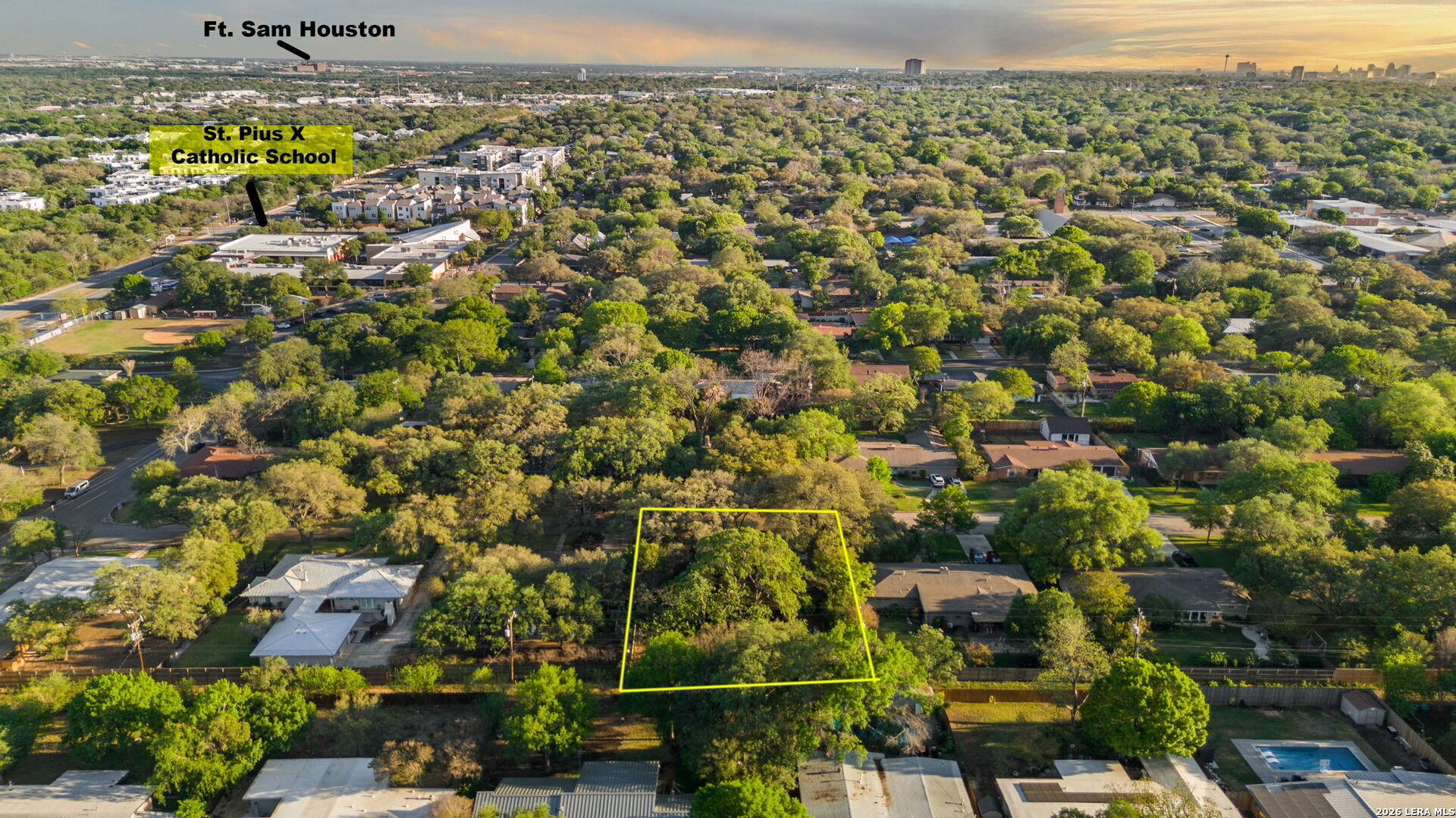Nestled beneath mature oak trees in the highly desirable Alamo Heights-Northwood area (78209), this impeccably maintained single-story home blends timeless mid-century character with modern functionality. Originally built in 1957 and thoughtfully renovated throughout, the home offers a bright, open floor plan designed for today's lifestyle. Featuring 3 bedrooms and 3 bathrooms and a flex office with closet than can feasible be used as a fourth bedroom. It includes two spacious primary suites, with a layout that is ideal for multi-generational living or hosting guests. The master suite serves as a private retreat, complete with generous proportions and a luxurious walk-in closet. Enjoy two expansive living areas with updated finishes and seamless flow. The inviting family room boasts a vaulted ceiling and opens directly to the kitchen-perfect for everyday living and entertaining. The beautifully updated kitchen features custom cabinetry, Silestone quartz countertops, stainless steel appliances, a butler's pantry, a large island, and abundant storage. Set in a serene, tree-lined setting, this home offers both tranquility and convenience with easy access to the airport, premier shopping, dining, and major highways. A rare combination of charm, flexibility, and elevated comfort in one of the area's most sought-after locations.