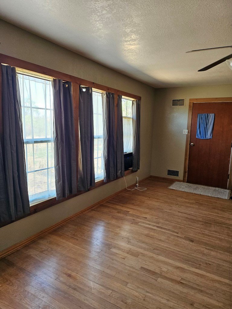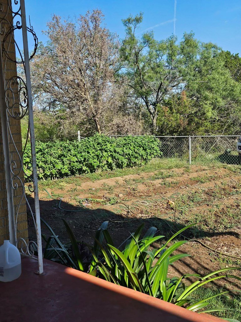 Nice brick, hill country home on 5.9 acres. 3-4 bedroom 2 bath home with hard wood floors throughout. Fireplace, big kitchen and formal dining room . Attached garage and new roof. Good water well and an out building now used as chicken coop. Fenced on 2 sides. Lots of white-tailed deer, turkey and axis in the area. Great access to Tri-County road with lots of privacy. Could be divided.