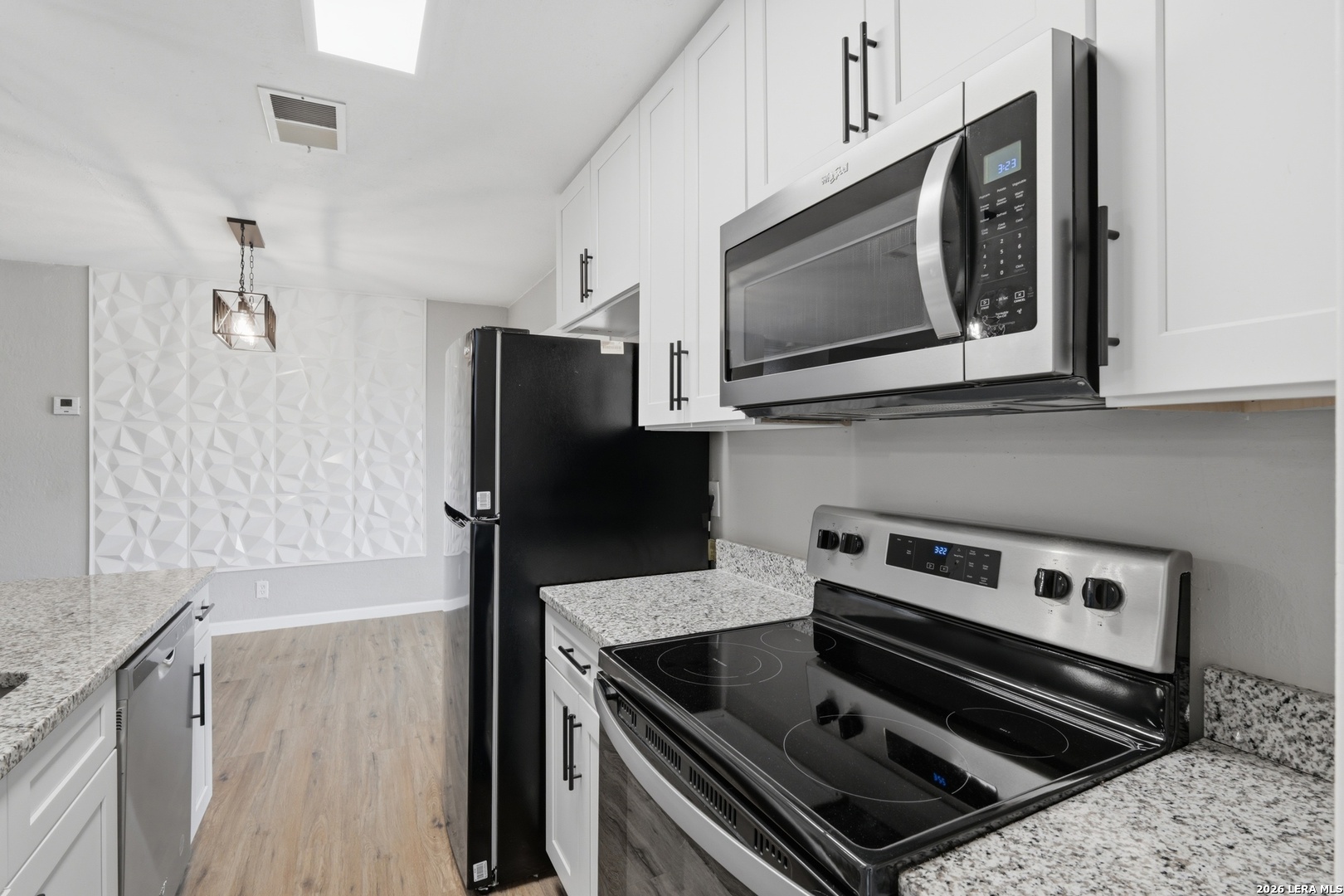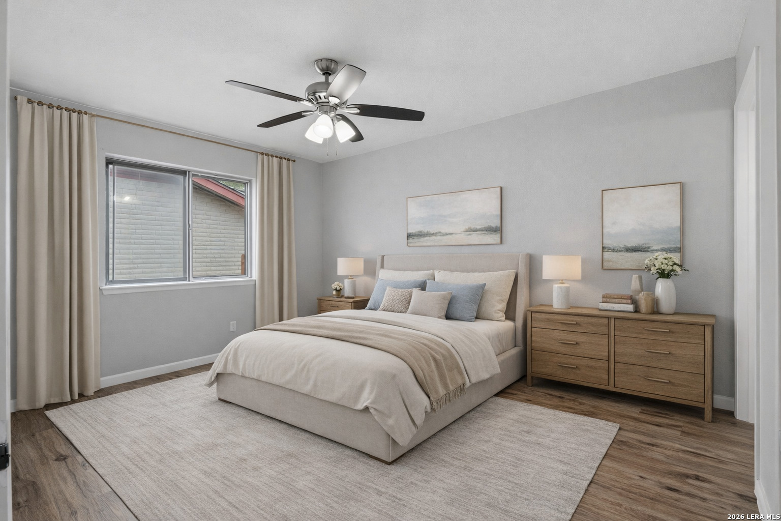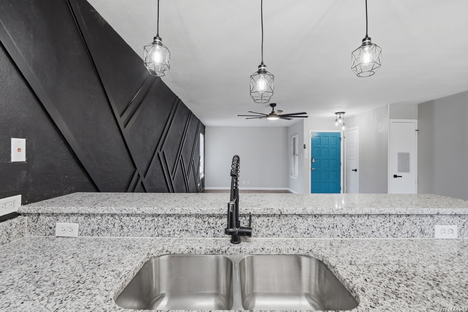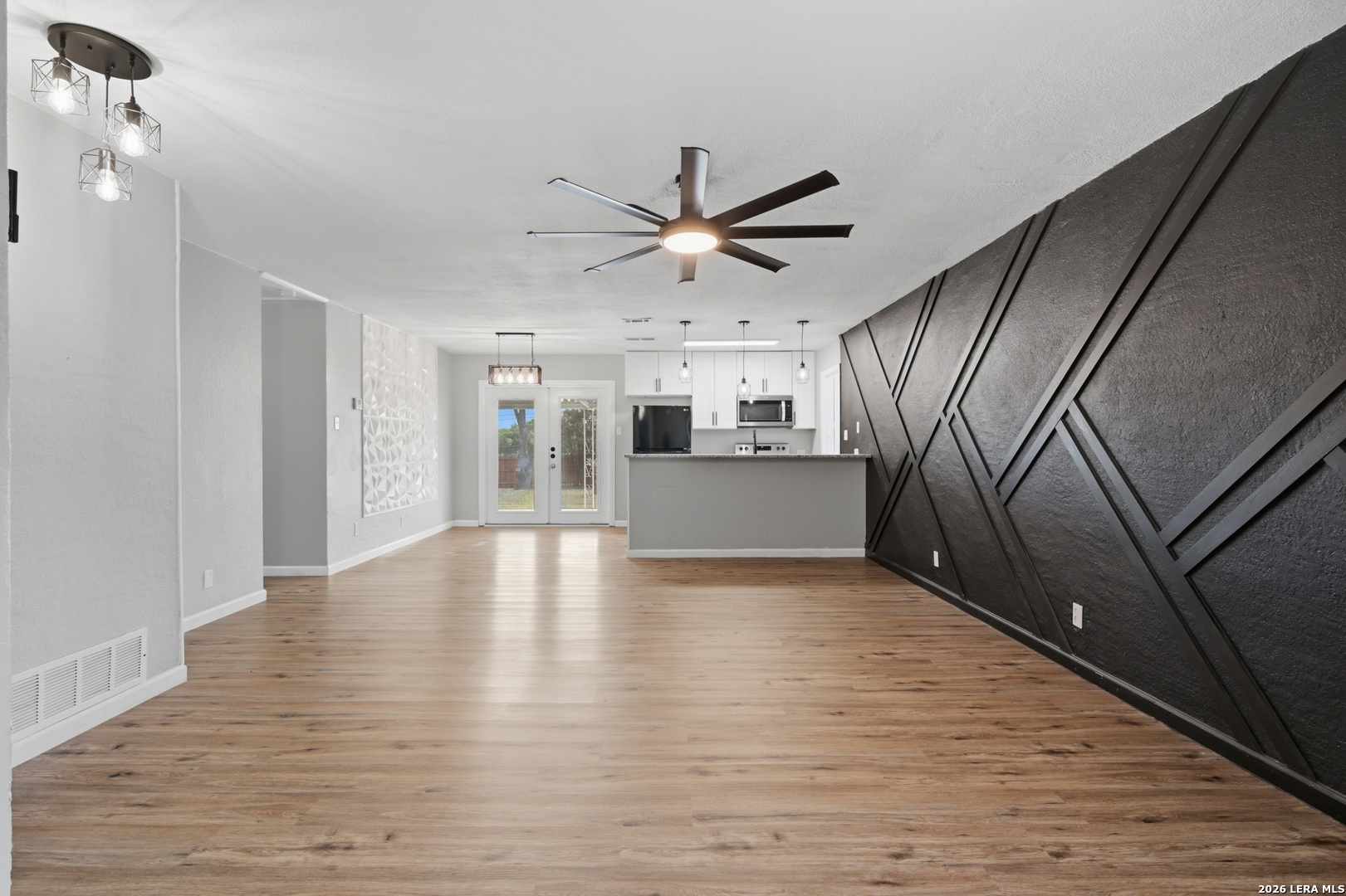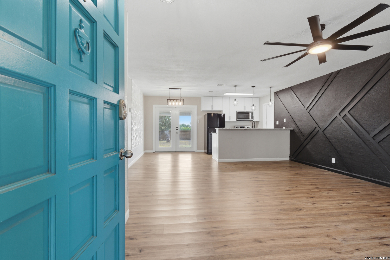 Welcome to this beautifully refreshed home in the heart of San Antonio offering a clean, modern feel with standout design elements throughout. Step inside to an open-concept living space anchored by a striking custom accent wall that adds depth and character, complemented by abundant natural light that flows seamlessly into the dining area and kitchen. The kitchen features crisp white cabinetry, sleek countertops, stainless steel appliances, and a functional layout designed for both everyday living and easy entertaining. The spacious bedrooms offer flexibility for guests, work-from-home needs, or a personal retreat, all finished in a neutral palette ready for your personal style. Out back, enjoy a covered patio that extends your living space outdoors, perfect for relaxing evenings or weekend gatherings, with a generously sized yard offering plenty of room to make it your own. Conveniently located near major highways, shopping, dining, and everyday amenities, this move-in ready home delivers comfort, style, and accessibility all in one.