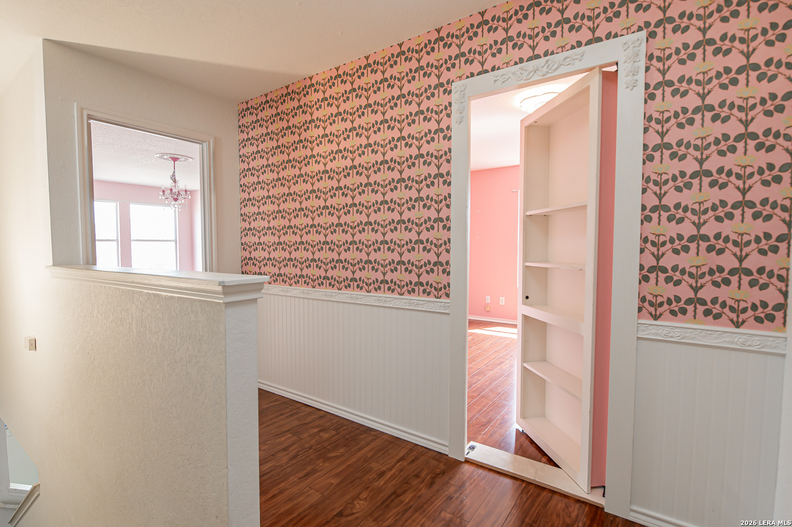 Spacious, Character-Filled Home with Hidden Bonus Room! Welcome to this expansive 3,660 sq ft two-story home in New Braunfels, offering generous living space, vibrant personality, and unique features you won't find in a typical home. Inside, you'll discover multiple large living areas filled with natural light, warm wood flooring, and bold designer-inspired accent colors that add personality and charm throughout the home. The thoughtful layout provides room to spread out while still maintaining an inviting, connected feel-perfect for entertaining or everyday living. One of the home's most exciting surprises is a hidden room tucked behind a built-in bookshelf, creating a fun and functional bonus space ideal for a private office, reading lounge, hobby room, secret retreat or simply an extra bedroom. The kitchen flows seamlessly into the dining and living areas, while upstairs offers spacious bedrooms including a large primary suite. Step outside to enjoy a large backyard with plenty of room to play, garden, or entertain. The outdoor space also features a covered patio for relaxing evenings and two storage units, providing extra room for tools, hobbies, or seasonal storage. With 3,660 square feet, this home offers an excellent price per square foot, making it an incredible opportunity for buyers seeking space, character, and value in New Braunfels. Some photos have been virtually staged to illustrate the home's potential and layout possibilities.