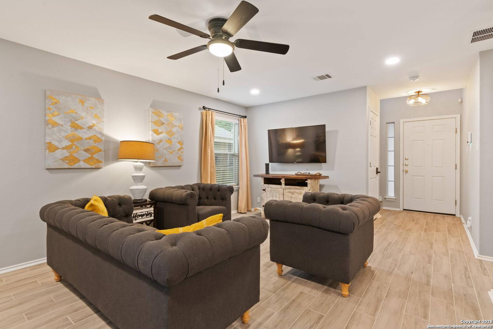 Discover modern living in this stunning 3-bedroom, 2.5-bathroom residence located minutes from Sea World, 1604, Hwy 90, and 151. This prime location offers convenient access to shopping, entertainment, and is within a short commute to Lackland Airforce Base. With the open layout concept, the living area becomes an extension of the kitchen, allowing natural light to flood eat in kitchen area and the living room space. Kitchen features granite countertops and stainless steel appliances. All spacious bedrooms are upstairs and there is no carpet throughout. Backyard boasts xeriscape landscape for easy maintenance. Schedule your showing today!!
