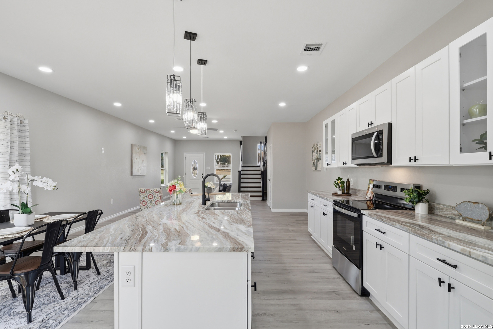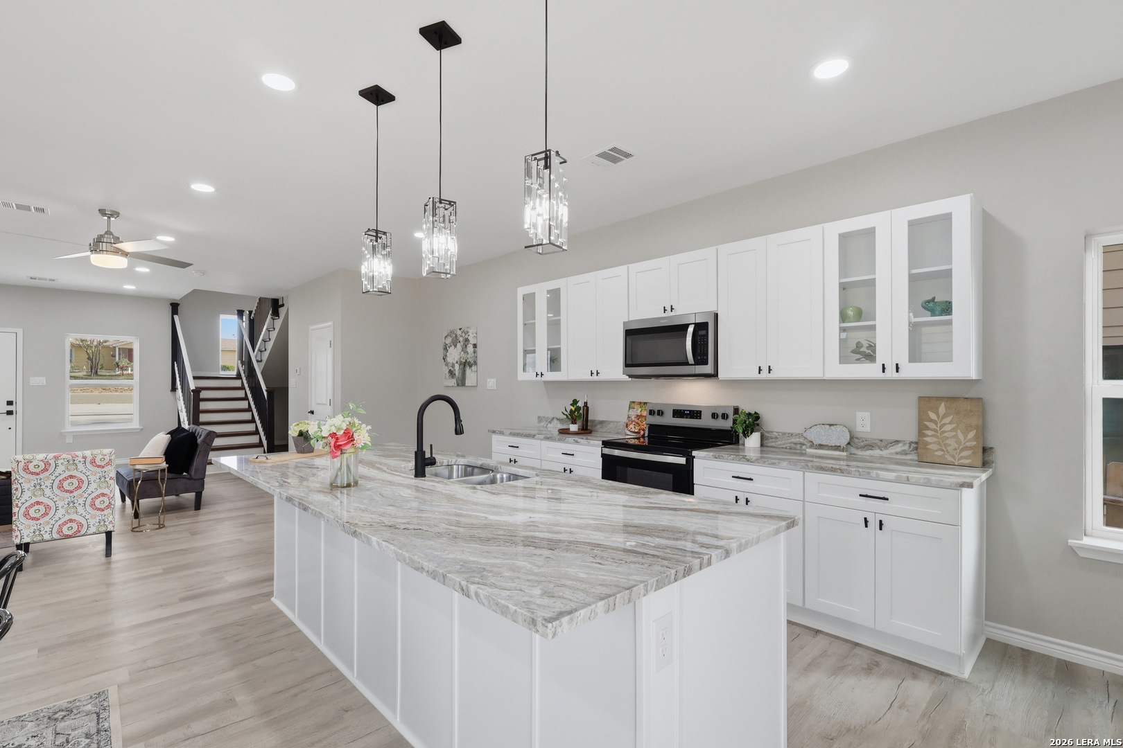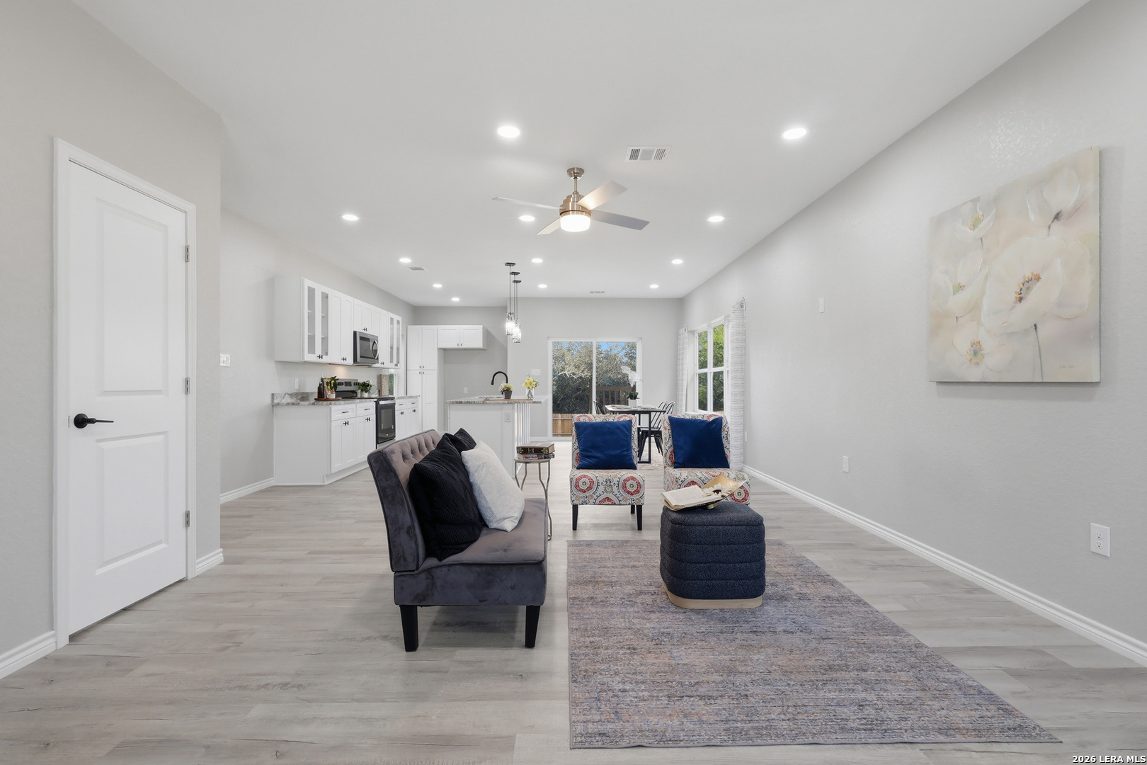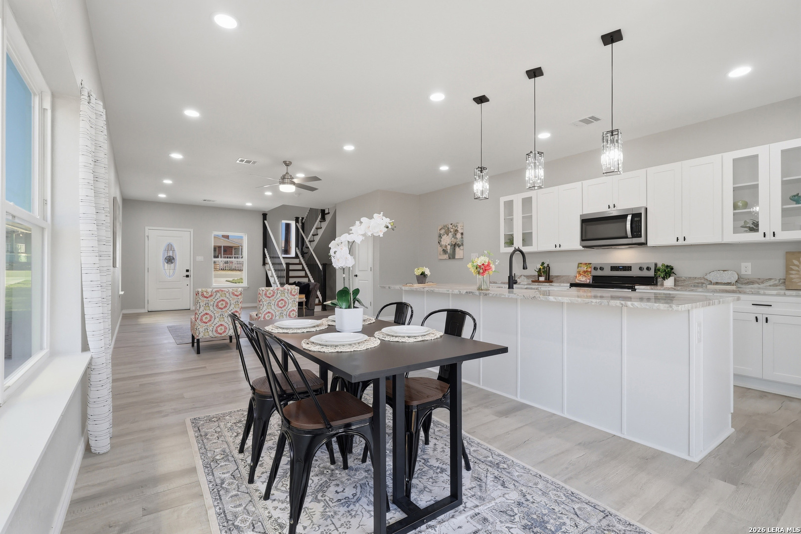 Welcome to 656 Canyon Circle Dr in Canyon Lake, TX-where elevated design meets effortless Hill Country living. This stunning 3-bedroom, 2.5-bath residence offers 1,626 square feet of thoughtfully curated interior space with a seamless open-concept layout ideal for both refined living and entertaining. The home showcases a modern kitchen complete with elegant stone countertops, soft-close cabinetry, and a modern aesthetic that flows beautifully into the main living areas. Upstairs, the spacious primary suite provides a private retreat, featuring a walk-in shower and convenient washer and dryer connections nearby. What truly sets this home apart is the expansive 700+ square foot rooftop terrace, complete with a charming pergola and captivating lake views-an exceptional space for sunset gatherings or quiet mornings overlooking Canyon Lake. Blending style, comfort, and versatility, this property also offers a lease option, presenting a unique opportunity for a variety of buyers.