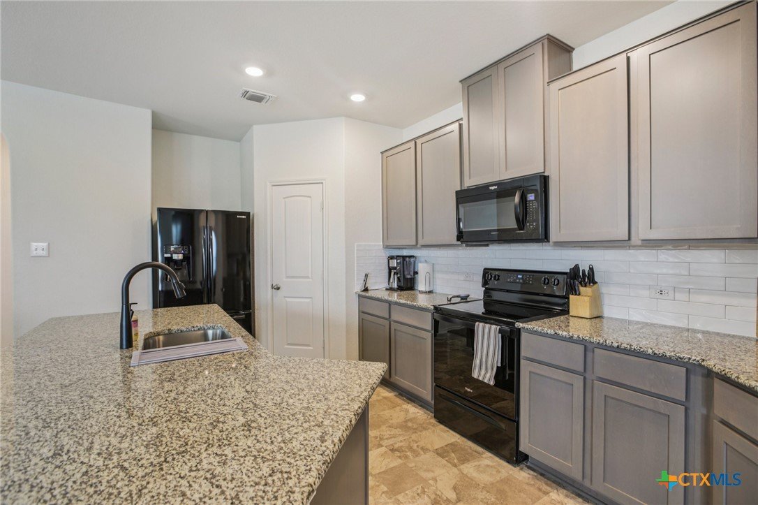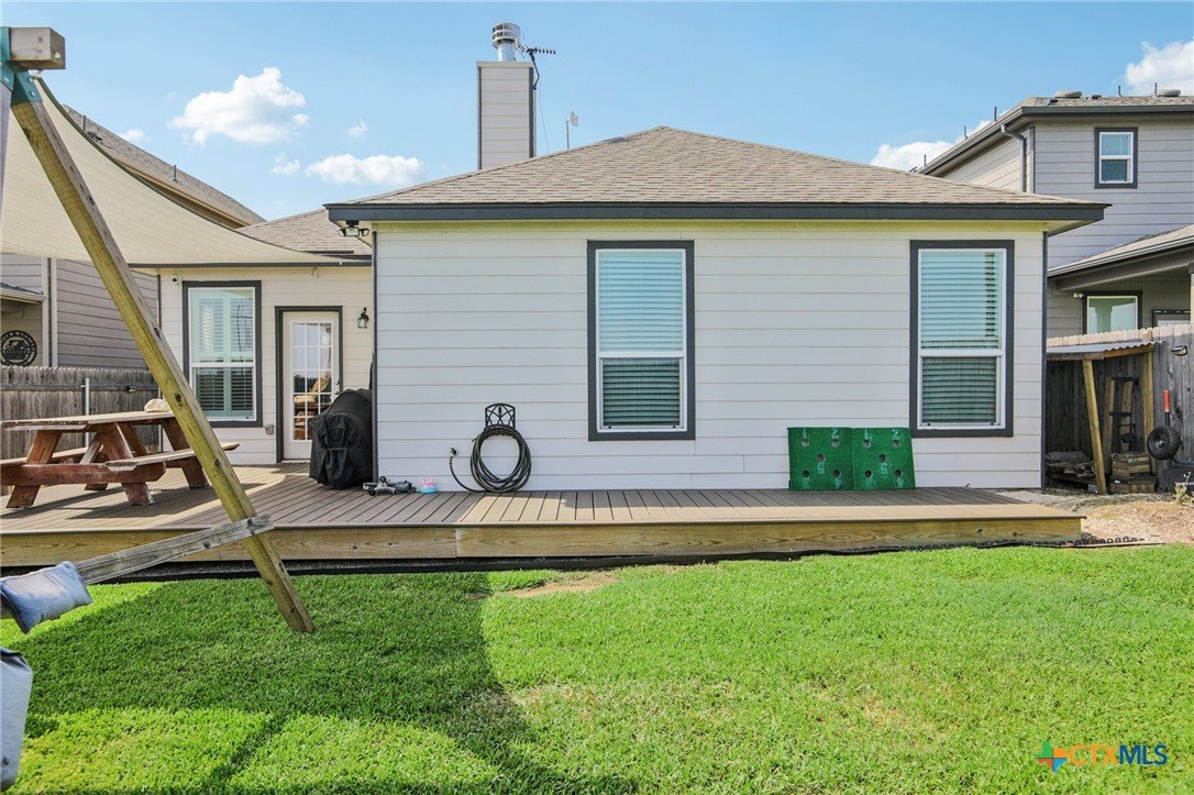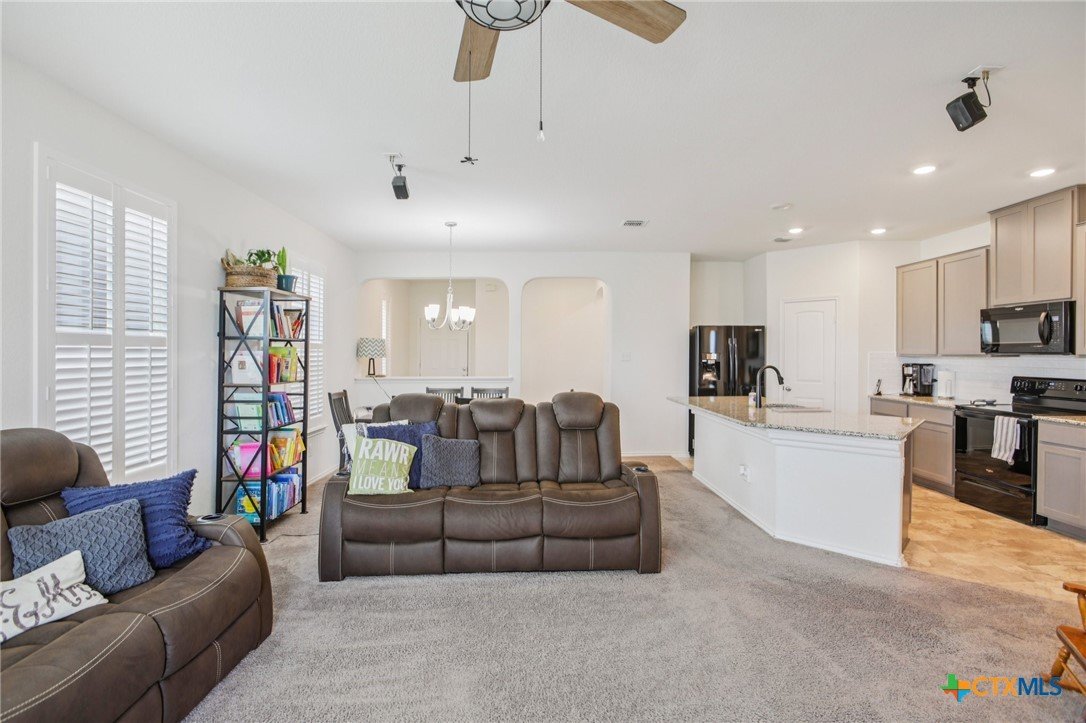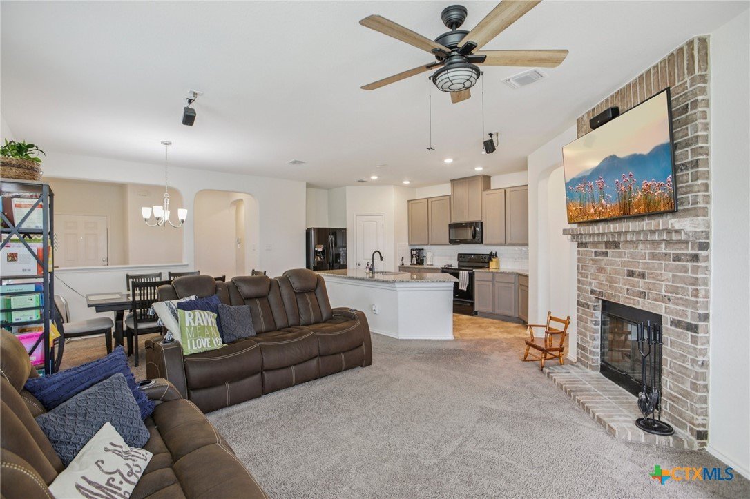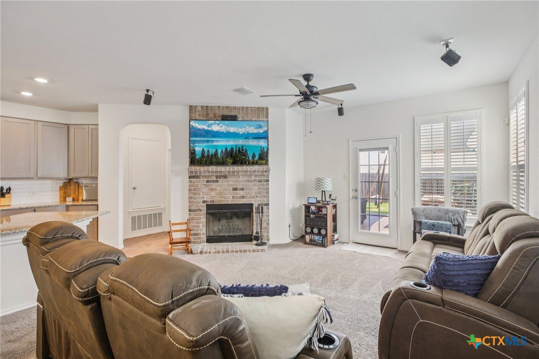 Located in the heart of Jarrell, Texas, 657 Bailey Park Dr presents a well-maintained single-story home in sought-after Williamson County. Priced to appeal to a wide range of buyers, including those utilizing down payment assistance, this residence offers both comfort and functionality in an established community setting. The thoughtfully designed floor plan includes four bedrooms and two bathrooms, with an open layout that promotes easy living and entertaining. The spacious living area features a central fireplace, creating a welcoming focal point for relaxing or gathering with guests. The kitchen stands out with a large island, stone countertops, shaker-style cabinetry, and a modern backsplash—ideal for everyday cooking or weekend hosting. The adjacent dining area flows seamlessly with the living space, making the home feel open and connected. The primary suite offers a private retreat with a walk-in shower, double vanity, and built-in storage. Additional features include a dedicated laundry room and a two-car garage, providing practical space for both storage and daily needs. Throughout the home, plantation shutters add elegance and efficiency. Step outside to enjoy a fenced backyard with a deck and covered outdoor dining area. With no rear neighbors and views of a peaceful pasture, the property offers an added sense of privacy and quiet. This home combines affordability with thoughtful features, making it an excellent option for first-time buyers, growing households, or anyone seeking a move-in ready home with long-term value in Central Texas.