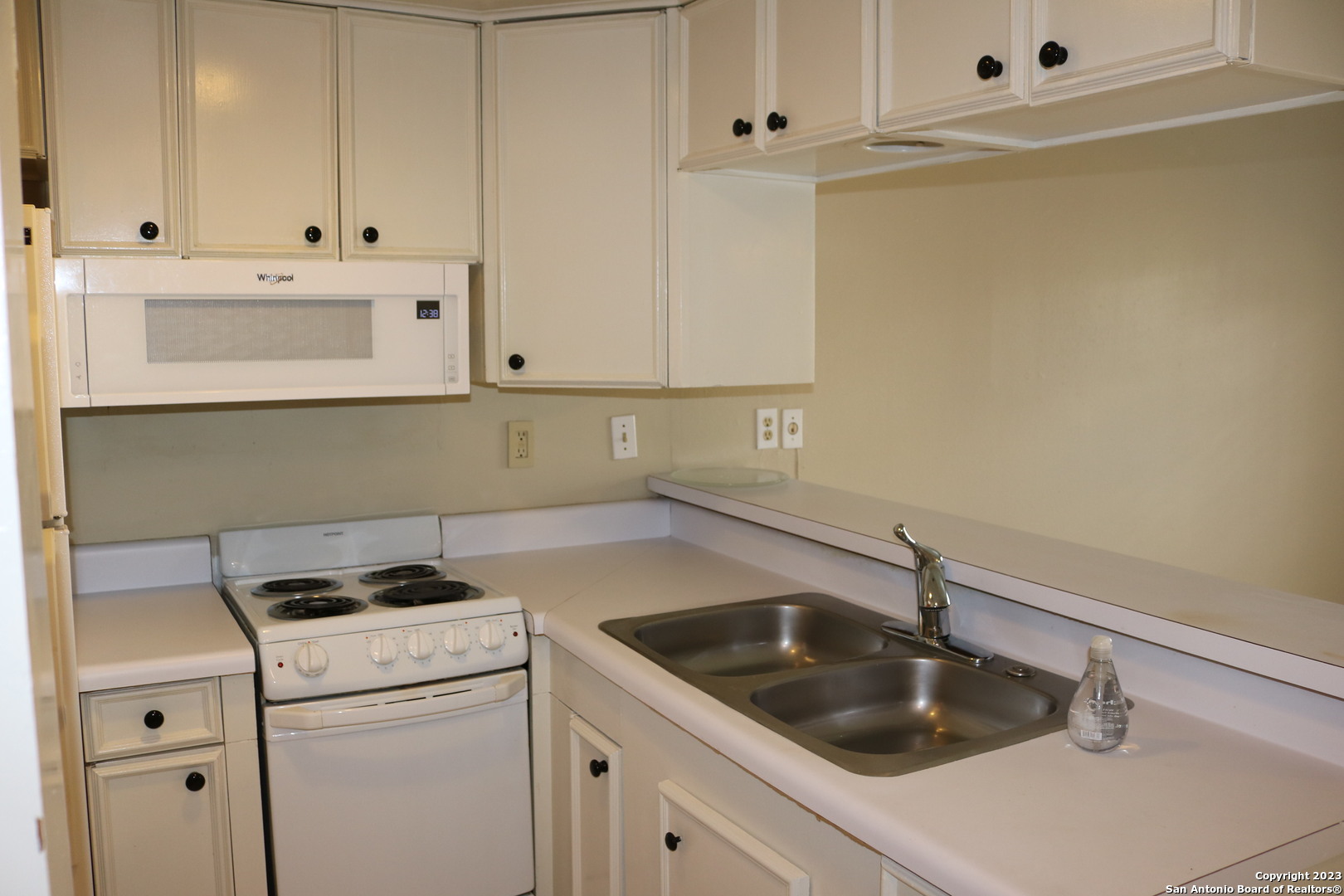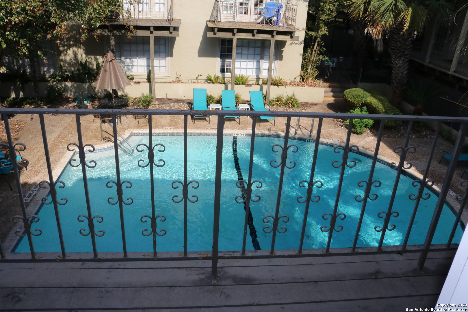 Super cute efficiency at the Barcelona!! With a pool view!!This is an upstairs unit.. Clean and some recent updates..Amazing natural light.. New shower and tub.. One covered parking space.. Close to so many wonderful shops, restaurants.. Grocery store.. Museum.. Like walking distance close!! Sought after Alamo Heights School District...