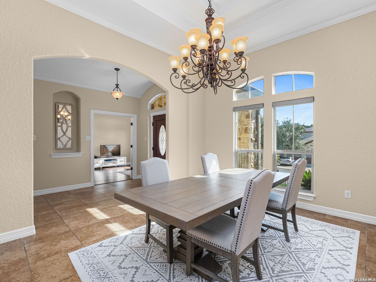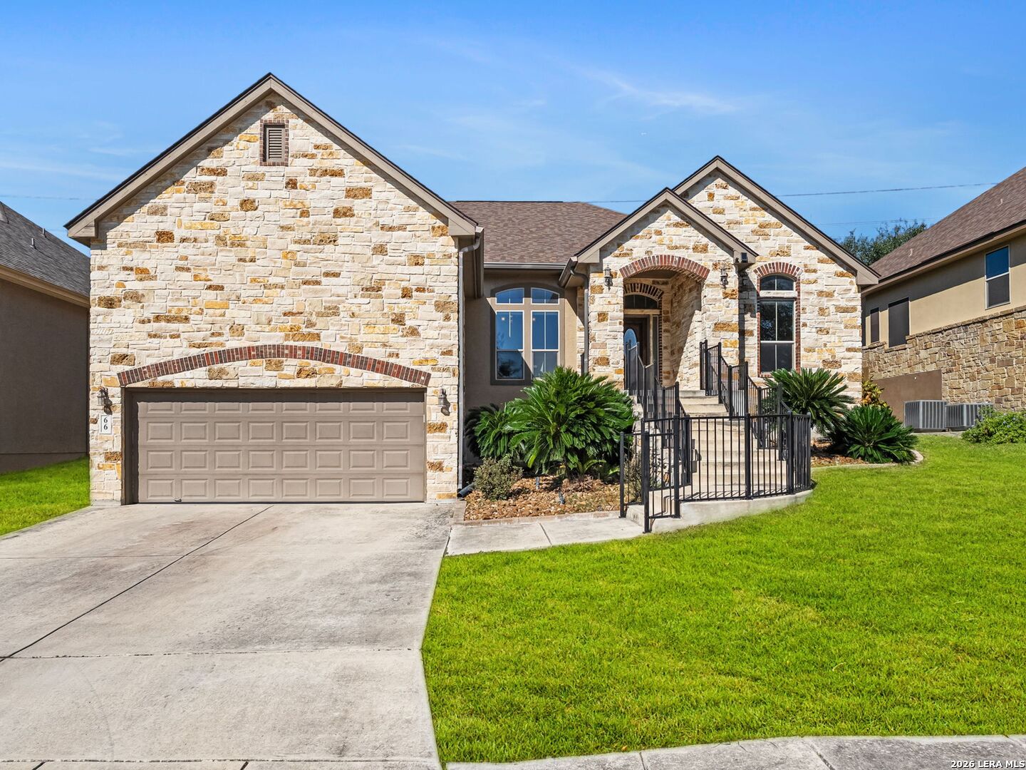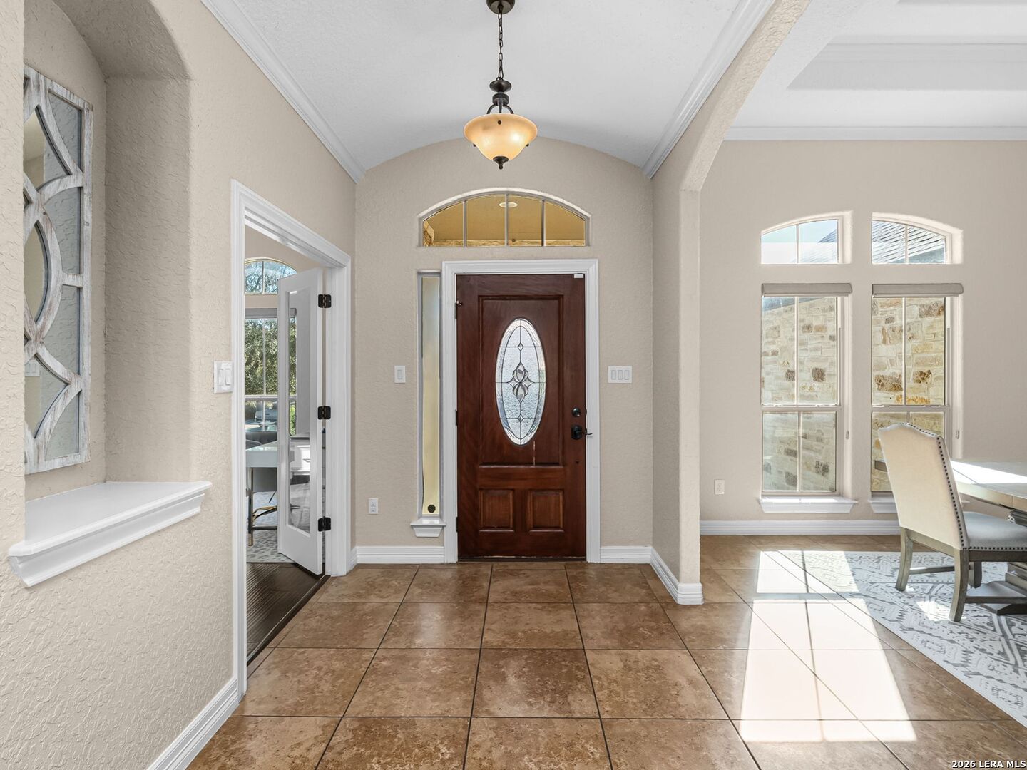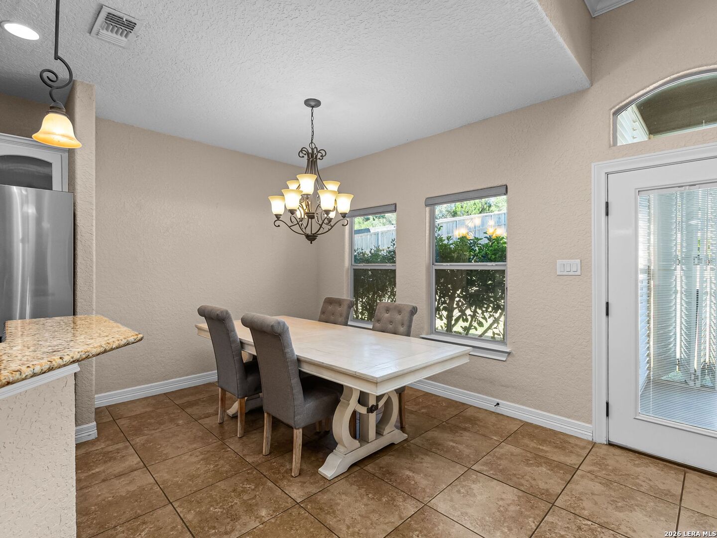 Everyday staycation living awaits the highly sought-after The Renaissance at The Vineyard community with this rare find and a few chances in the neighborhood to enjoy the luxury of your own private pool on a 0.29-acre greenbelt lot built by Broll Homes. This is the one! Architecturally striking with soaring vaulted ceilings and an open-concept design, this one-story residence combines the luxury of a well-maintained home. Located less than 1.5 miles outside Loop 1604, between Rogers Ranch and Huebner Rd, this property combines a prime location with timeless architectural charm. Step inside and discover a thoughtfully designed floor plan offering three spacious bedrooms, two full baths, one half bath, a formal dining room, and a dedicated study. A unique oversized storage space above the garage offers tremendous potential. With the addition of an AC unit, this area can easily transform into another entertainment room, game room, or media retreat, adding even greater versatility to the home. The family room with soaring vaulted tray design ceilings seamlessly flows into the chef's kitchen, where upgraded finishes and an open breakfast area create an inviting hub for everyday living and entertaining. The kitchen includes granite countertops, an electric stove and oven range with a wall-mounted range hood, subway tile backsplash, and some glass-front white cabinetry with handles. The spacious primary suite with a bay window that adds space overlooks the pool, and the en-suite spa-like bathroom features a walk-in shower, tub, double granite countertop sinks, and a walk-in closet. Vaulted ceilings extend outside into the covered patio with a ceiling fan, white aluminum privacy shutters, and louvered folding doors, where the sparkling private pool awaits. A stone pathway leads to the pool, the striking centerpiece of the backyard, featuring a sleek modern design framed by two covered cabanas that provide shade and create the perfect year-round retreat. Also comes with gutters and a water irrigation system in the front and back. Upgrades done after purchase you'll appreciate: replaced carpet in the bedrooms with wood flooring, chandeliers, painted cabinets white, and changed kitchen backsplash to subway tile. Life in the Renaissance community is more than just homeownership; it's a lifestyle. Residents enjoy low HOA fees and access to premier amenities, including a vibrant community centered around connection, wellness, and lifestyle amenities. Enjoy a community pool, basketball court, playground, and programs like the Vineyard Vipers swim team, youth volunteer opportunities, and a variety of neighborhood activities. There are services such as regular grounds maintenance and security patrols that help keep the neighborhood. Conveniently located near Loop 1604, US 281, and IH-10, you'll enjoy quick access to premier destinations like Canyon Springs Golf Club, TPC Parkway, JW Marriott Hill Country Resort, The Rim, La Cantera, and top local parks such as Eisenhower, Phil Hardberger, and McAllister. With nearby access to Camp Bullis and the airport, the location is as practical as it is beautiful. Surrounded by top-tier public and private schools and nestled in a community that feels like a retreat, this home isn't just a place to live; it's a story waiting to unfold. Part of the highly acclaimed Northeast I.S.D., known for its top-rated schools and strong academic and extracurricular programs, making this home as practical as it is beautiful. With its rare private pool, unbeatable location, and unmatched community amenities, this home is a true standout, offering a unique opportunity to own a move-in-ready residence that feels like a permanent vacation.