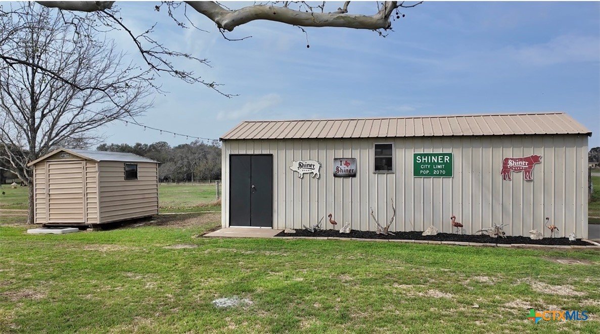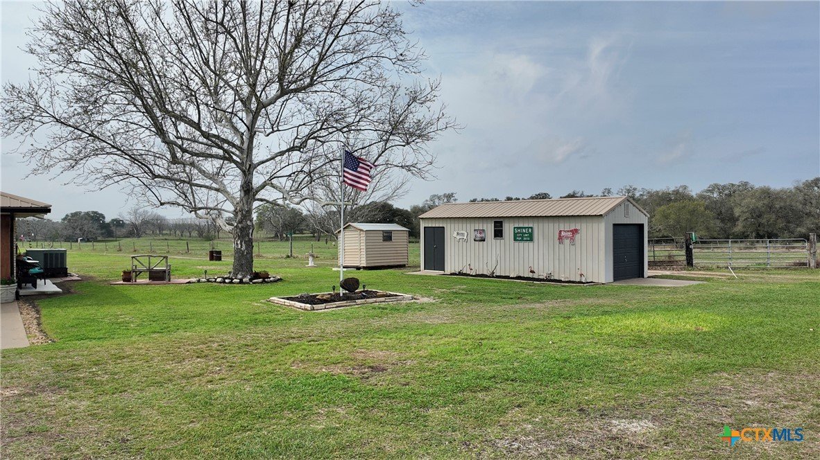 Charming 2 bedroom, 2 bathroom home situated on a spacious 0.644-acre lot just minutes from both Shiner and Hallettsville, offering the perfect balance of peaceful country living with convenient access to town. This well-maintained property has seen numerous updates within the last three years, including fresh paint inside and out, new flooring, updated appliances, new garage doors, and propane system. The water well was replaced less than a year ago, providing added peace of mind. Inside, you’ll find large rooms, abundant natural light, and plenty of storage space throughout the home. The functional layout offers comfortable living with room to spread out. Outside, the property truly shines with beautifully maintained landscaping and wide-open backyard views. There are three storage buildings, including a shop with a garage door that provides additional covered space for a vehicle, equipment, or hobbies. Whether you’re looking for a move-in-ready home with room to work, store, and enjoy the outdoors, this property offers space, updates, and a great location in the heart of Lavaca County.