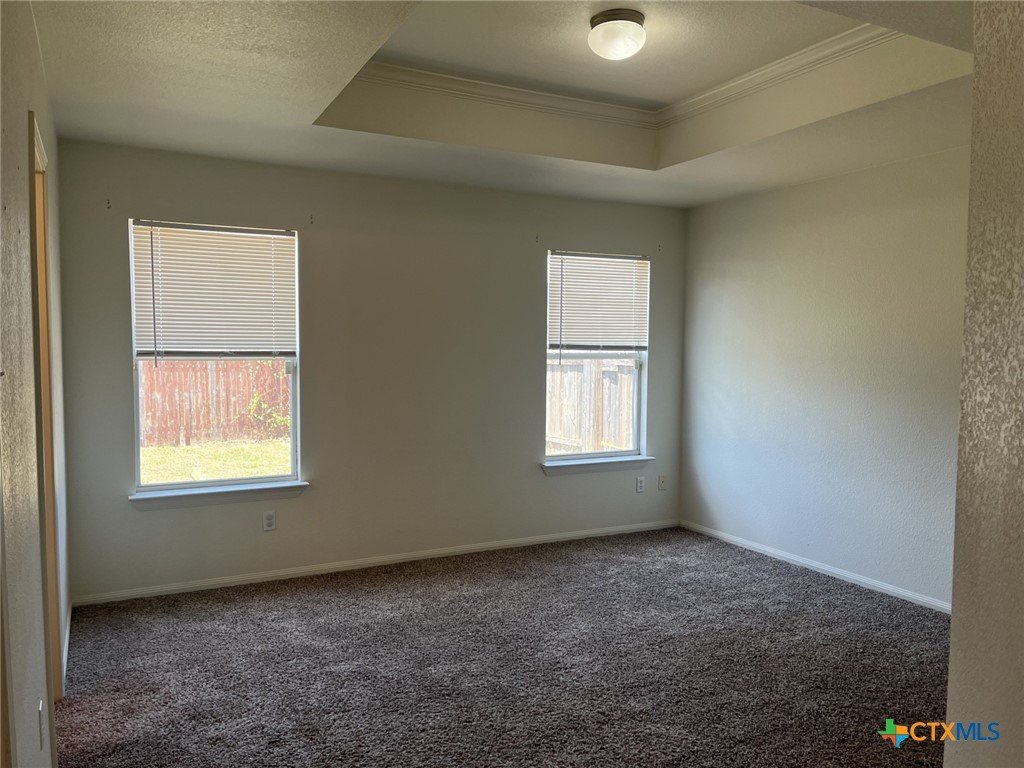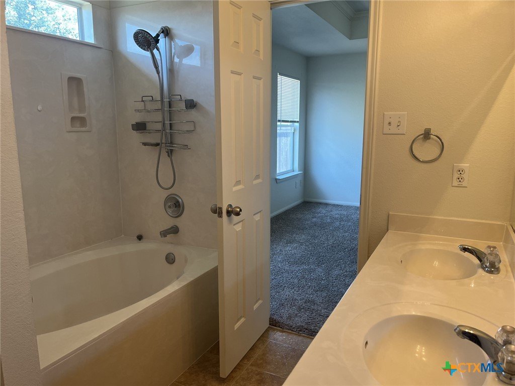 This 3 bedrooms, 2 bathroom, 2 car garage home is located on a tucked away loop with no direct backyard neighbors! It features an open concept living room, kitchen and dining room. Island, built in microwave and pantry in the kitchen. Laundry area off the garage. Walk in closet in the primary bedroom, double vanities, linen closet and garden tub/shower combo in the primary bathroom. The backyard features a covered patio and wood privacy fence.