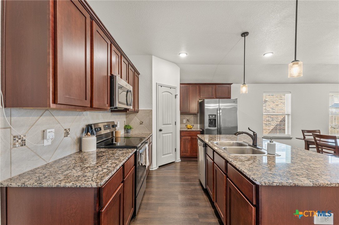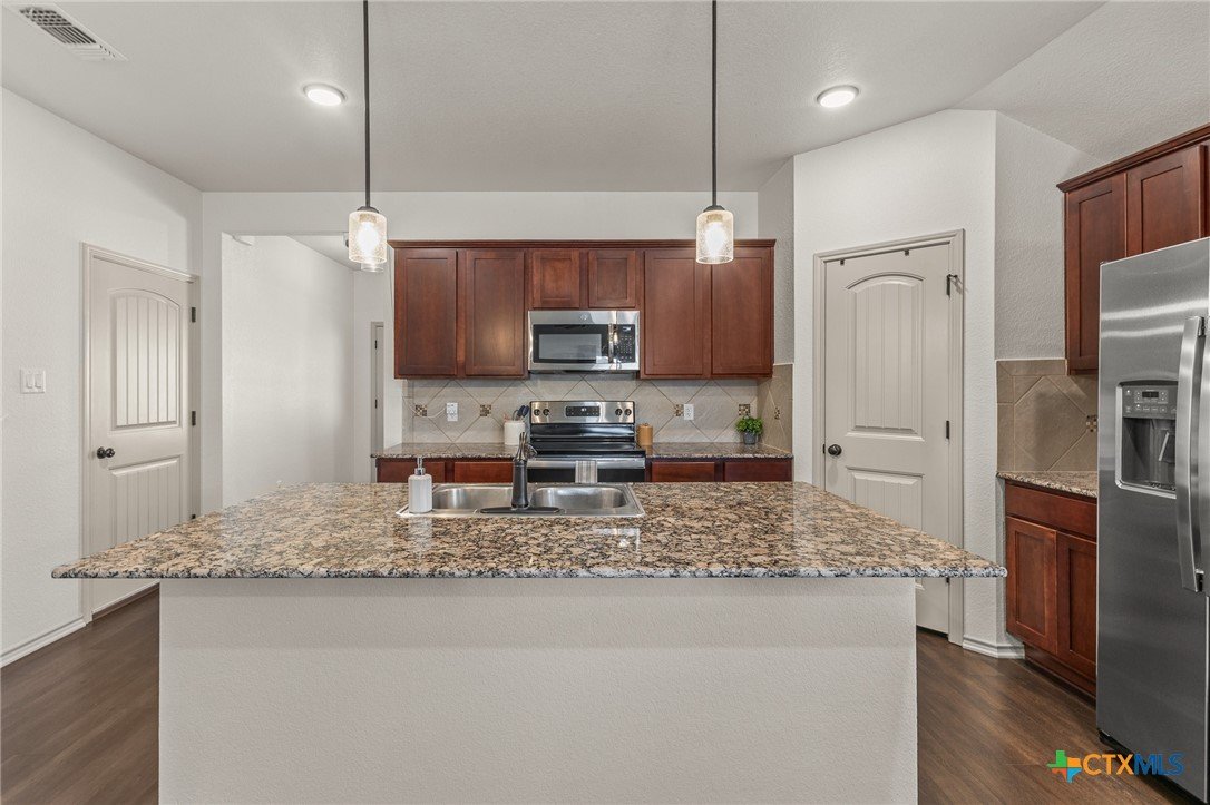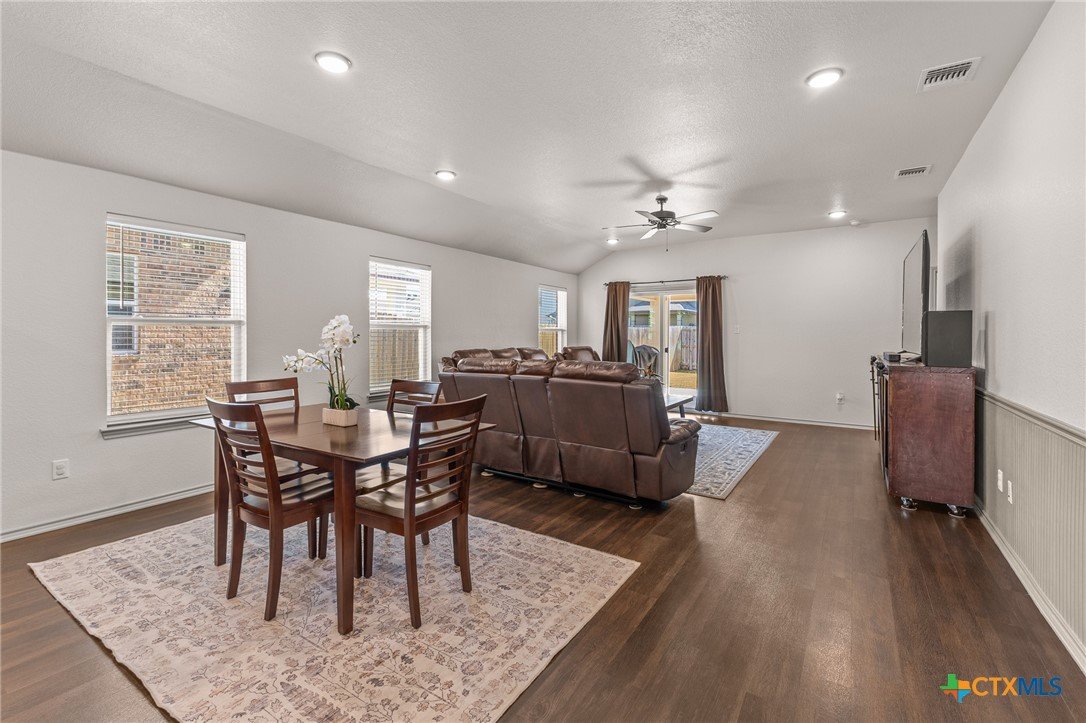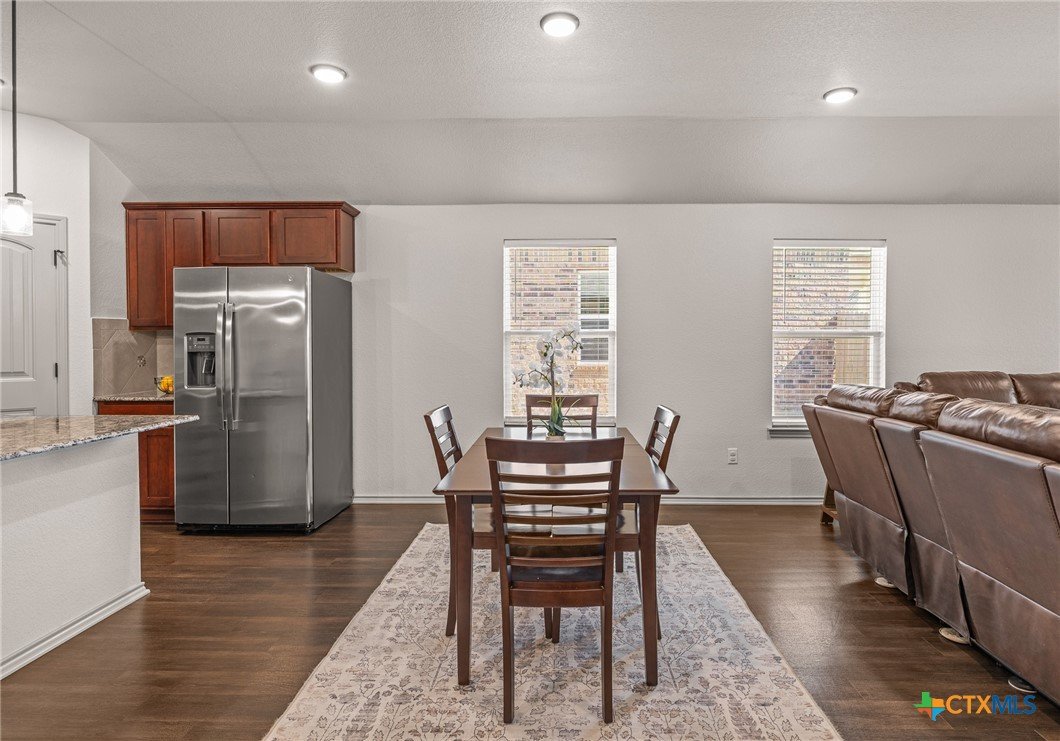 Welcome to 6607 Cassidy Lane in Killeen, Texas, a beautifully maintained single story home offering space, function, and comfort. This home features a covered front porch, durable LVP flooring, and a versatile front flex space ideal for an office, dining, or second living area. The open concept kitchen, dining, and living area is perfect for everyday living and entertaining, complete with granite countertops, stainless steel appliances, rich cabinetry, a center island, and pantry storage. The spacious primary suite offers generous space and an ensuite bath, while the secondary bedrooms provide flexibility for guests or work from home needs. Enjoy a covered back patio and fully fenced backyard, all conveniently located near shopping, dining, schools, and Fort Hood.