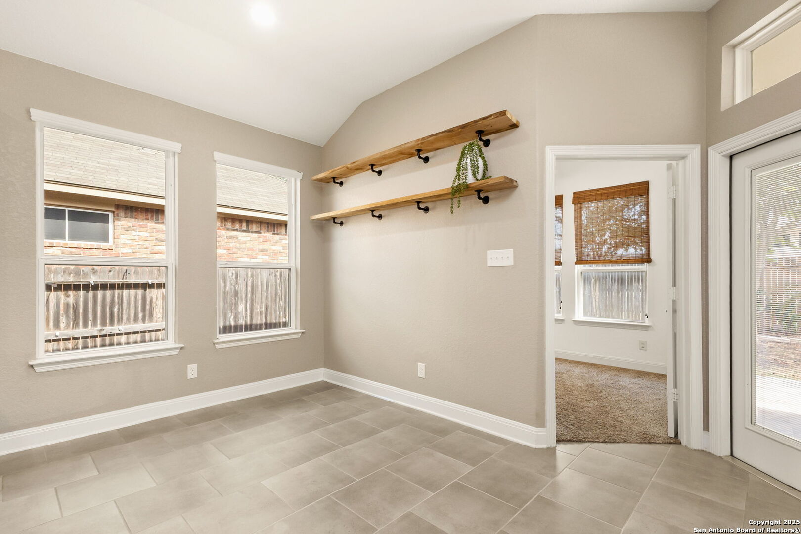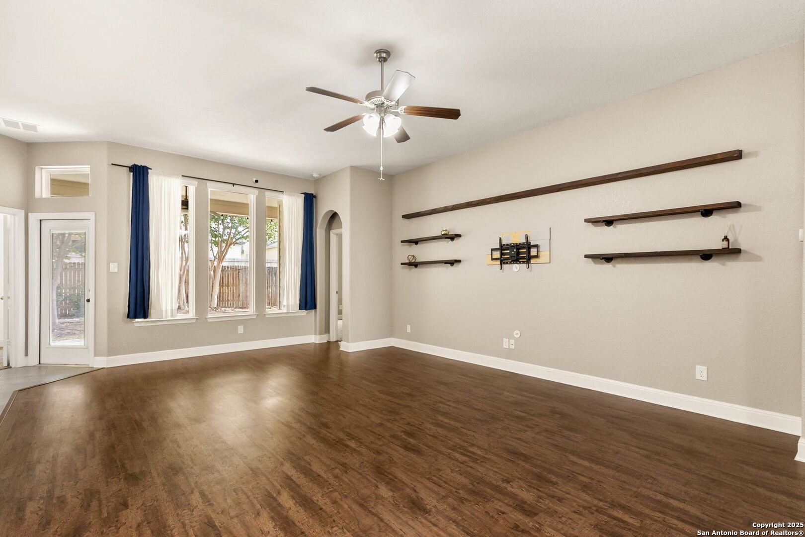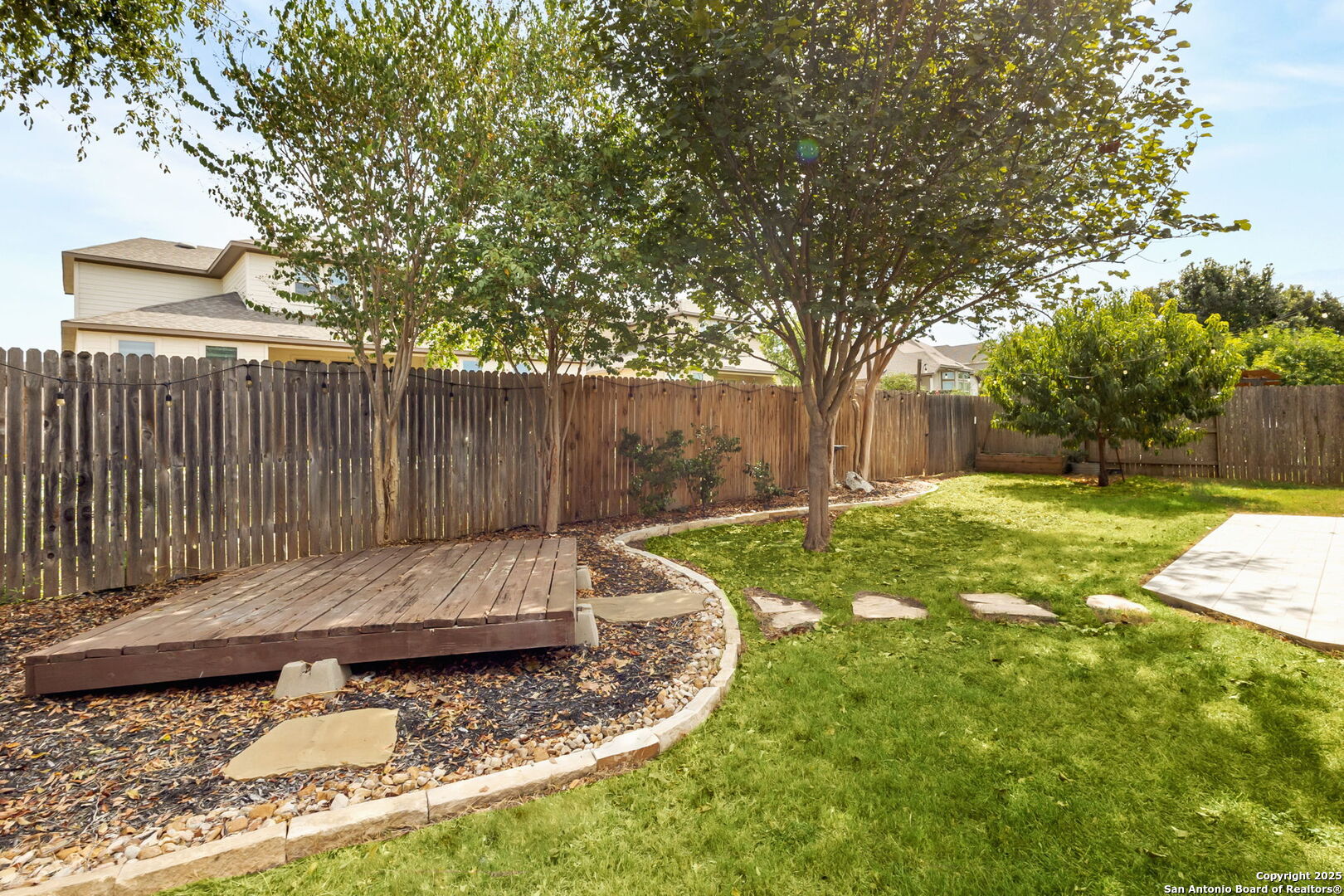 Discover this move-in ready 3-bedroom, 2-bath single story home in Cibolo with a versatile split floorplan and dedicated "work from home office", perfect for today's lifestyle. The open floorplan features a spacious living, dining, and kitchen area with granite countertops, stylish open shelving, and a large eat-in kitchen. Nice stainless steel appliances- refrigerator conveys with the home, plus a brand-new dishwasher and a well-maintained AC system for peace of mind. Neighborhood is walkable and safe with sidewalks and wide streets. Enjoy durable engineered wood laminate and tile flooring throughout common areas, along with generous walk-in closets for ample storage. Relax on the covered patio with no direct backyard neighbors and a green space behind the fence, creating a sense of privacy. Situated across the street from a large park and playground in a welcoming neighborhood, this home offers easy access to IH-35, local restaurants, shops, and schools. Community pool is within walking distance. Move-in ready and thoughtfully maintained, this home combines comfort, convenience, and style. This home is available for a quick close with an assumable VA loan for those who qualify with a 5.375 interest rate. Schedule a tour or see it with your local Realtor today.