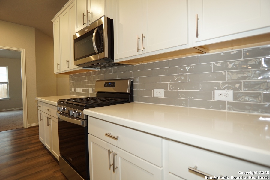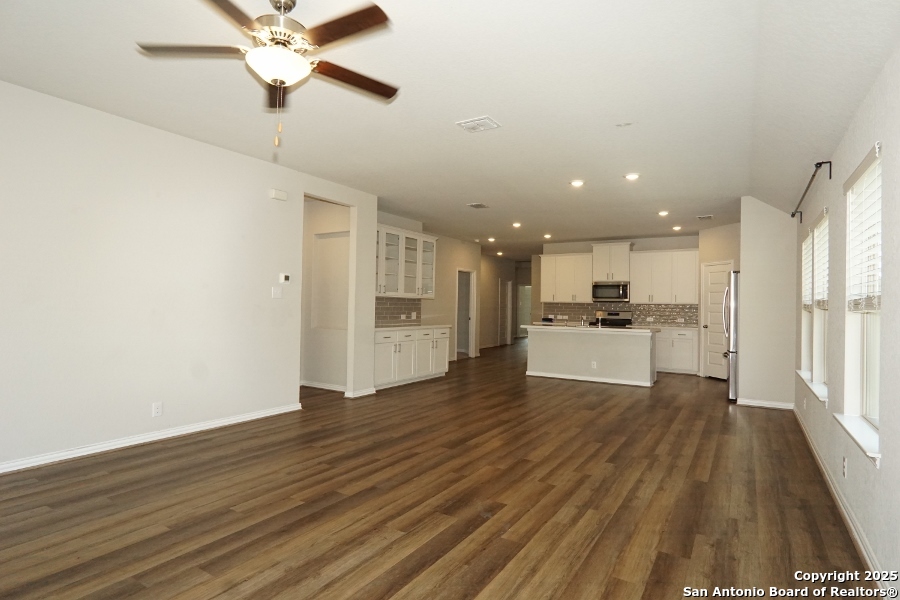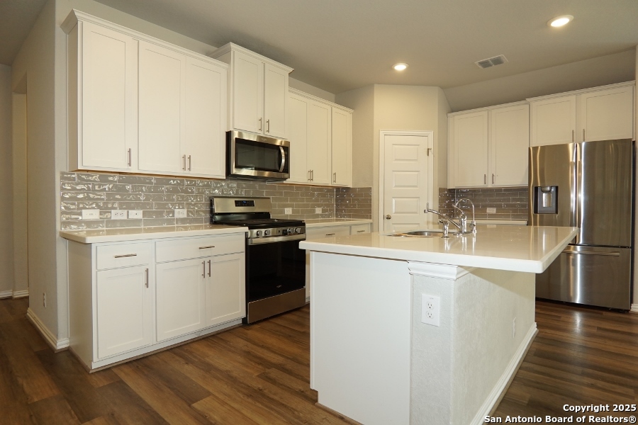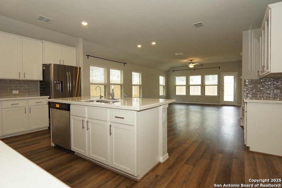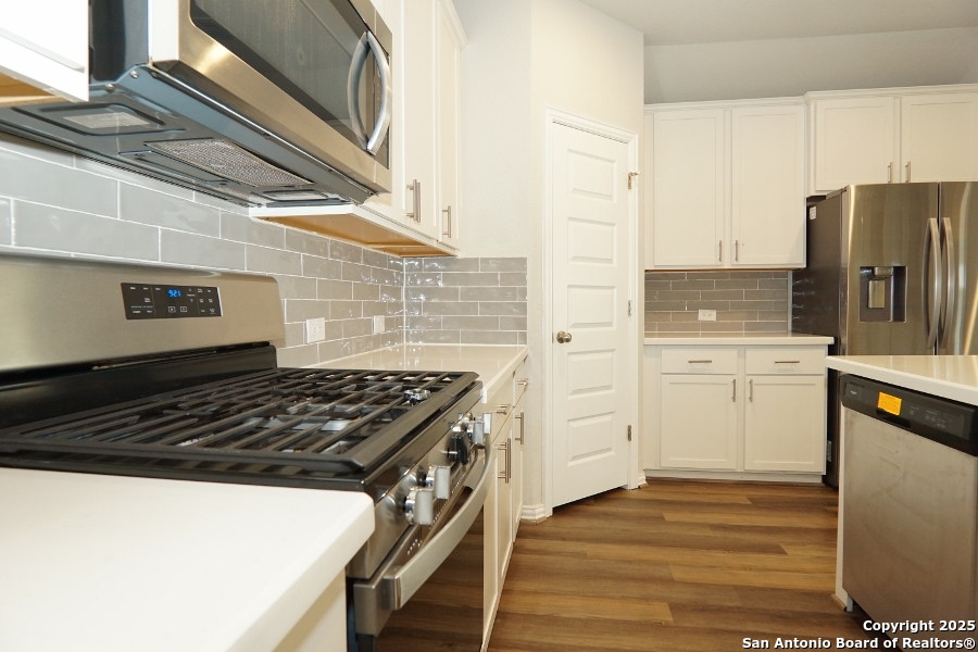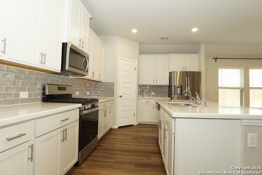 INSTANT WOW FACTOR upon visiting!! Spacious 4-Bed, 2-Bath, 2-Car garage! This gem is IN MOVE-IN Ready Condition. Property includes an open floor plan with 9-foot elevated ceilings. An oversized Master Bedroom measurements estimating at 17'x17' sq ft leading to your contemporary bath. Solid white quartz sitting on espresso cabinets giving you a gorgeous contemporary bath, meanwhile in kitchen and dining nook, the solid white quartz sitting on contemporary white cabinets hugging your stainless appliances, placed below your oversized 39" wall mounted cabinets - just wow! Rear lawn is compact and cozy. Come by and come BUY your next investment!