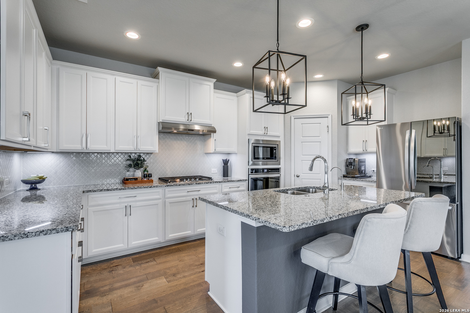 SHOW STOPPER!! Welcome home to this immaculate 4-bedroom, 3.5-bath beauty located in the highly sought-after Schertz-Cibolo ISD. Thoughtfully designed for comfort and functionality, this home features the primary suite and a secondary bedroom with full bath downstairs including a walk in shower perfect for guests or multi-generational living, along with a dedicated home office and laundry room-great for today's flexible lifestyle. Upstairs, you'll find two additional bedrooms, a full bath, and a spacious second living area/game room, offering plenty of room for family, guests, or entertaining. Designer touches and updates shine throughout the home, including wood flooring, granite countertops, stainless steel appliances, and a stunning island kitchen open to the dining and living area. Multiple additional closets throughout the home provide ample storage space. Step outside to enjoy the custom back patio, showcasing beautiful wood-look tile, stamped and stained concrete-ideal for relaxing or hosting gatherings. Additional highlights include a sprinkler system, water softener, storage shed, and no backyard neighbors, providing both convenience and privacy. Ideally located just minutes from Randolph Air Force Base, IH-35, shopping, dining, and top-rated schools, this home truly has it all. Move-in ready, meticulously maintained, and perfectly positioned-don't miss this exceptional opportunity!