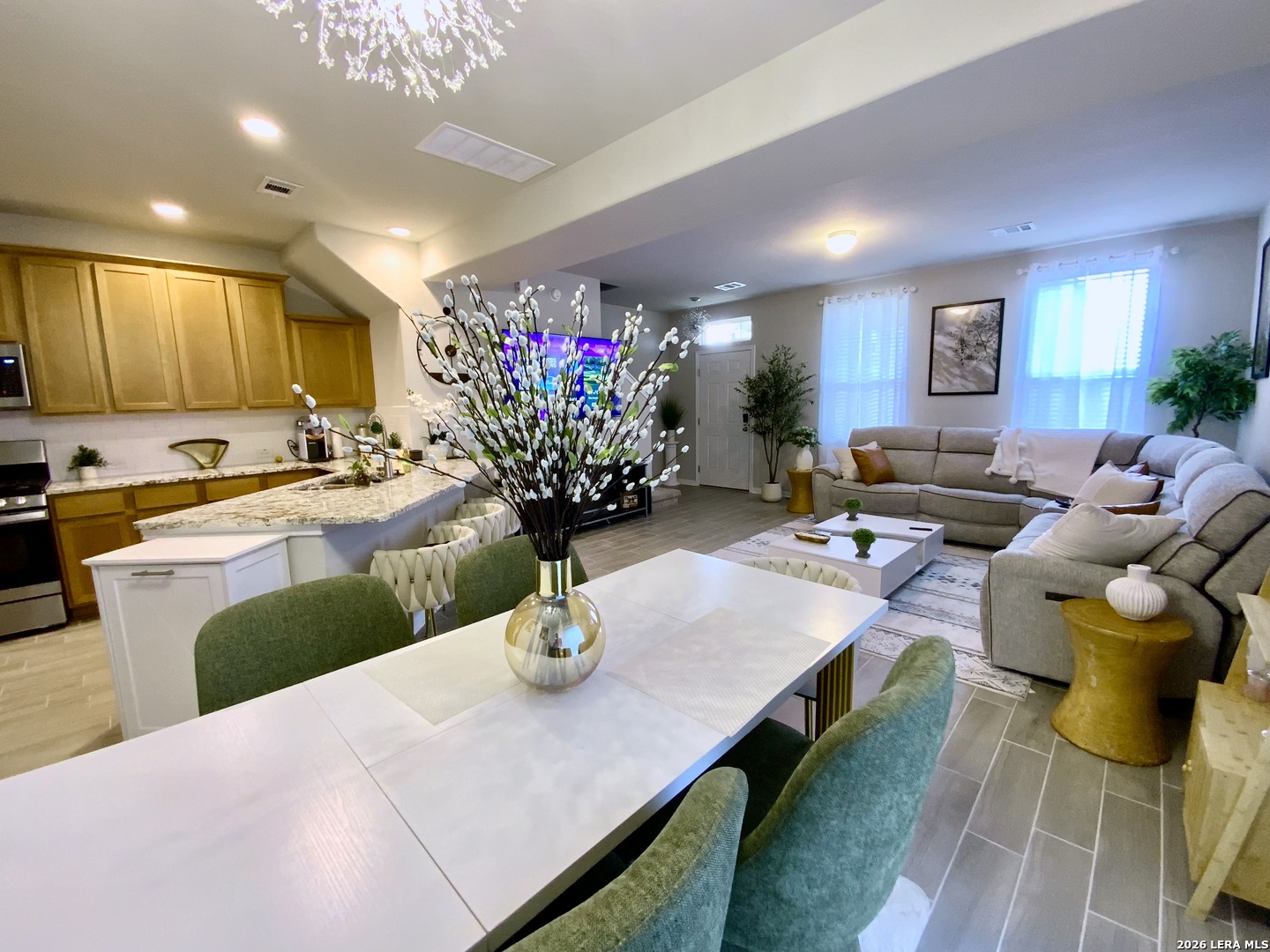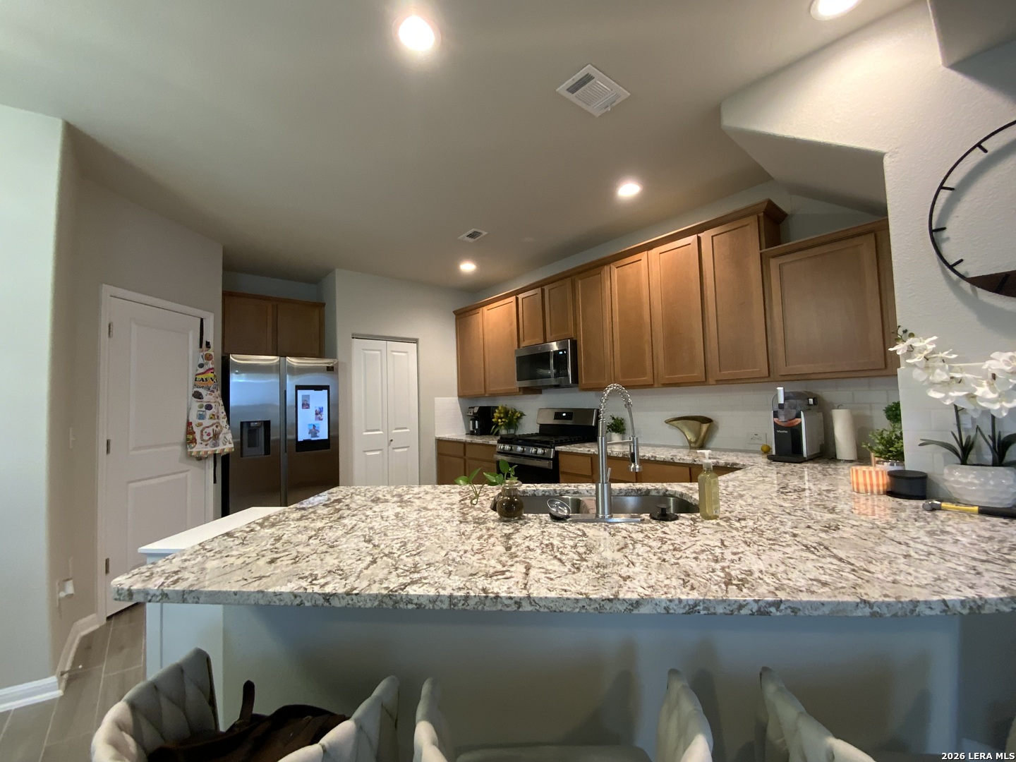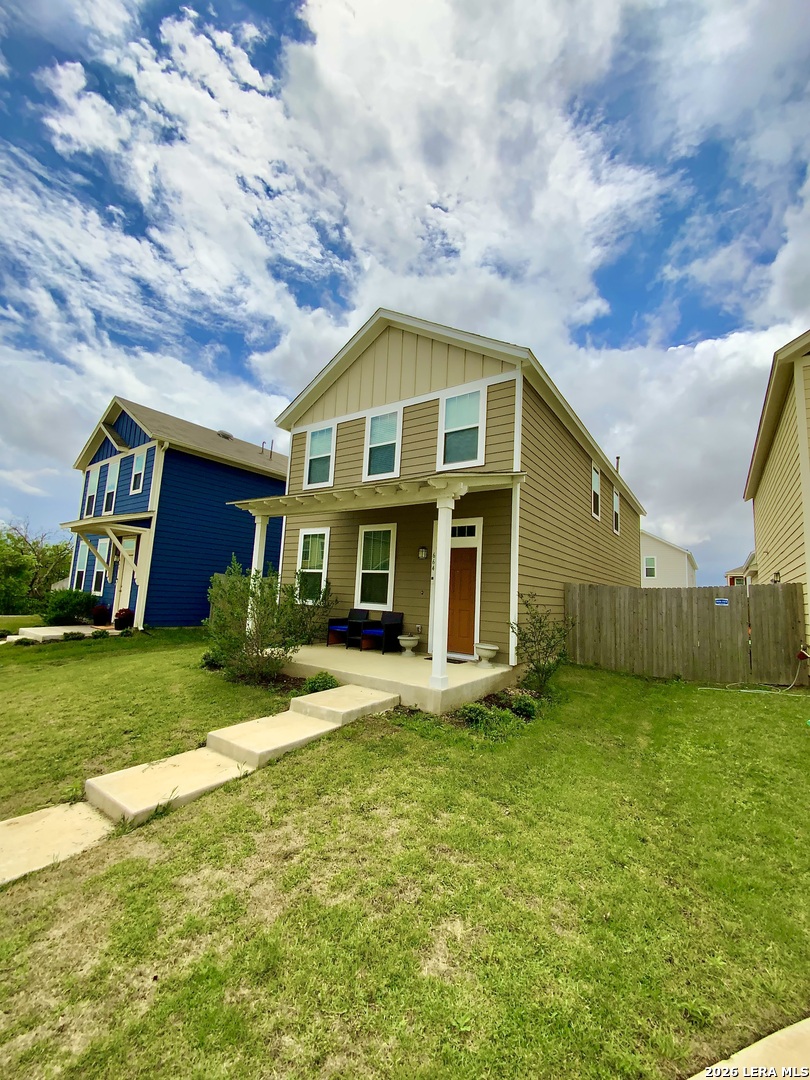 Located in the desirable Creekside community in Kyle, this newly constructed two-story home offers exceptional value-priced well below the same Laura Belle floor plan currently offered by the builder. Surrounded by natural attractions including Plum Creek Preserve, Lake Kyle, and Linebarger Lake, this home combines location. The open-concept downstairs features durable tile throughout, creating a seamless flow ideal for everyday living and entertaining. The kitchen is designed for function and style with abundant counter space, granite countertops, 42" upper cabinets, a spacious pantry, and stainless steel appliances. Upstairs, you'll find three well-sized secondary bedrooms along with a versatile game room. The oversized primary suite offers a spacious retreat with a large walk-in closet and a well-appointed bath featuring a walk-in shower. Additional highlights include an attached garage, public water, and access to community amenities with HOA-maintained common areas.