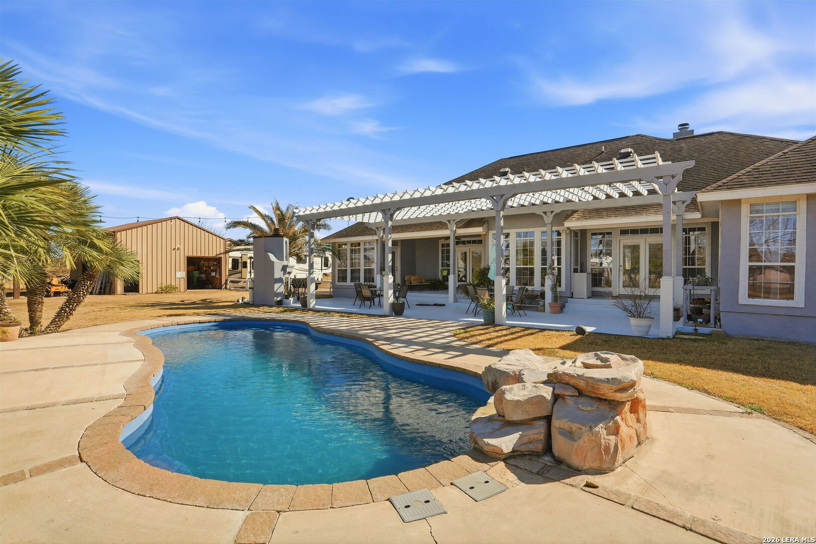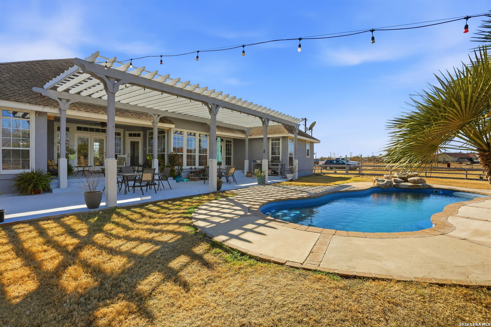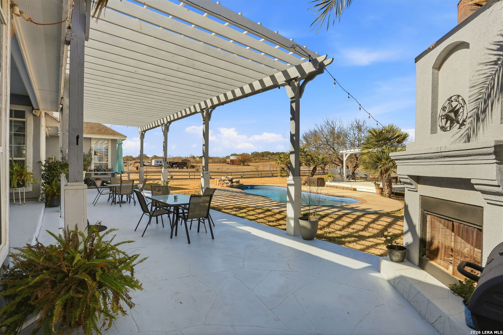 Where Hooves, Home & Open Space Come Together. Set on 5.4 usable acres, this property offers the kind of space and setup that makes country living easy and enjoyable, especially for horse lovers. The 4-bedroom home features a comfortable, functional layout with room to gather, unwind, and settle in for the long haul. Step outside to a generous outdoor living area with a pool and pergola, perfect for cooling off after chores or hosting relaxed get-togethers with friends and family. Designed with horses in mind, the property includes a 5-stall barn with tack room and hay storage, an arena, and a 50' round pen ready for training or daily riding. A chicken coop enhances the homestead feel and enables a more self-sufficient lifestyle. A 24' x 24' metal workshop provides ample space for tools, equipment, and weekend projects, and offers convenient storage for the essentials of acreage living. The land is well laid out and easy to navigate, providing space to ride, work, or simply enjoy the quiet, open views. Buyers can choose between the Lytle or Somerset School Districts. Whether you're looking for a place to keep horses at home or a property that supports a true country lifestyle, this one checks all the boxes for a long-term homestead.