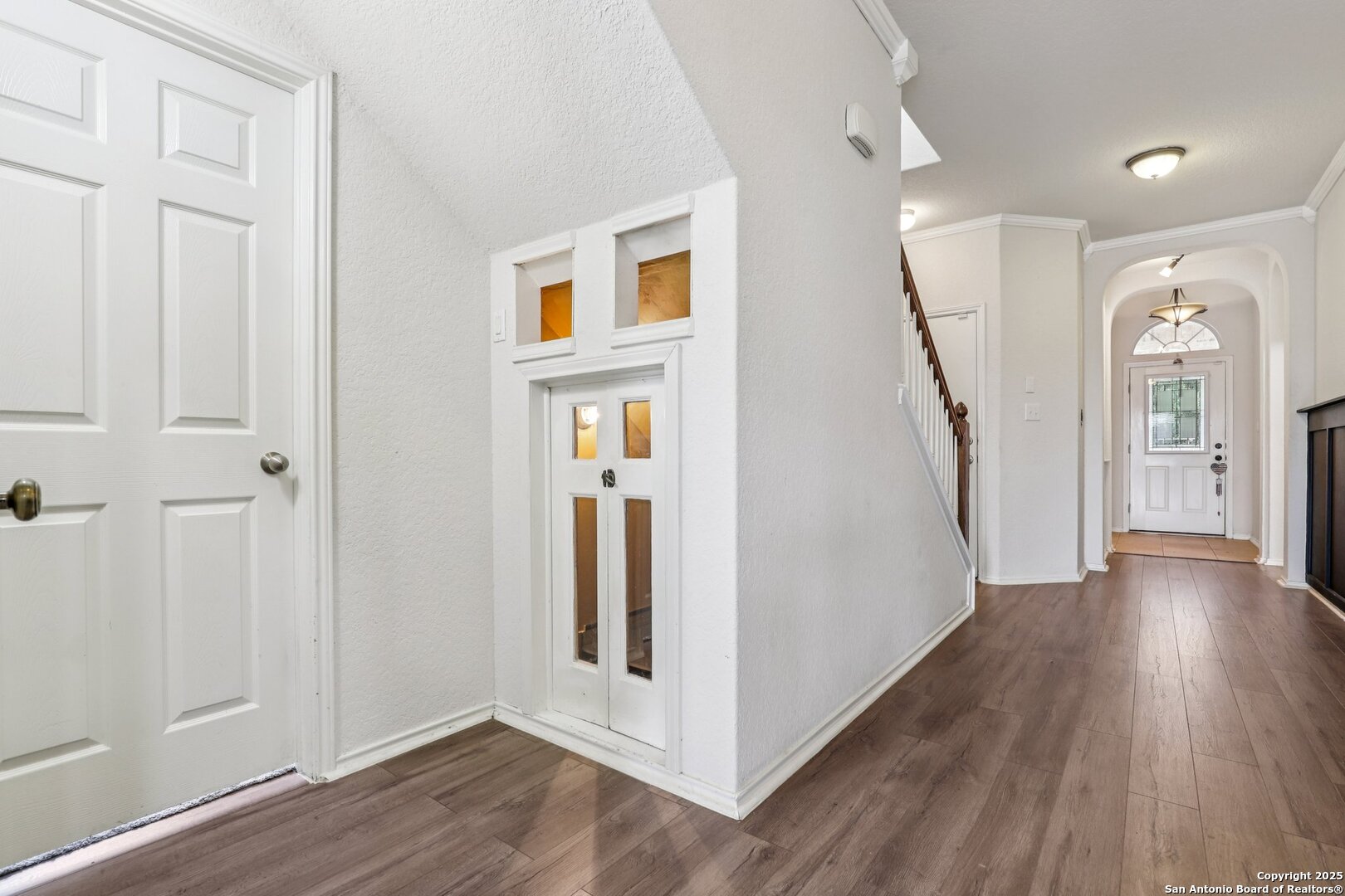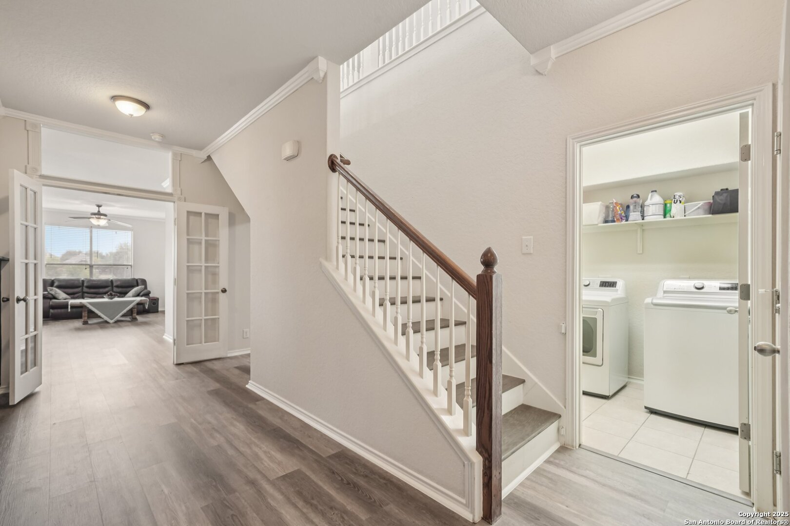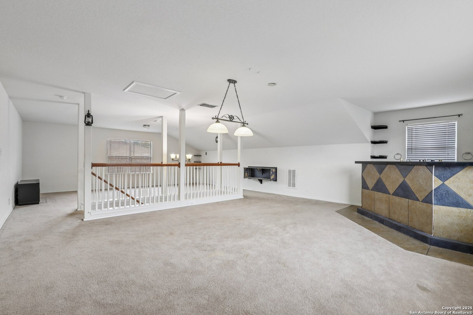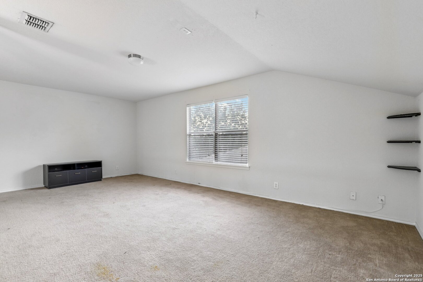 This beautiful 4-bedroom, 2-bath home with an oversized bonus room/Game room located upstairs. It is perfectly situated in a quiet cul-de-sac on a wide lot that backs to a private greenbelt. The open kitchen features recessed lighting, and gas cooking, while the spacious master suite offers double vanities, a stand-up shower, and a relaxing garden tub. All bedrooms are located downstairs for convenience, with an oversized bonus room upstairs ideal for a game room, media space, or home office. A unique pet retreat under stair space. Seller is motivated!