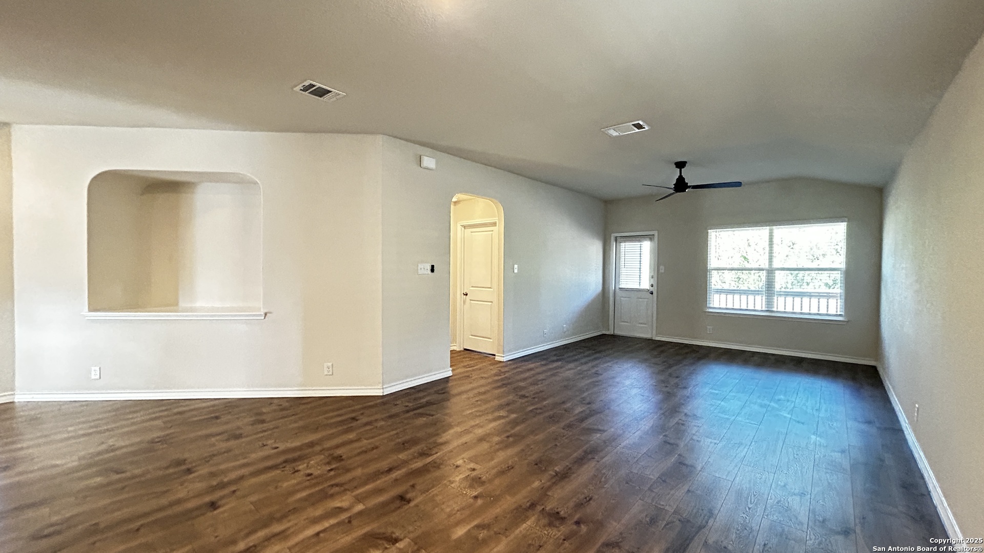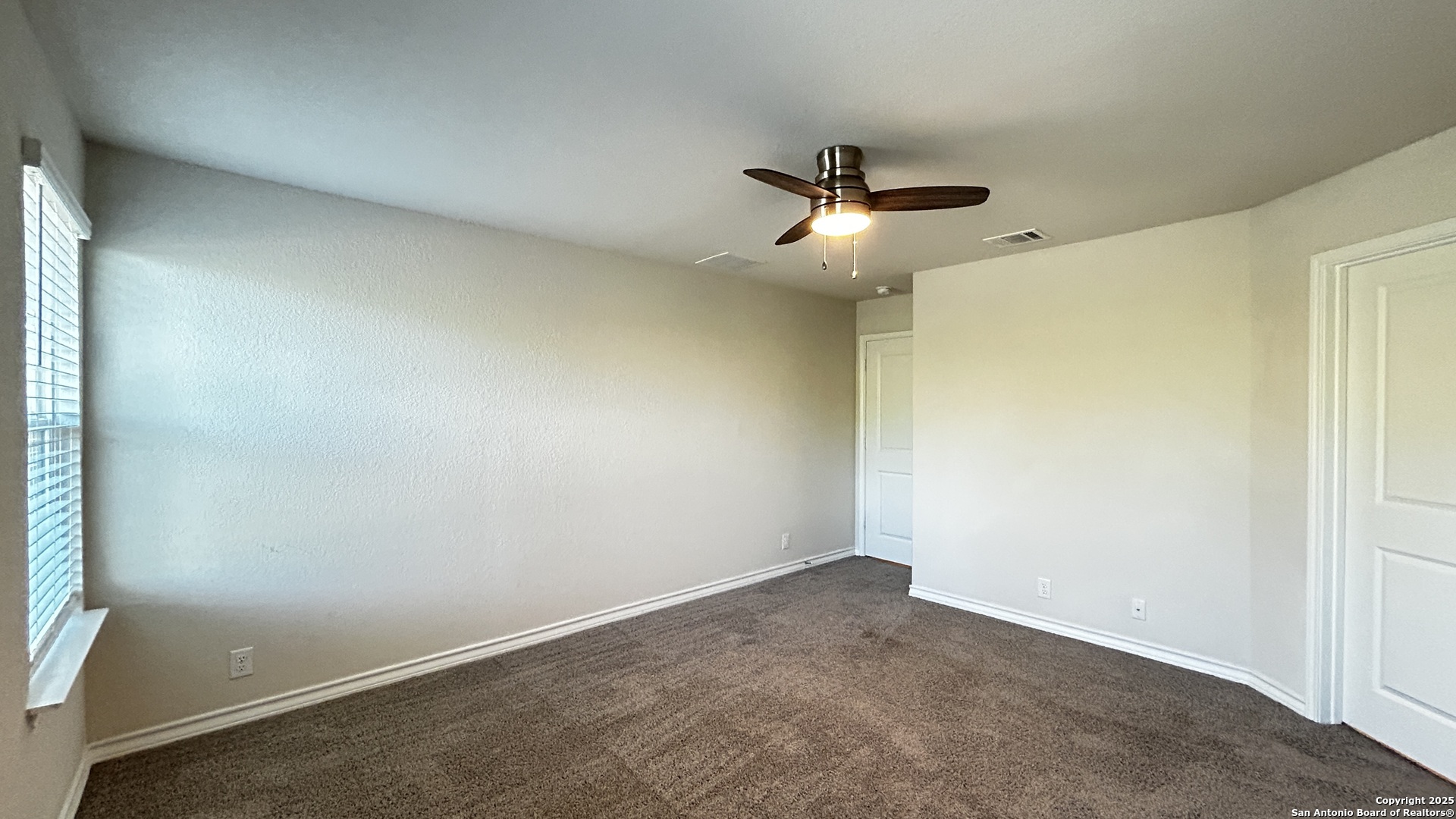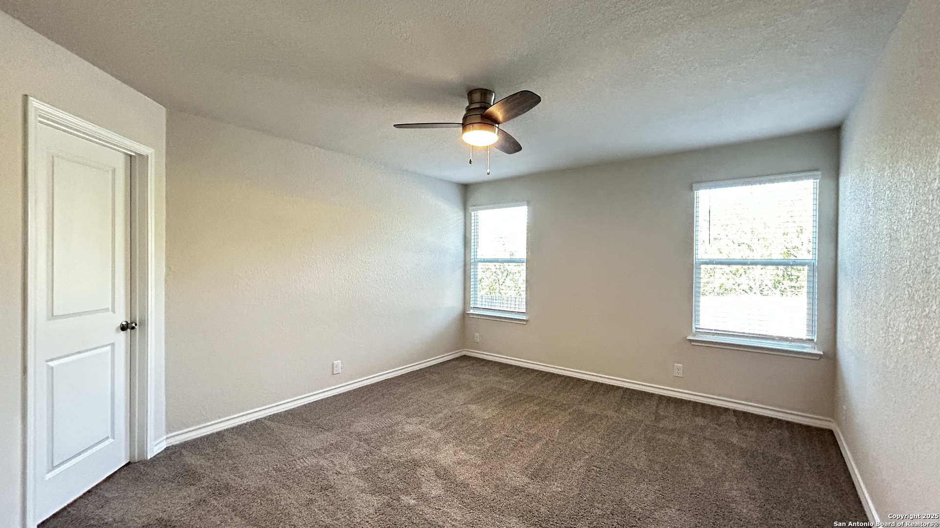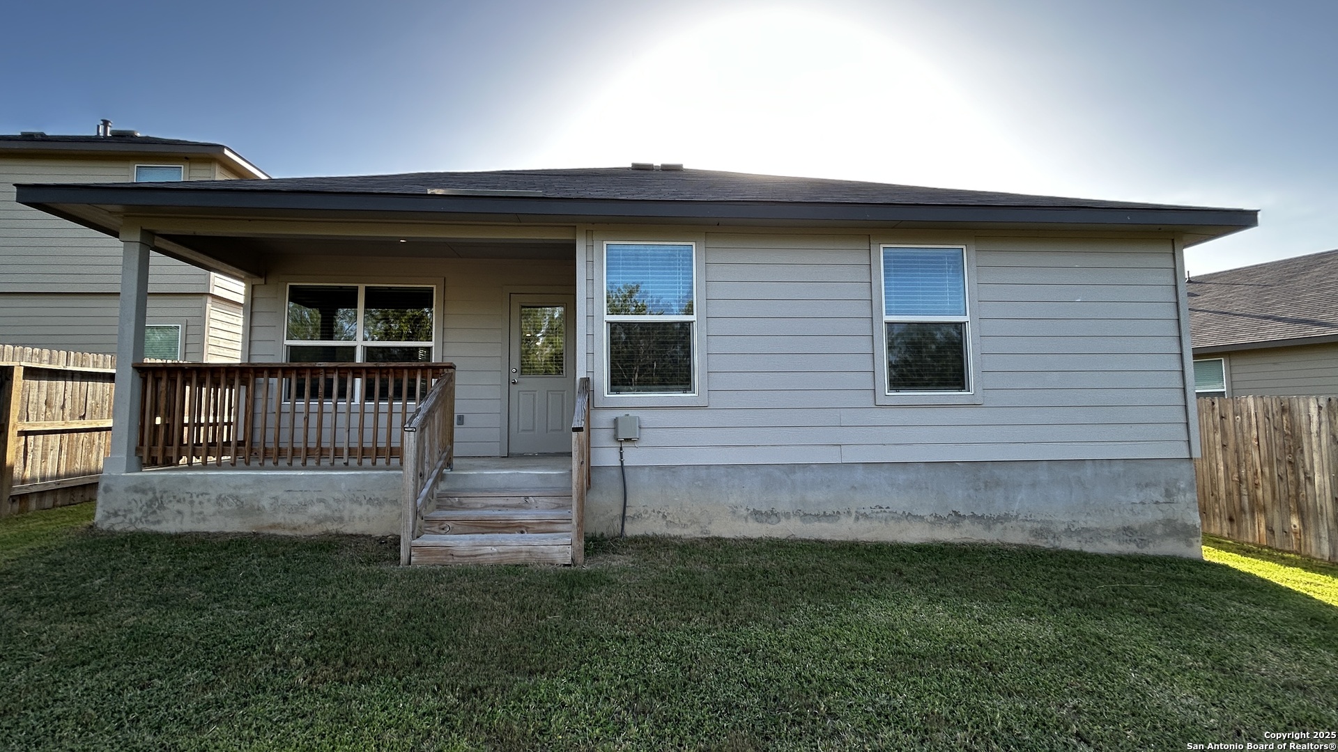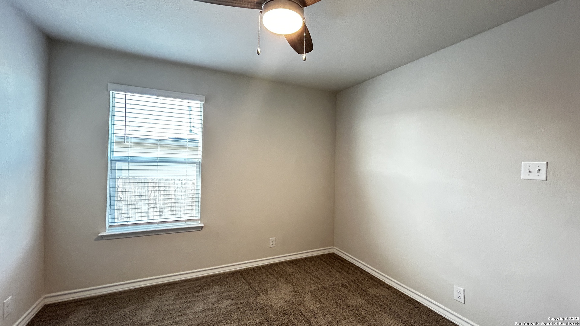 MOVE IN SPECIAL: 1 MONTH FREE!* Welcome to your dream rental home near SeaWorld and Lackland Airforce Base! This stunning 4-bedroom, 2-bathroom single story home is located on a greenbelt in the Whisper Falls subdivision, a master planned community conveniently located off Highway 90. Experience the ultimate in resort-style living with amenities such as a pool, clubhouse, cabanas, playground, basketball court, and splash pads for kids. With major shopping and restaurants just a stone's throw away, you'll have everything you need right at your fingertips. The kitchen is an entertainer's delight, boasting ample cabinet space, granite counters, a huge island bar, stainless steel Whirlpool appliances, gas cooking, and LED canned recessed lights. The open floor plan features an oversized island bar overlooking the dining area and living room, making it perfect for hosting family and friends. Relax in the privacy of your spacious primary bedroom retreat, tucked away at the back of the house for ultimate tranquility. Enjoy a separate shower stall and a huge garden tub, a walk-in closet, and dual vanities. Every bedroom and the living room also has a ceiling fan for added comfort. Don't miss out on the chance to make this amazing rental home your own. *Owner will be adding a refrigerator with an approved applicant*