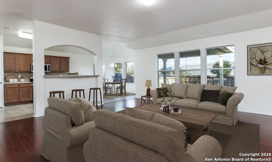 Welcome home to this thoughtfully maintained 3-bedroom, 2-bath residence offering a clean, move-in-ready feel and a layout designed for everyday comfort. Rich wood flooring flows through the main living spaces, creating a warm and cohesive connection between the living, dining, and kitchen areas-ideal for both relaxing and entertaining. The kitchen has been nicely updated with brand-new granite countertops, stainless steel appliances, a new dishwasher, and ample cabinetry, making it as functional as it is inviting. Tucked away at the back of the home, the primary suite provides a peaceful retreat complete with a full bath featuring a separate shower and soaking tub. Two secondary bedrooms are generously sized and filled with natural light, offering flexibility for guests, a home office, or additional living space. Recent major upgrades include a brand-new HVAC/AC system and water heater, providing peace of mind and long-term comfort for the next homeowner. Step outside to the extended covered patio-perfect for outdoor dining, weekend grilling, or simply enjoying the backyard space. A two-car garage adds convenience with secure parking and additional storage. Conveniently located on the Northeast side of San Antonio, this home offers quick access to I-10, 410, and 1604, along with nearby shopping, dining, and everyday essentials. A welcoming space that's easy to settle into, this home is ready to be enjoyed from day one.