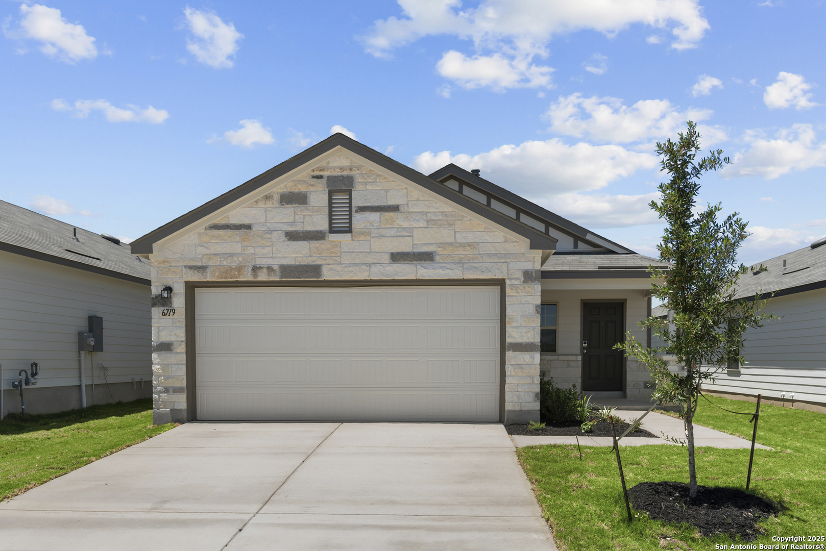 **READY NOW***Welcome to this beautiful new construction home located at 6719 Red Buffalo Trail in San Antonio, TX 78253. This modern 3-bedroom, 2-bathroom home built by M/I Homes, one of the nation's leading new construction home builders, offers a perfect blend of comfort and style. Your New Home Features Upon entering, you are greeted with an open floorplan that seamlessly connects the living room, dining area, and kitchen, creating a spacious and inviting atmosphere for daily living and entertaining. The kitchen is a chef's delight, featuring sleek countertops, stainless steel appliances, ample cabinet space, and a large island that doubles as a breakfast bar. The master bedroom is a serene retreat, boasting a walk-in closet and an en-suite bathroom with a double vanity, a soaking tub, and a separate shower. The two additional bedrooms are generously sized and share a well-appointed full bathroom. Enjoy the convenience of a 2-car garage for parking and storage needs. Step outside to the covered patio where you can unwind and enjoy the fresh air in your private outdoor space. With 1,485 sqft of living space all on one level, this home is perfect for families, professionals, or anyone looking for a comfortable and low-maintenance living environment.