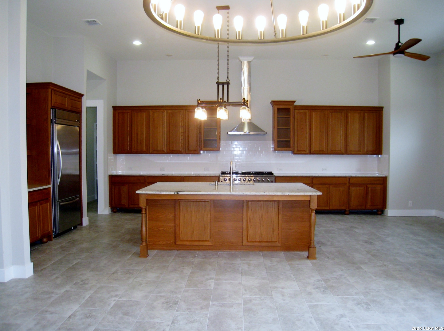 Stunning ranch style hill country home sitting on two beautiful treed acres in Bulverde, offering the perfect blend of privacy and space. Designed for both comfort and entertainment, this exceptional property with 4989 square feet of living area features three bedroom suites, each providing its own private retreat. The huge country kitchen open to the living area features custom cabinets, breakfast bar plus a chef's range with eight burners. Enjoy gatherings in the formal living and dining rooms, while the dedicated theater room creates the ultimate space for movie nights. The heart of the home boasts a huge pantry and unbelievable storage throughout, ensuring everything has its place. This property delivers true country living having more than enough room to relax and enjoy the natural beauty and wildlife.