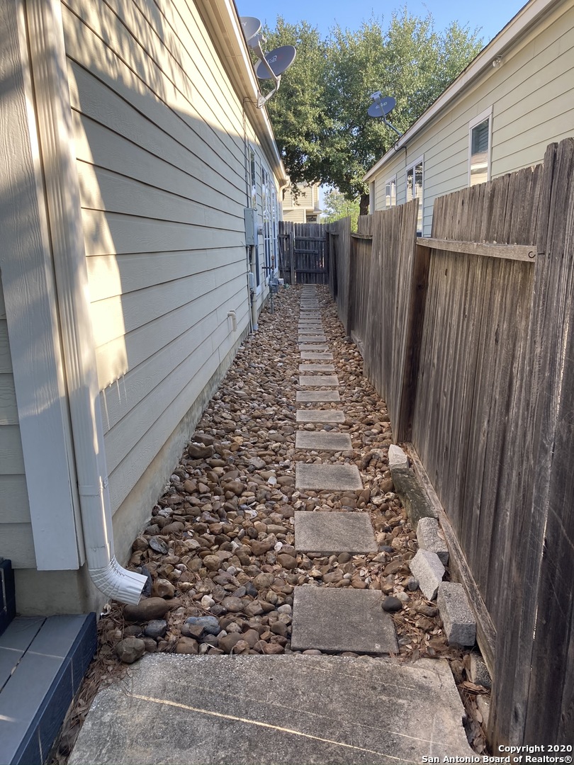 One story townhome, very open floorplan with large bedrooms, walk in closets, gorgeous master bathroom. NO CARPET - Beautiful laminate Muhawk flooring. 2 car garage ! Covered patio with great deck for entertaining and enjoying. Very little yard maintenance. Kitchen features newer appliances - microwave, stove, dishwasher and refrigerator. Large laundry room inside and 2 full car garage with extra parking. Close to UTSA, USAA, Medical Center, Airport, shopping, major highways, GREAT LOCATION!
