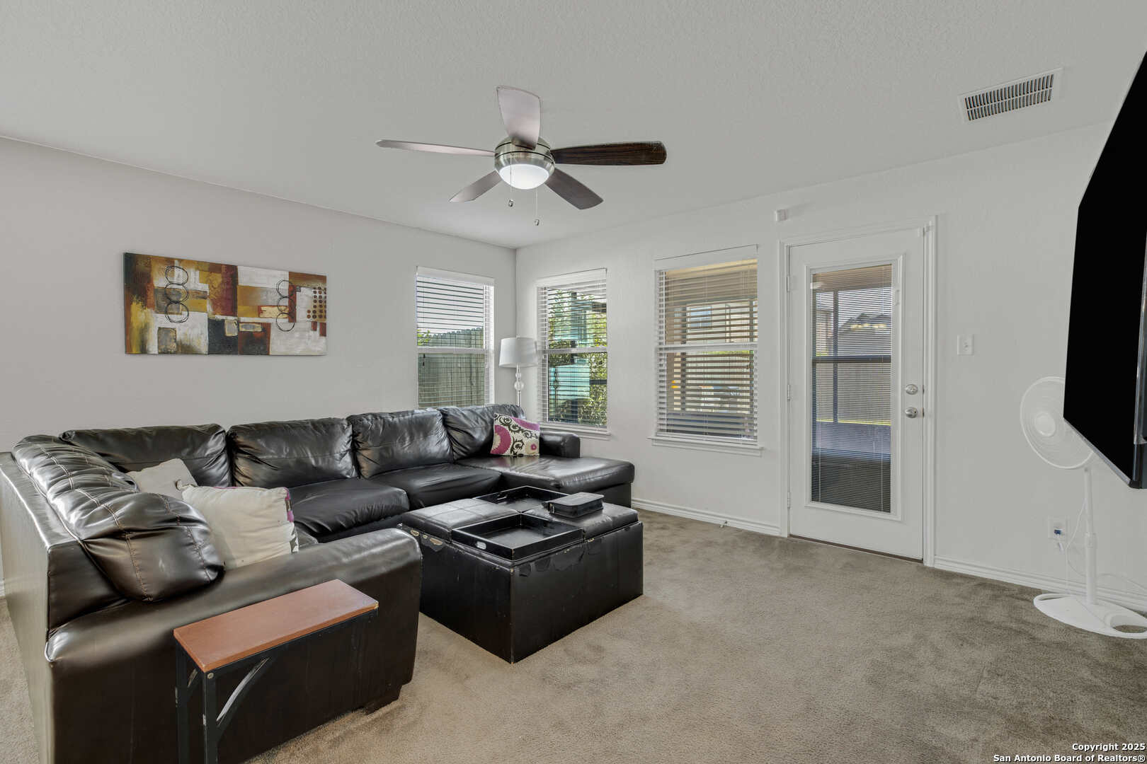 Stunning 5-Bedroom Home in the quiet and peaceful Windfield Subdivision - NE San Antonio Charm! This spacious and beautifully maintained 5-bedroom, 2.5-bath, home with huge loft, offers the perfect blend of comfort, space, and style. You will love that 4 of the bedrooms are spacious enough for king size beds. Step inside to discover an inviting open floor plan designed for modern living. The expansive living and dining areas flow seamlessly into a well-appointed kitchen, perfect for entertaining or everyday life. Abundant natural light, stylish finishes, and ample storage create a warm and welcoming atmosphere throughout. The primary suite offers a private retreat with a generously sized bedroom and ensuite bath. Upstairs, you'll find four additional bedrooms-ideal for a growing household, home office needs, or guest accommodations. Enjoy the Florida Room while looking out into the spacious backyard-perfect for relaxing evenings, weekend BBQs, or playtime under the Texas sky. Conveniently located with easy access to schools, shopping, dining, and major highways, this home is a must-see in a family-friendly neighborhood. Notables: Efficient a/c, sink in garage, security system & water softener! Don't miss your opportunity to own this exceptional home in Windfield-schedule your showing today!