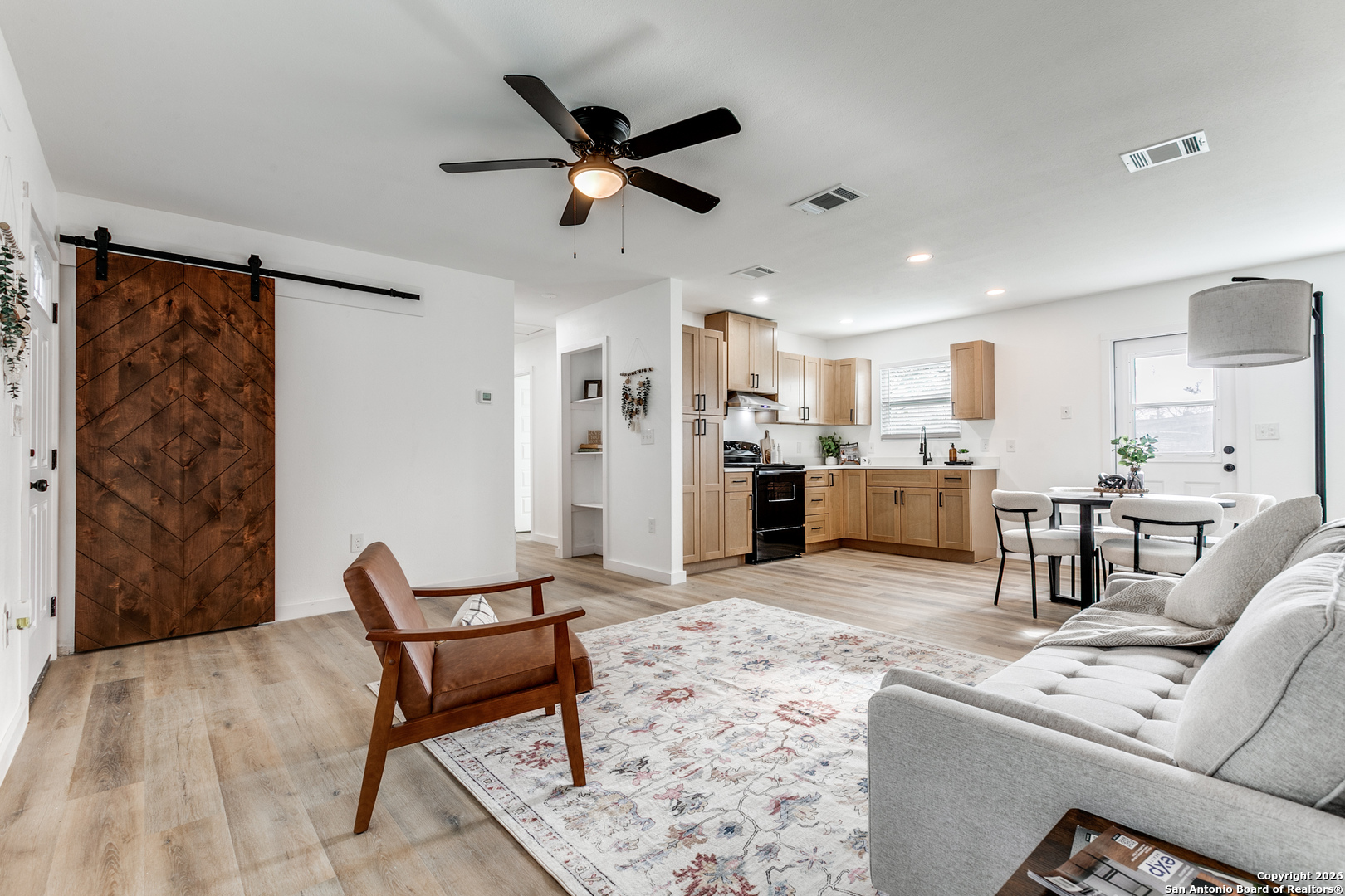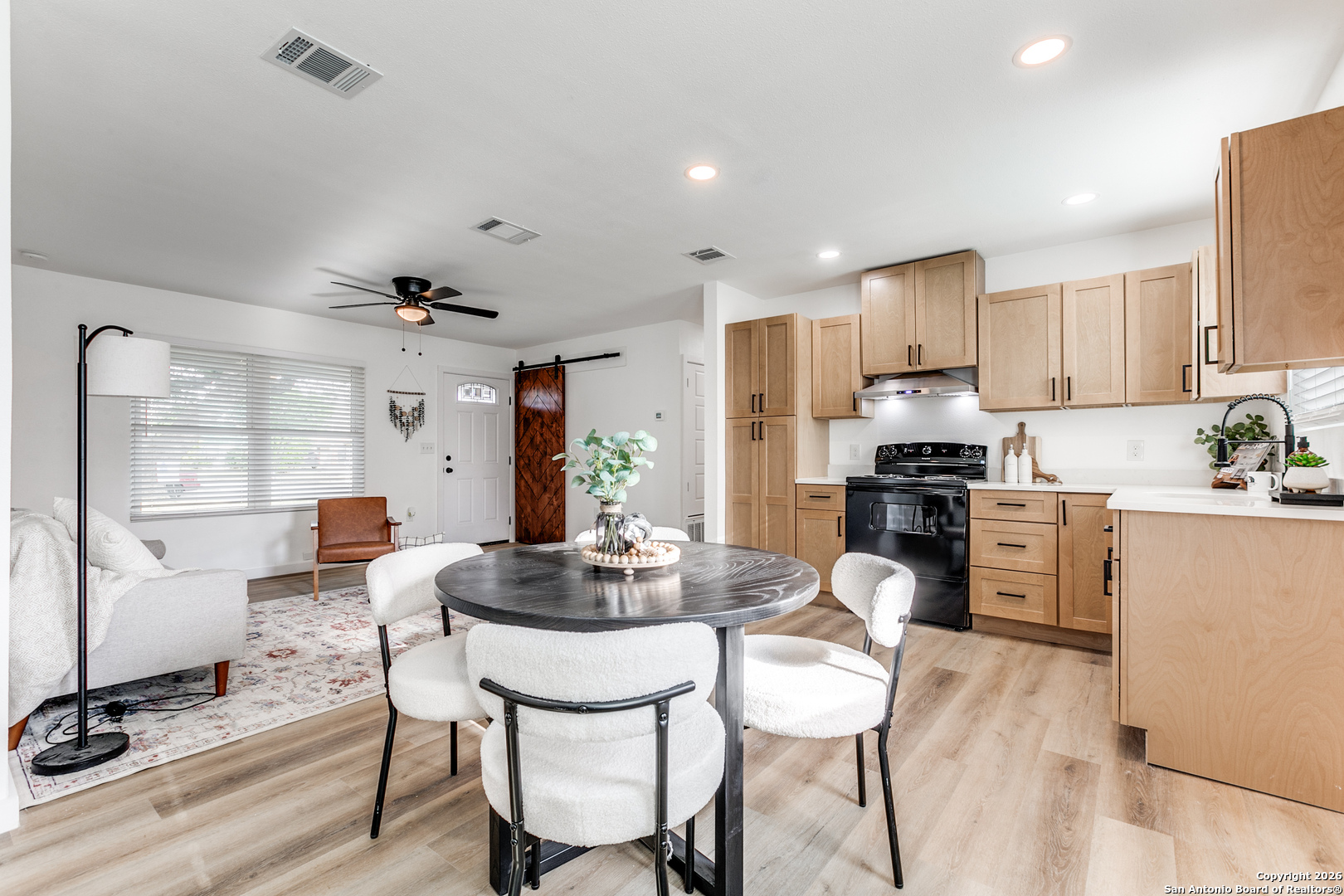 Completely Remodeled & Move-In Ready! This beautifully updated 4-bedroom, 2-bath home features a brand-new roof, new flooring throughout, a new kitchen, and fully renovated bathrooms. Designed with a bright, open-concept floor plan, the home offers seamless flow between the living, dining, and kitchen areas-perfect for both entertaining and everyday living. The new kitchen showcases modern cabinetry, updated fixtures, and a functional layout that opens to the main living space. Both bathrooms have been completely remodeled, offering fresh finishes and a clean, contemporary feel. Thoughtful upgrades, neutral tones, and stylish details throughout make this home truly turn-key. Enjoy great curb appeal with a spacious yard and mature trees, all in a home where the big-ticket updates are already done. Just move in and enjoy!