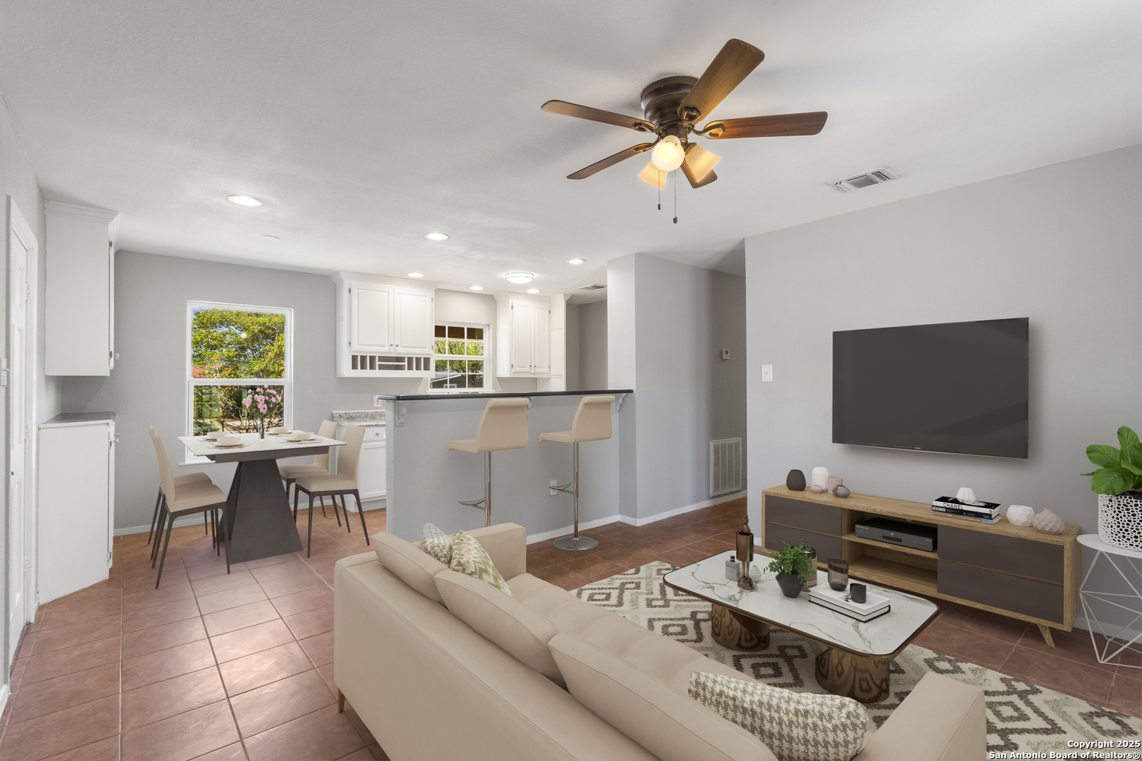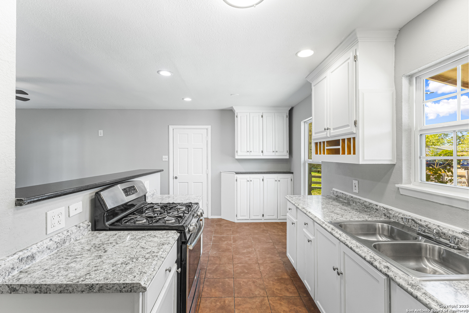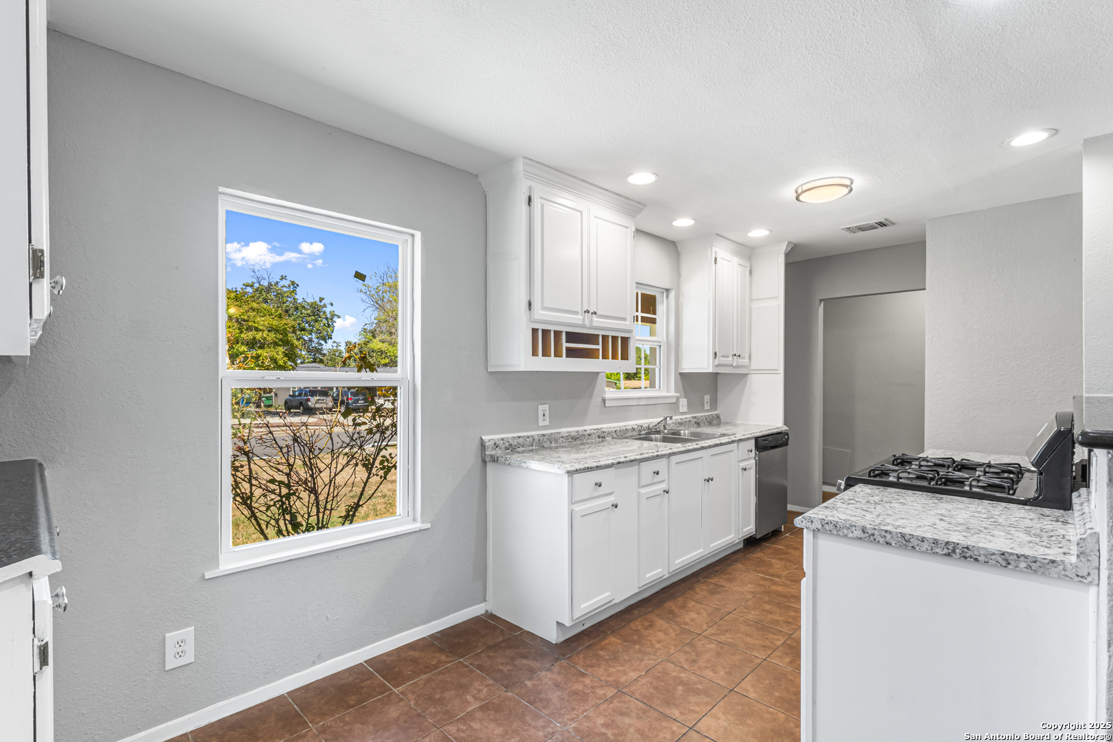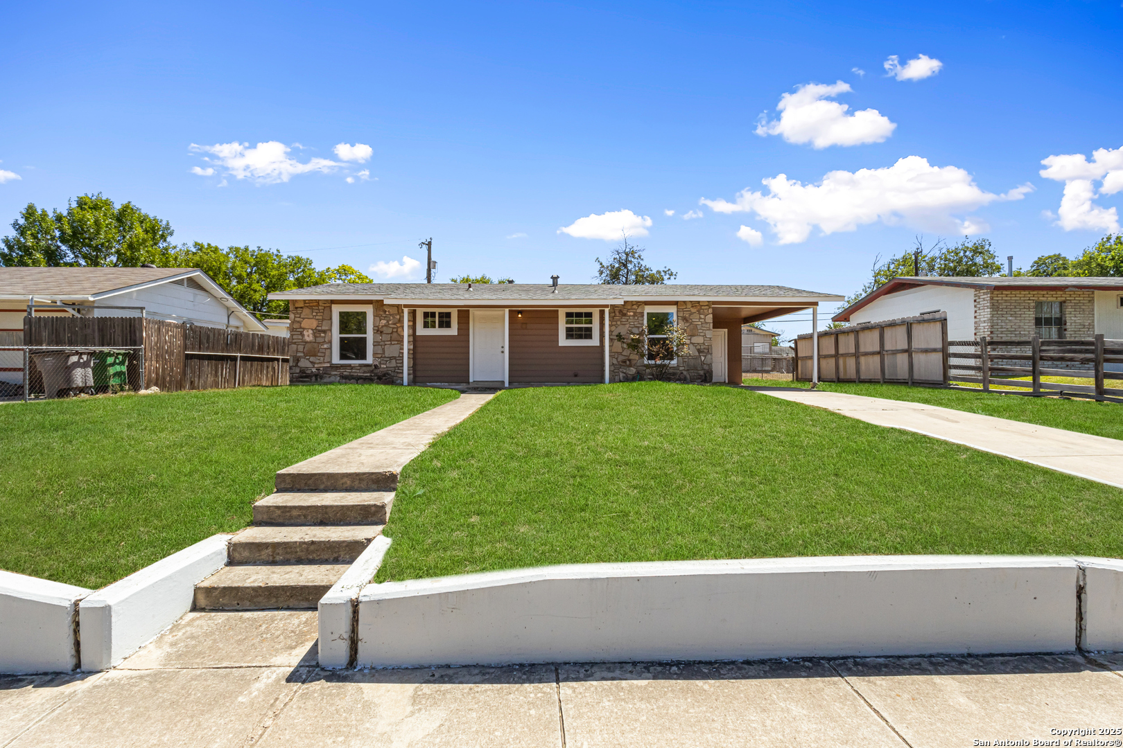 Recently renovated and move-in ready! This charming 3-bedroom, 1-bath home features fresh interior paint, brand new windows, and updated fixtures throughout. The kitchen has been beautifully upgraded with new cabinets and countertops. Enjoy year-round comfort with central HVAC. The spacious layout flows into a large backyard, perfect for outdoor living, pets, or entertaining. Relax under the covered back porch and take advantage of the no HOA lifestyle. Conveniently located near Lackland AFB, shopping, dining, and major highways, this home offers both comfort and convenience.