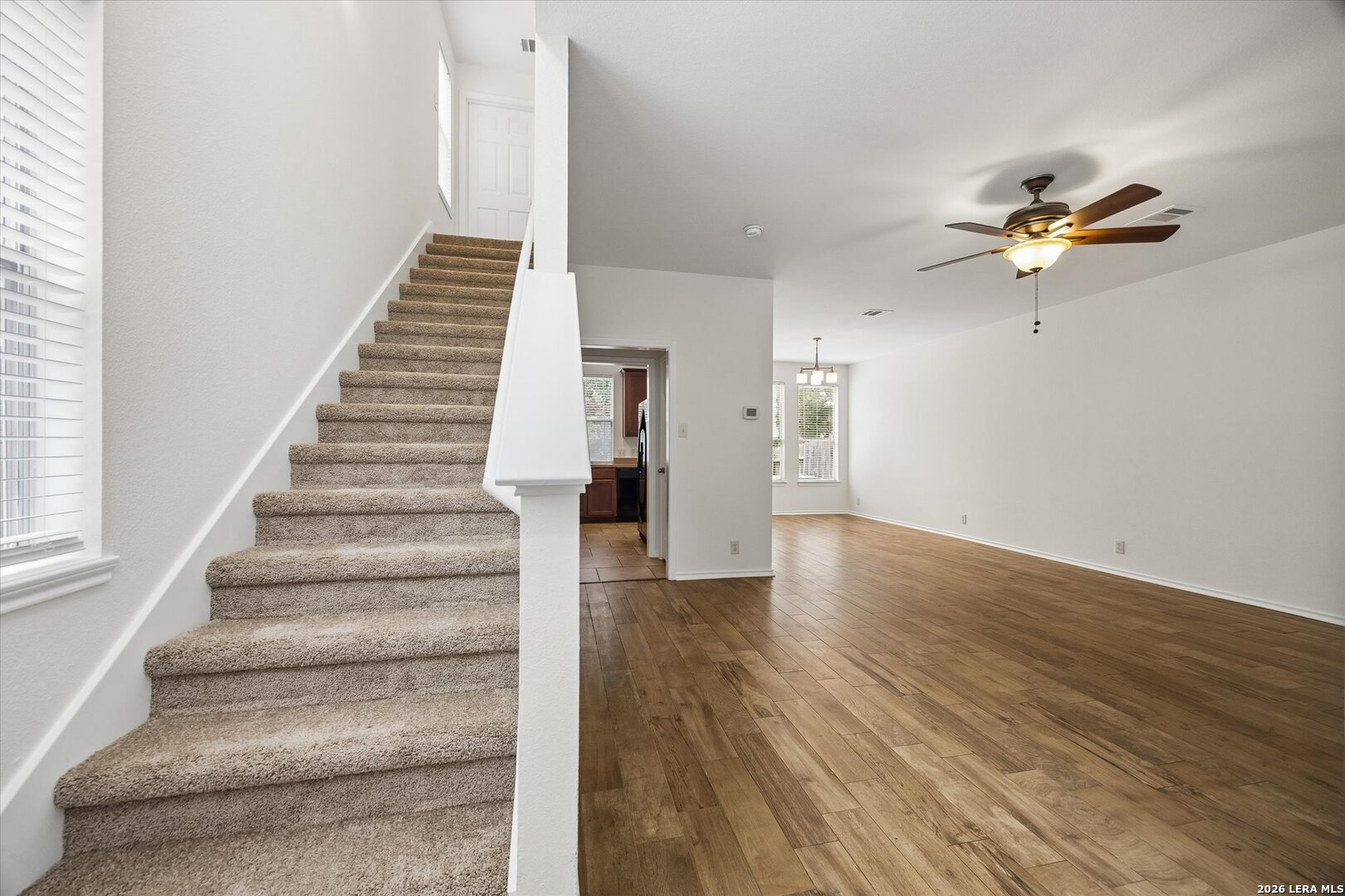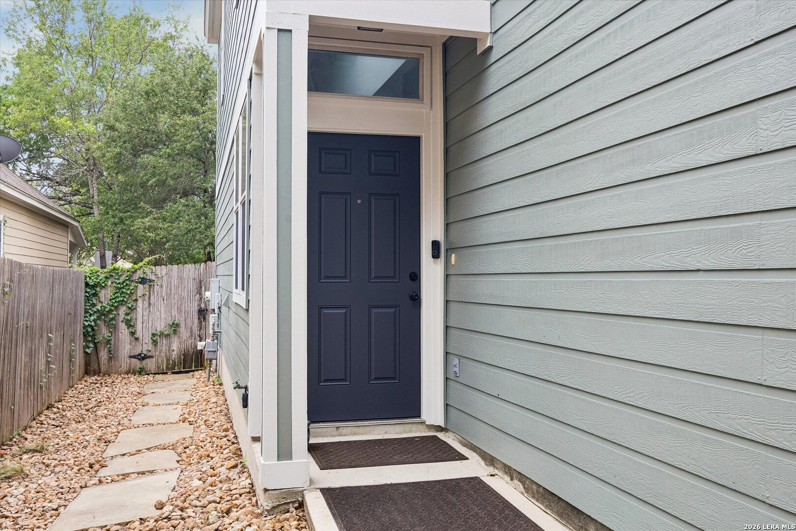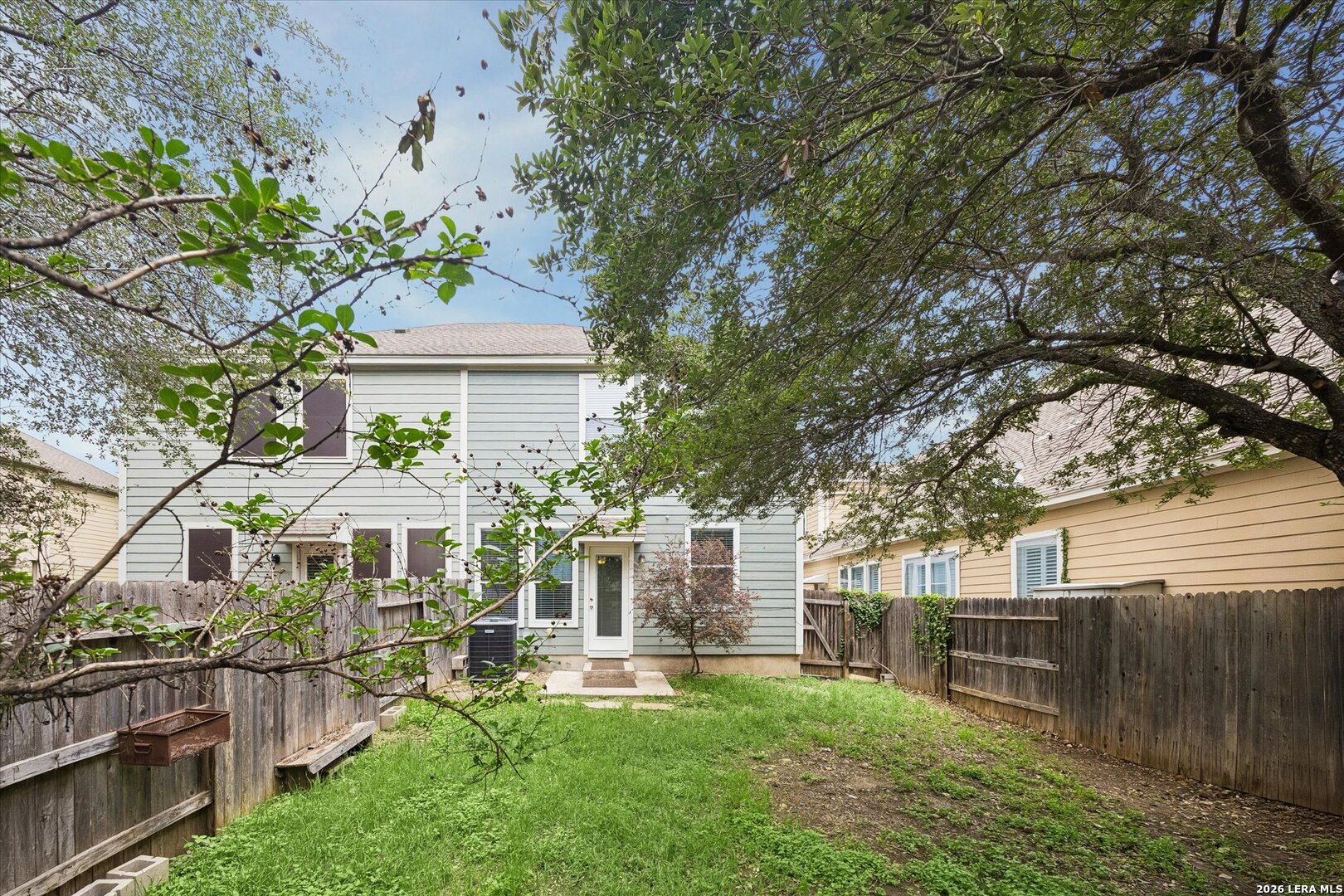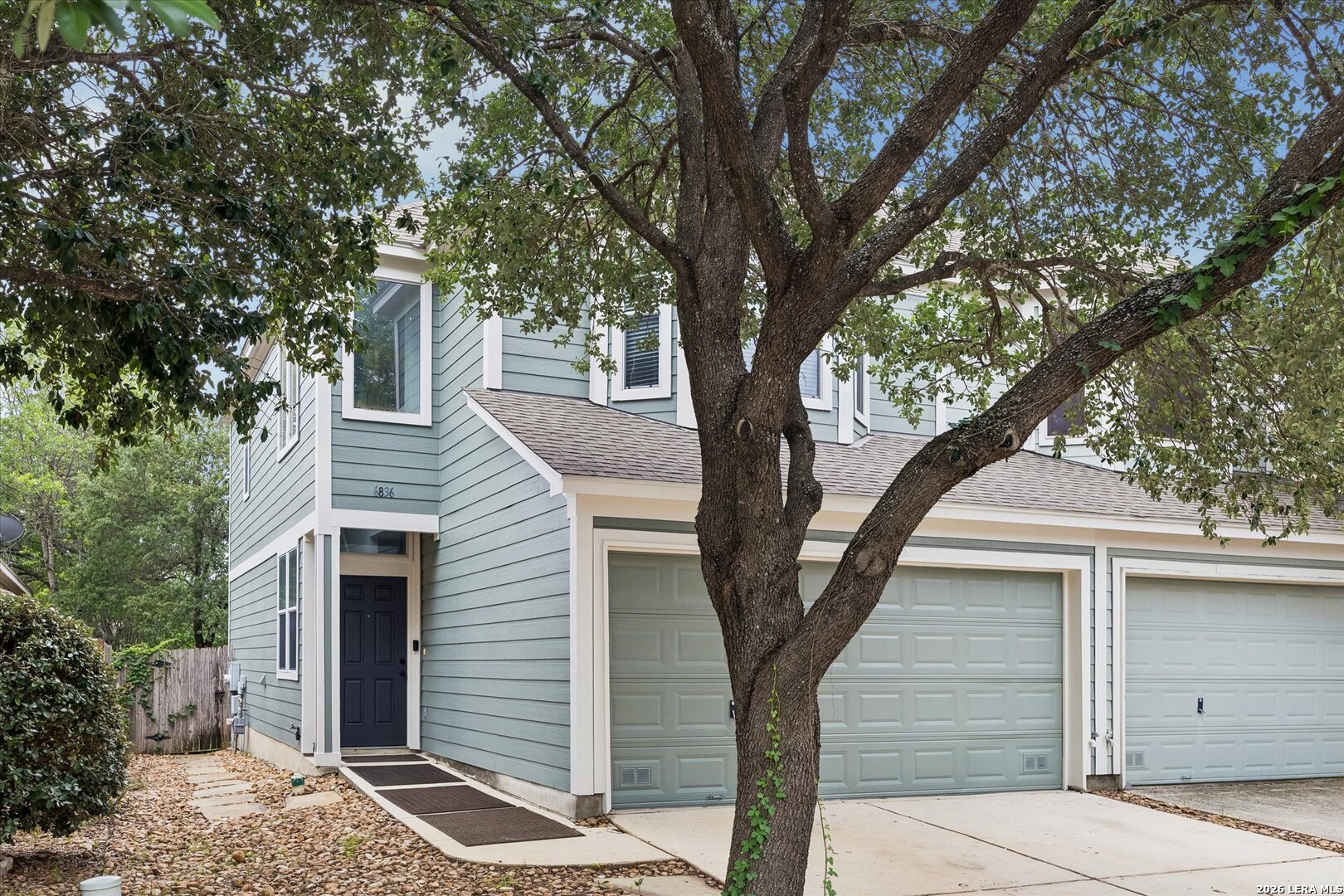 Beautifully updated townhome with high ceilings, fresh interior & exterior paint. Hard surface flooring downstairs, new carpet upstairs. The kitchen features 42 inch cabinets. The spacious primary suite offers a walk-in closet and garden tub/shower combo. Washer/dryer connections are conveniently located upstairs. Enjoy tons of natural light, fenced yard, two car attached garage, a new A/C system (2026) with 2 year labor and 10 year parts warranty. Community dog park and convenient location near the Prue Trailhead, San Antonio Medical Center, UTSA and USAA. A fantastic opportunity to own a move-in ready home in a highly convenient location!