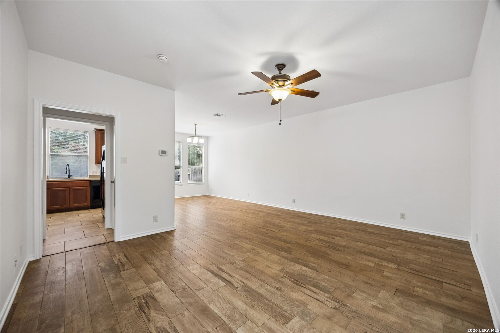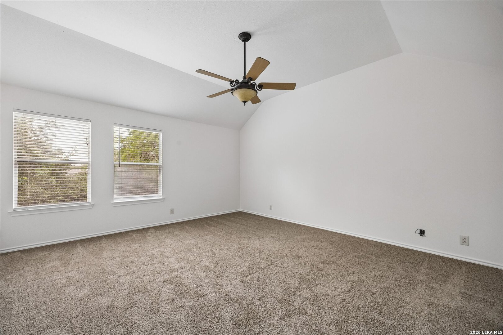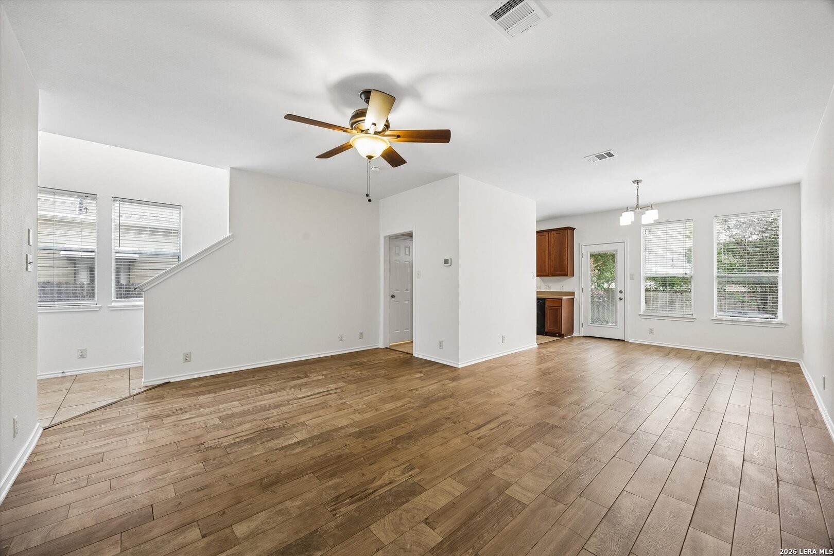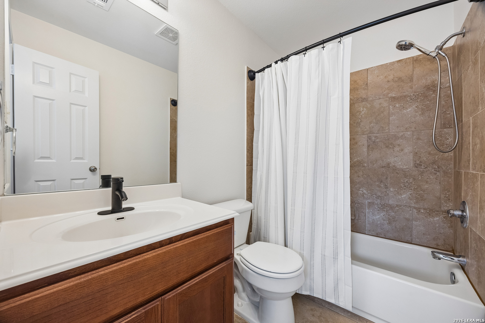 Beautifully updated townhome with high ceilings, fresh interior & exterior paint. Hard surface flooring downstairs, new carpet upstairs. The kitchen features 42 inch cabinets. The spacious primary suite offers a walk-in closet and garden tub/shower combo. Washer/dryer connections are conveniently located upstairs. Enjoy tons of natural light, fenced yard, two car attached garage, a new A/C system (2026) with 2 year labor and 10 year parts warranty. Community dog park and convenient location near the Prue Trailhead, San Antonio Medical Center, UTSA and USAA. A fantastic opportunity to own a move-in ready home in a highly convenient location!