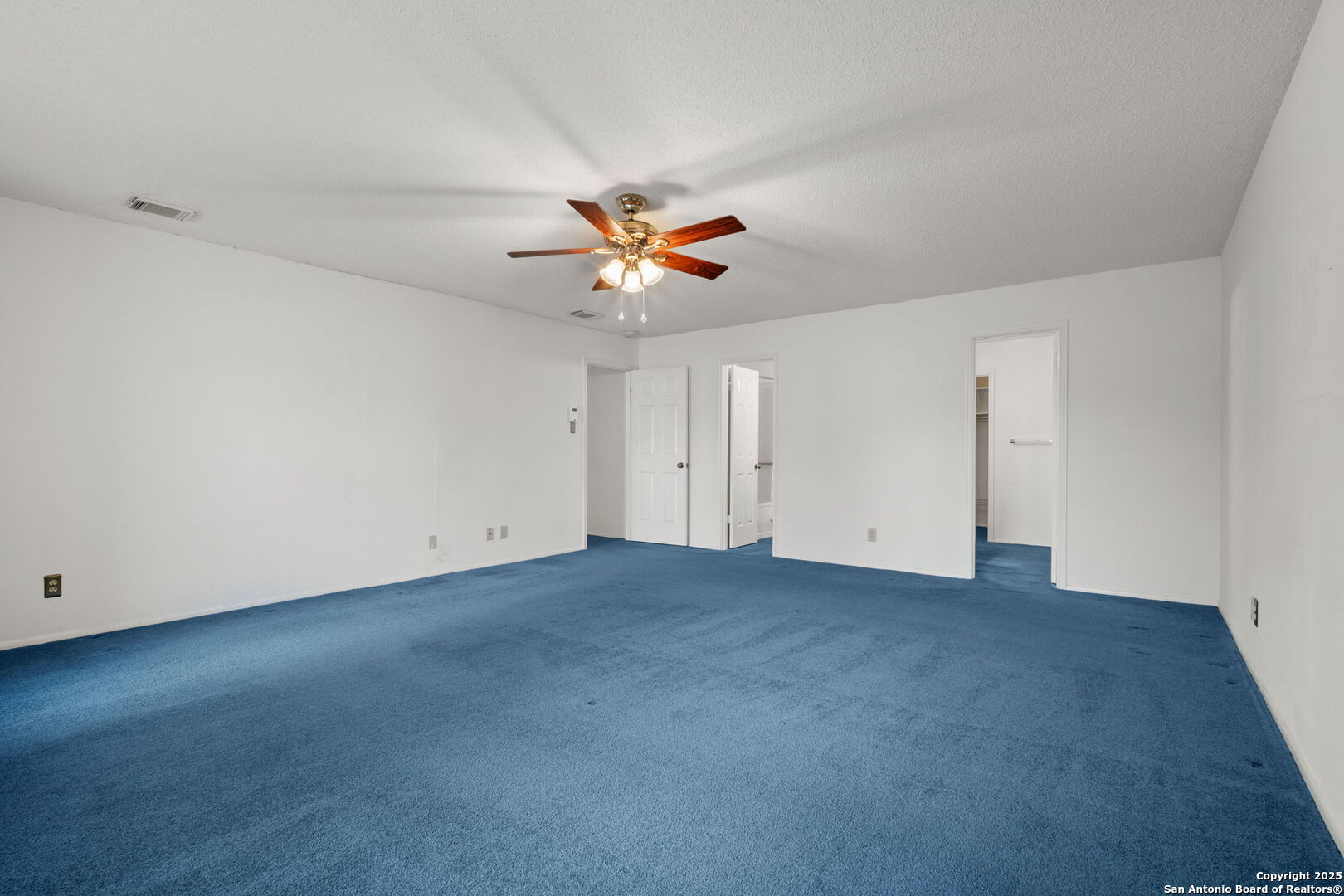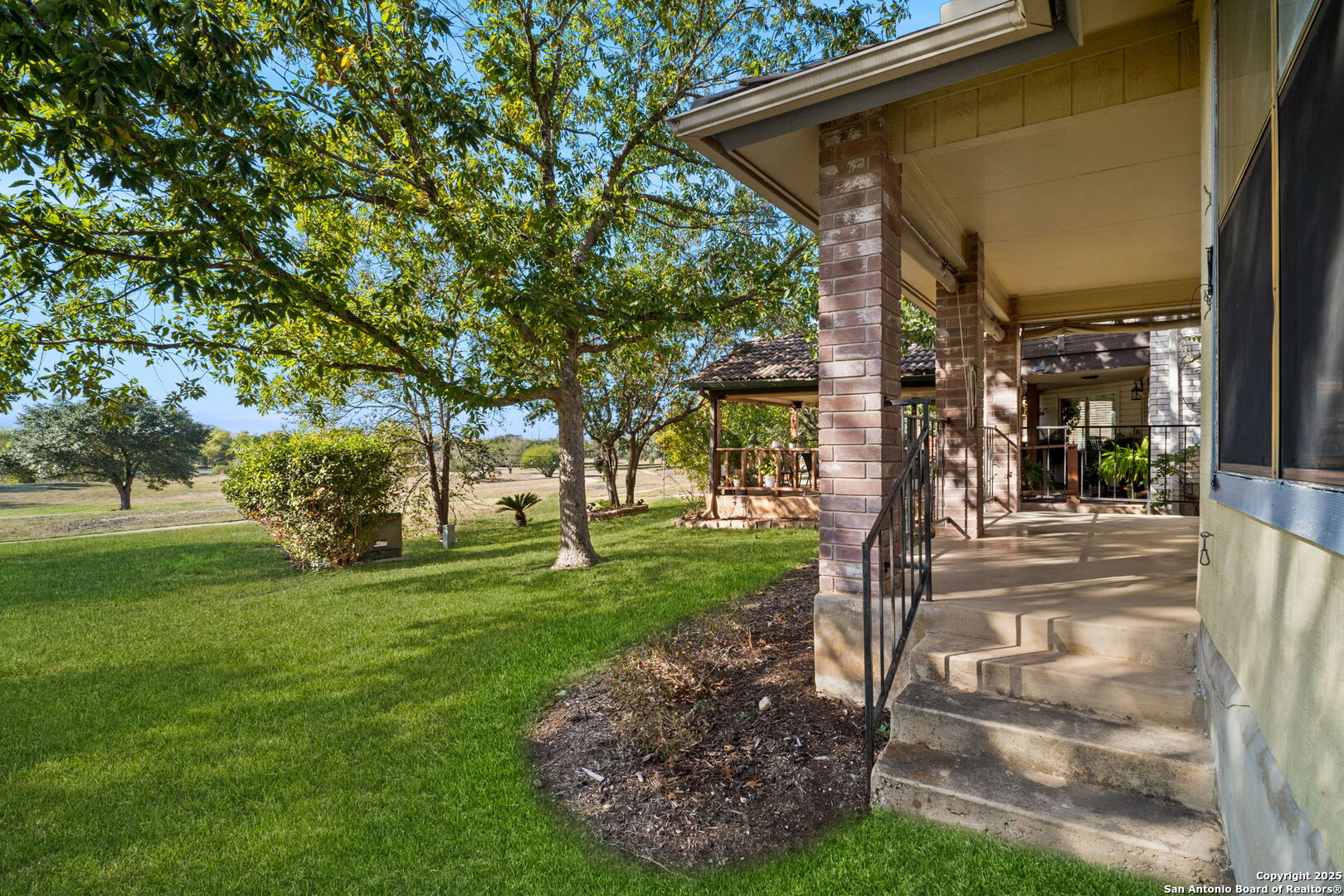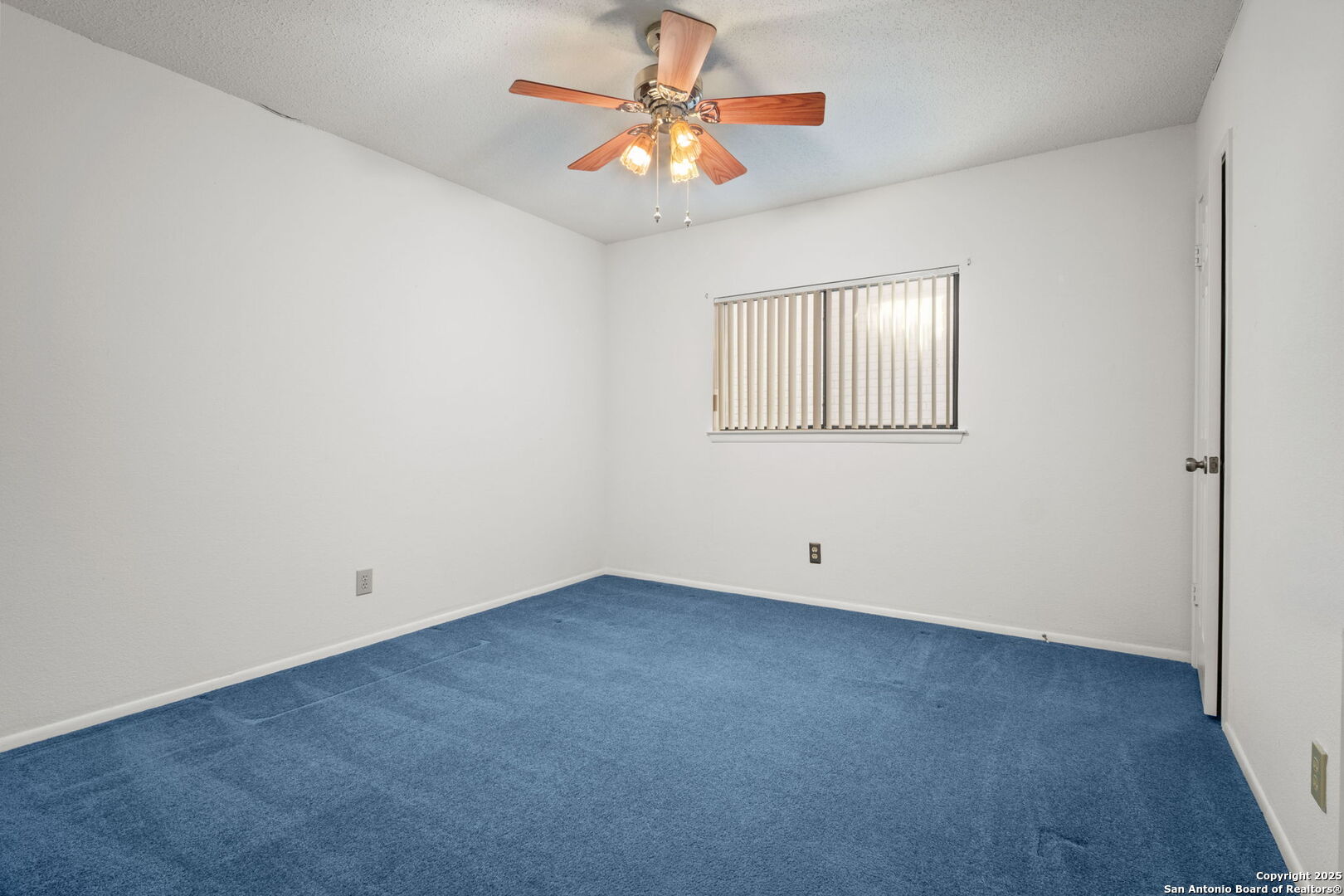 Set on a green belt within the Fairways of Woodlake gated community, this two story property is being sold as is and offers an excellent opportunity for investors or those seeking a move in ready home. The interior includes a living room with a fireplace, abundant natural light, and a kitchen featuring a large kitchen island, breakfast bar, eat in kitchen, ample cabinet space, and a spacious walk in pantry. The upstairs primary room includes separate vanities and dual walk in closets, with bathrooms equipped with handicap rails for added accessibility. Additional highlights include a water softener, newer water heater, a foundation warranty, and a concrete roof. The backyard offers a covered patio, no back neighbors, and a tranquil view backing to the 161 acre Woodlake Park. The location provides convenient access to Randolph Air Force Base, Fort Sam Houston, Brooke Army Medical Center BAMC, downtown San Antonio, and the San Antonio Airport.