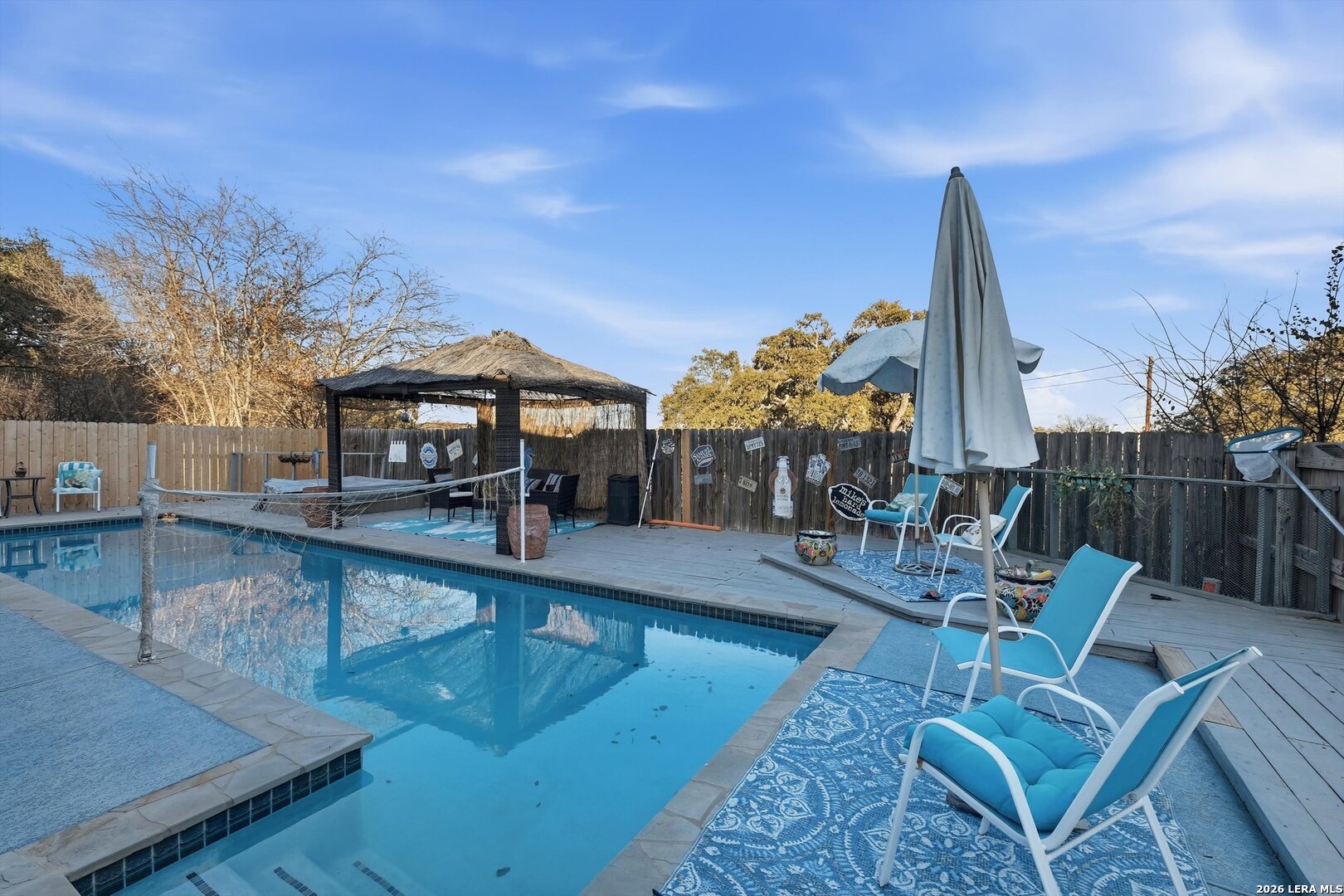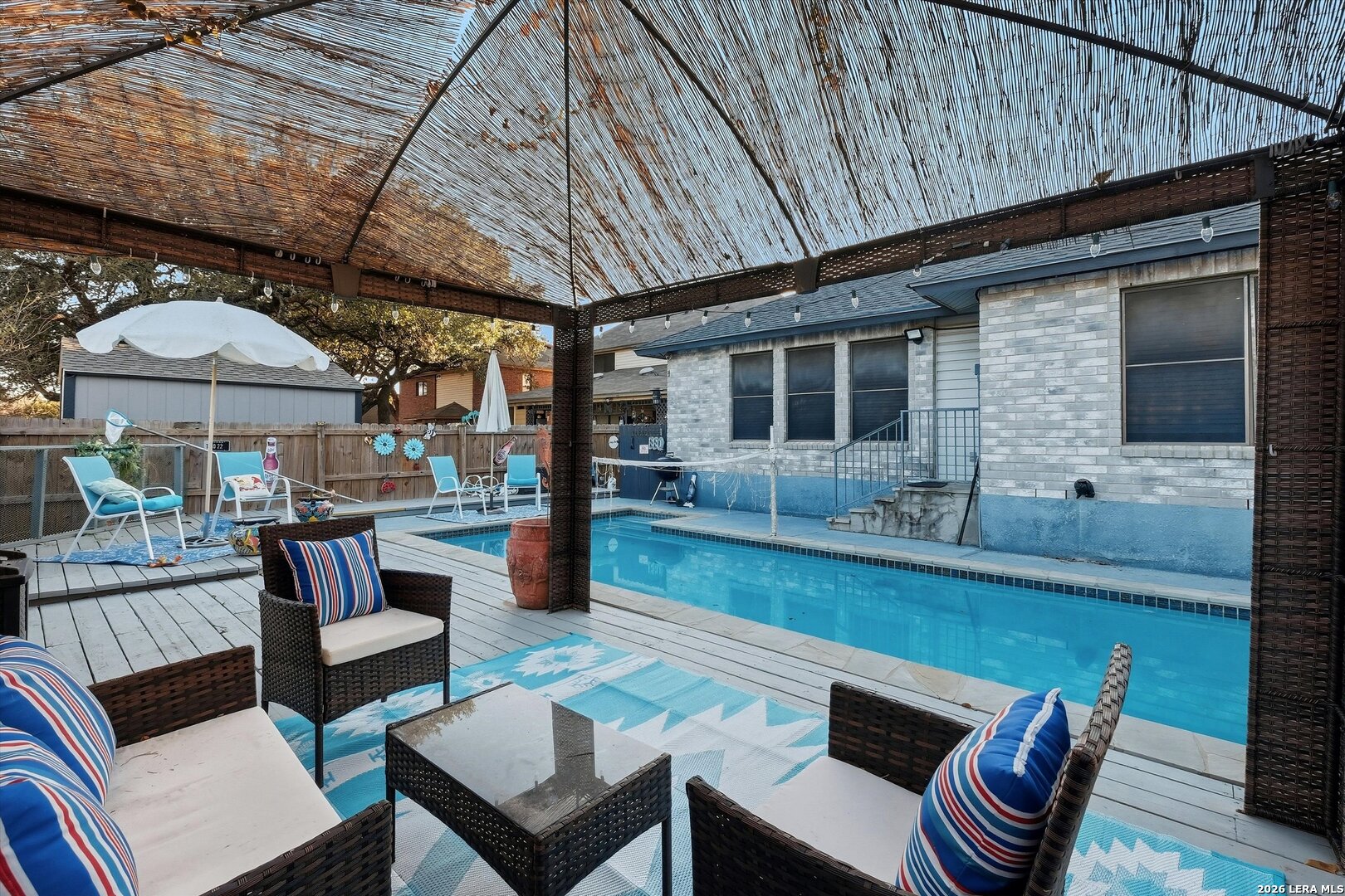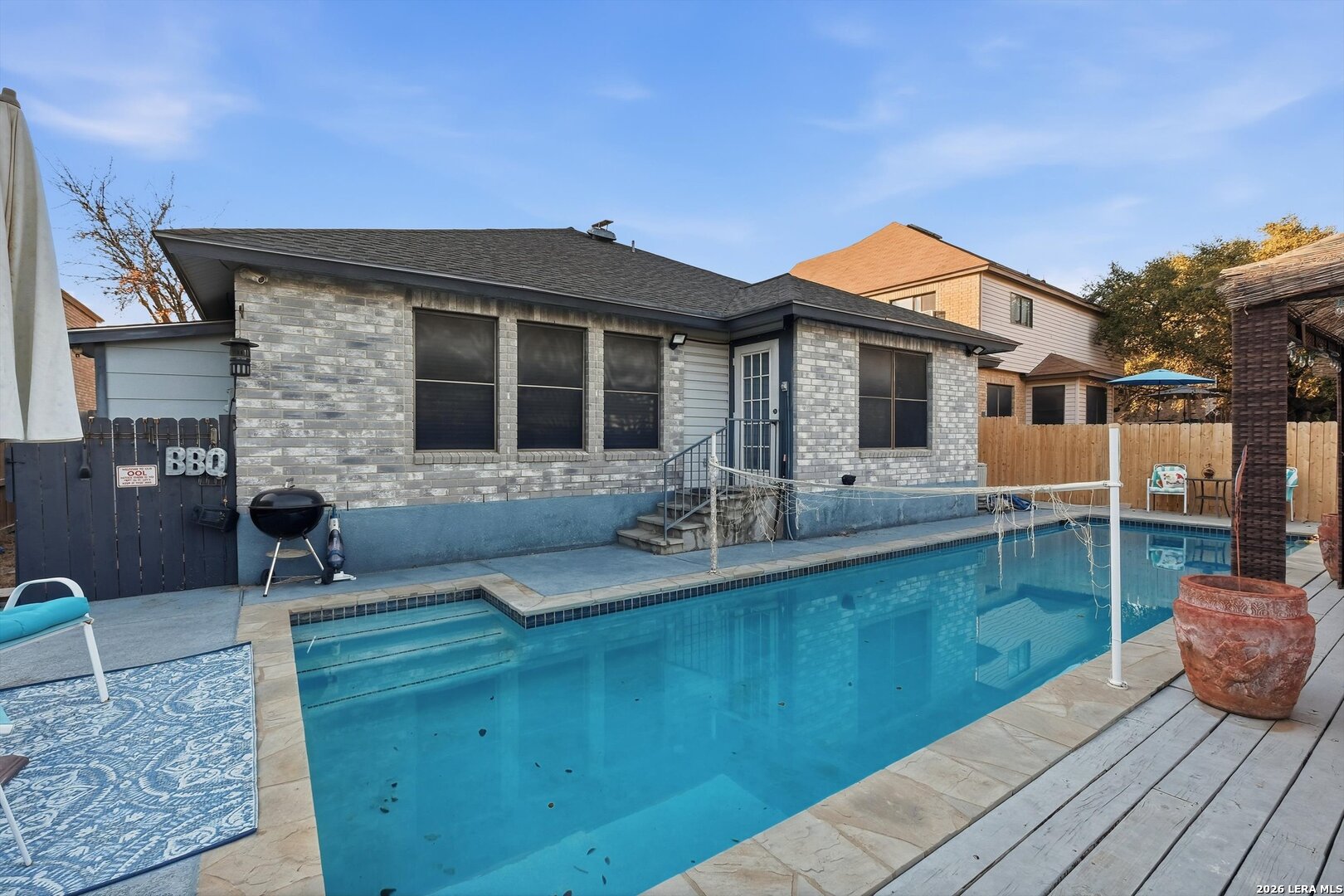 Move-in ready and upgraded beyond the norm, this all-brick, single-story home in a quiet section of Northwest Crossing offers 4 bedrooms, 2 baths, and 1,960 sq ft of comfortable living. The finished garage conversion makes an ideal home office, gym, or flex space. The kitchen and the ceiling tall cabinets are any chef's dream. Or, step outside to your private retreat featuring a pool and hot tub, perfect for entertaining or relaxing. Recent updates include a pool deck, replastered pool, fresh St. Augustine grass, and cedar fencing. Whether you are hosting a big party or looking for your personal retreat, check out his home before it's too late!