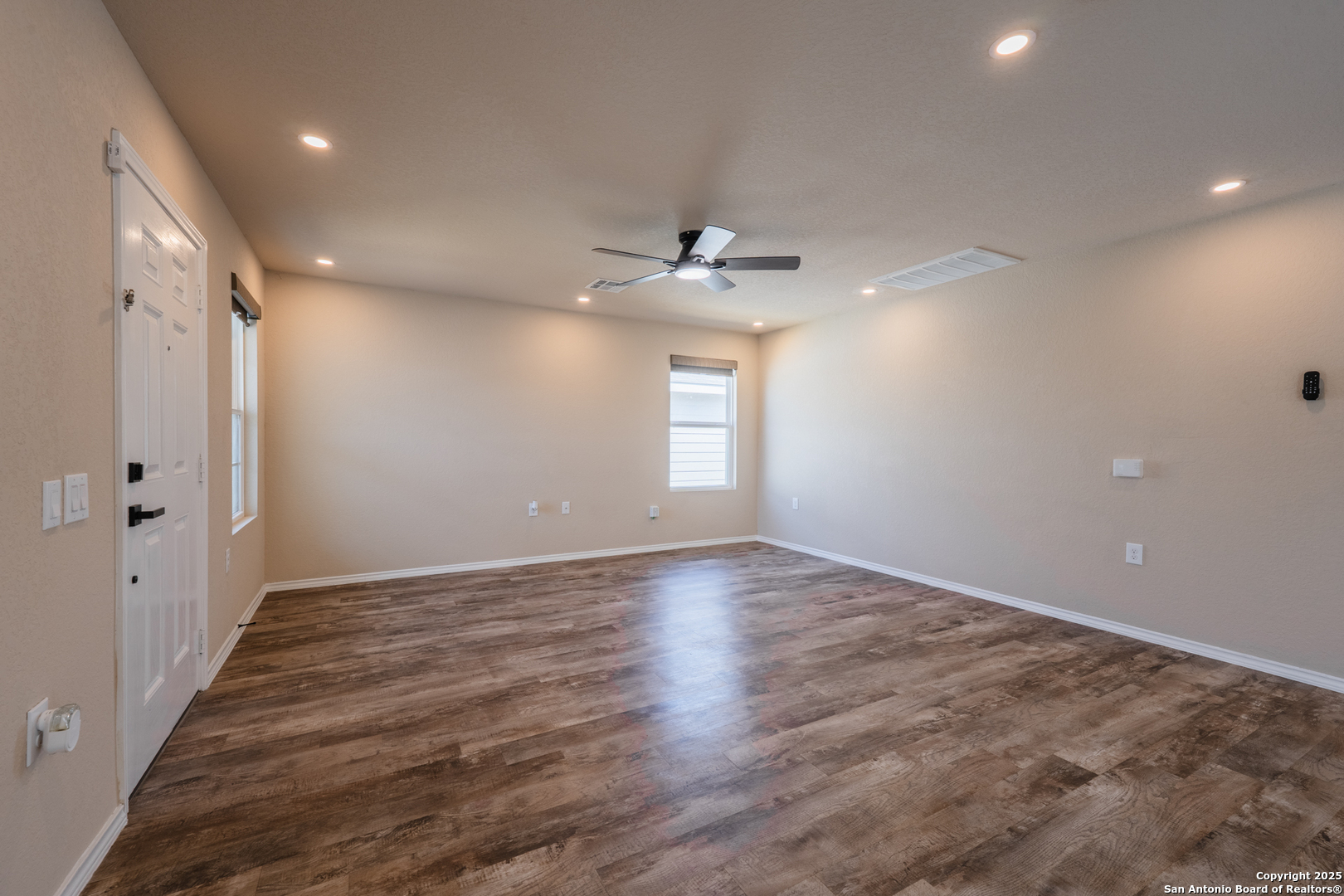 Welcome to 6958 Cozy Run, a well-maintained single-story home in the Northeast Crossing community. This property features 3 bedrooms, 2 full bathrooms, and an open layout designed for comfortable single-level living. Inside, the open-concept floor plan allows natural light to flow through the living, dining, and kitchen areas. The kitchen includes a range, built-in microwave, and generous cabinet space. The primary bedroom offers a walk-in closet and private bath. Two additional bedrooms provide flexibility for guest accommodations, a home office, or other household needs, each with ample closet space. The backyard includes a full privacy fence, creating space for outdoor activities or relaxation. A two-car garage with opener provides added convenience and security. Located near shopping, dining, schools, and major highways, this home combines comfort and accessibility in a convenient setting.