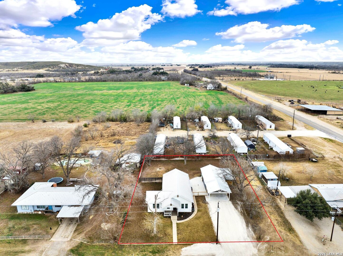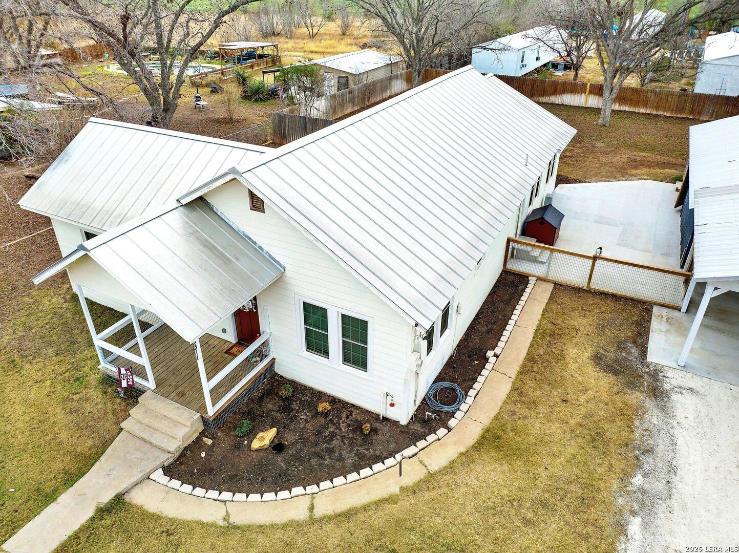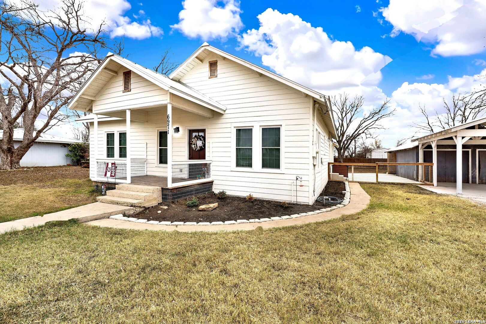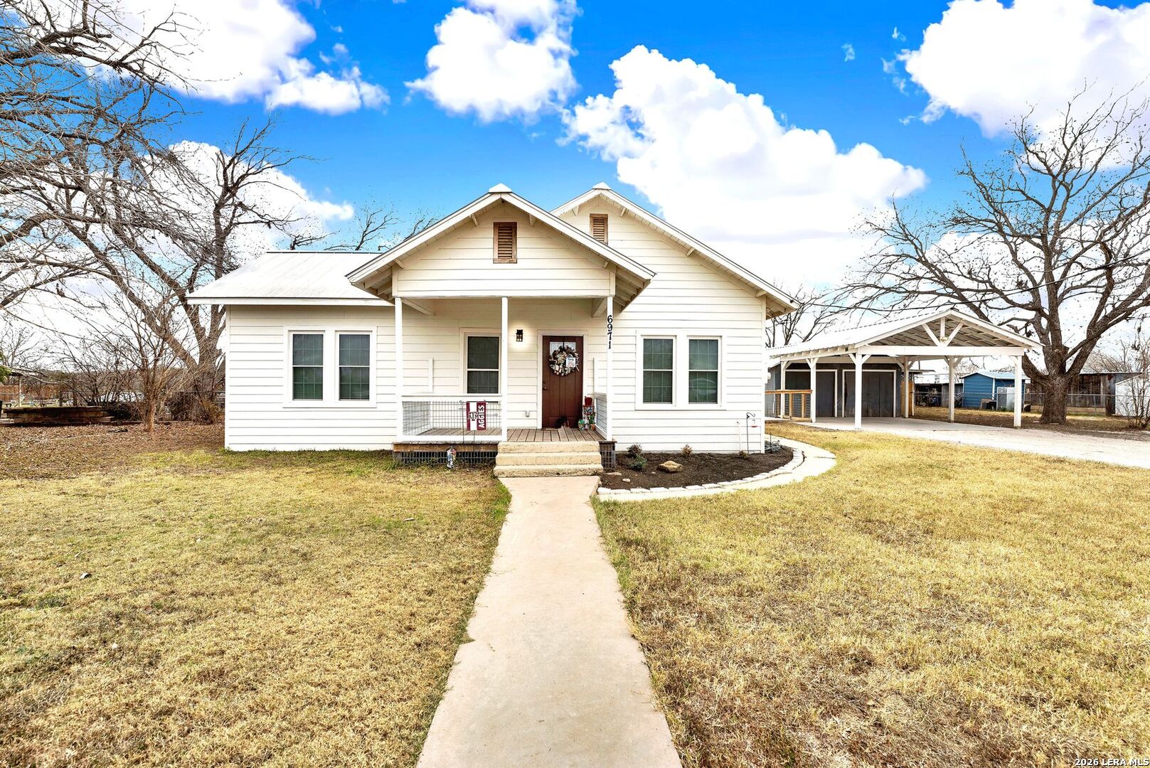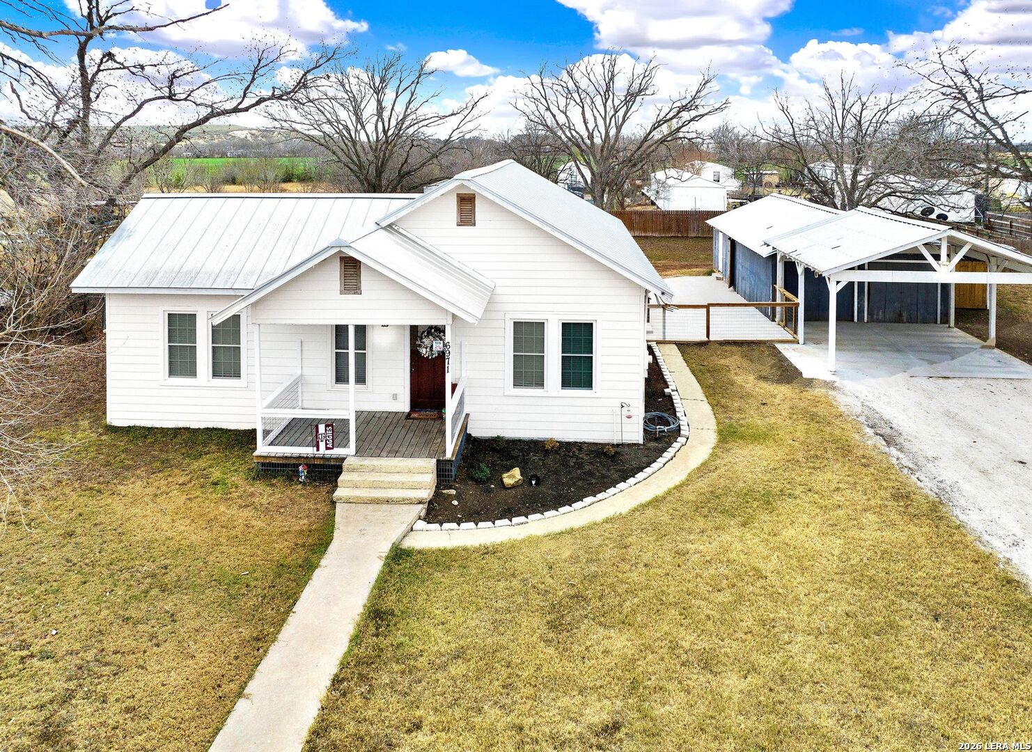 Charming 1930's farmhouse, completely revamped on over half an acre! Situated in the cutest small country town, D'Hanis TX, this 1658 square foot home had a complete makeover in 2021! From the new standing seam metal roof, new siding, porches and windows to a brand-new HVAC system. The new privacy fence compliments the spacious back yard so well and recently new concrete was poured under the carport and between the home and garage. As you step inside you will notice original hardwood floors, an open concept and country kitchen with a large island! The floor plan is desirable with three bedrooms and two full bathrooms as well as a large laundry room right off of the side entry way. Just a few minutes from the wonderful school and a short drive to Hwy 90 for easy access to Hondo or San Antonio. Enjoy quiet, small town living in a unique farmhouse where the hard work of bringing the historic home back to life has been done for you!