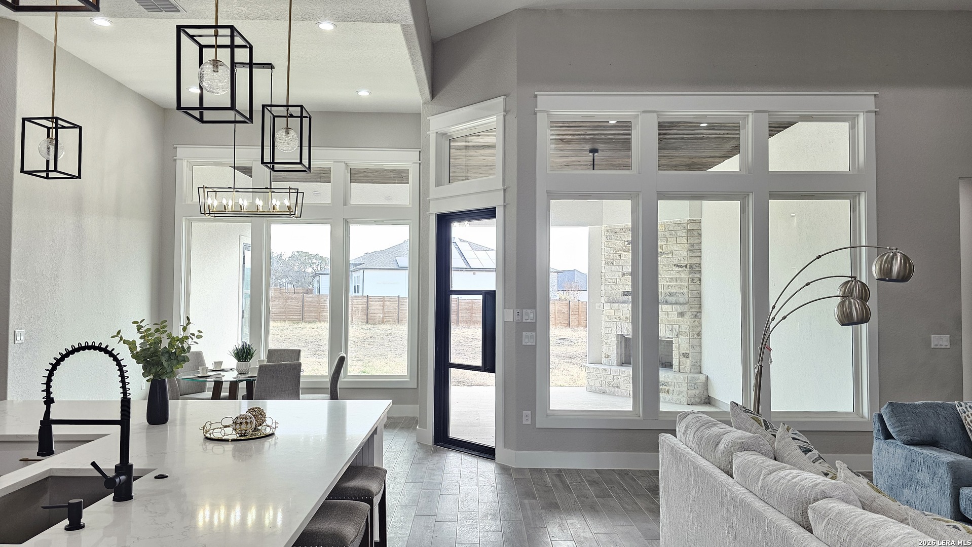 Nestled in beautiful hill country elegant residence graces in gated Potranco Acres SD. Boasts 4 BR 3.5 BA with an office & flex room. Home is epitome of modern elegance. This open/spacious floor plan will accommodate entertaining and relaxation. It boasts high ceilings & ample space for your lifestyle. A grand beauty iron door welcomes you. Exterior iron doors including the office doors are another luxury feature. The gourmet kitchen entails custom cabinetry, pot filler, spacious pantry, & large island that overlooks the living area & backyard. Elegant metal exterior doors including office doors. Master suite is haven of sophistication, adorned w/high ceilings & lavish bath with luxurious soaker tub, dual shower heads, twin vanities, expansive walk-in closet, & an abundance of natural light. Master BR leads directly to patio. Enjoy your evenings watching the stars from Texas patio. Outdoor fireplace will help keep you warm on those cold nights. Groceries and eateries are nearby at TX-211 and Potranco Rd. Be near San Antonio, Alamo Ranch shopping & eateries, Lackland AFB, Port of Kelly, Sea World, and Castroville. TX-211, Hwy 90, 1604, and 410 are nearby.