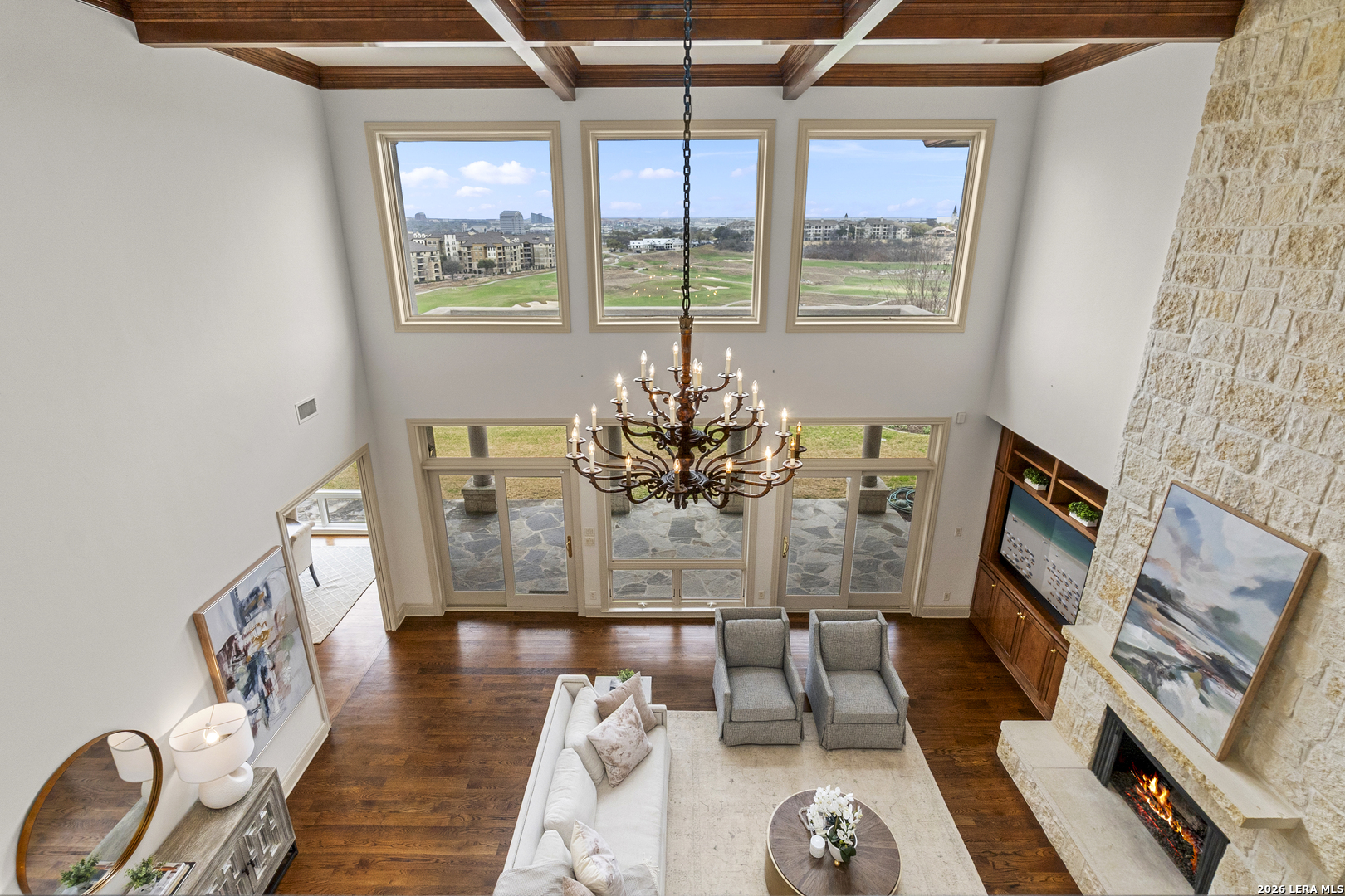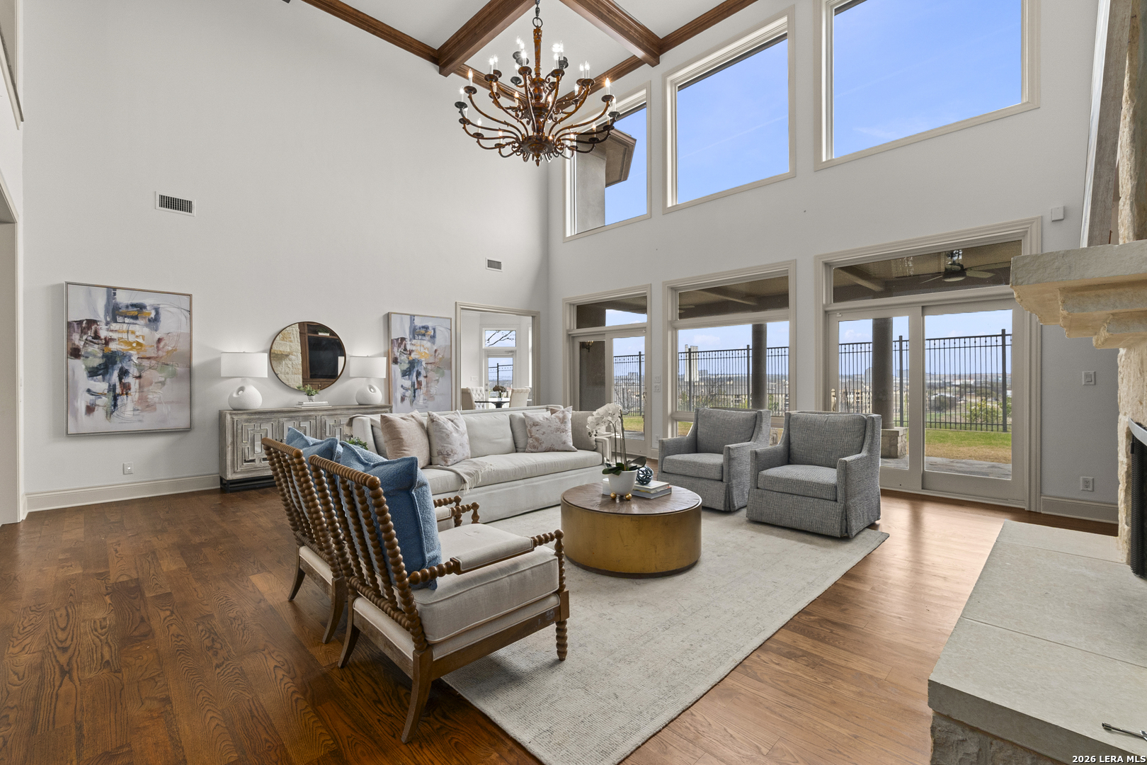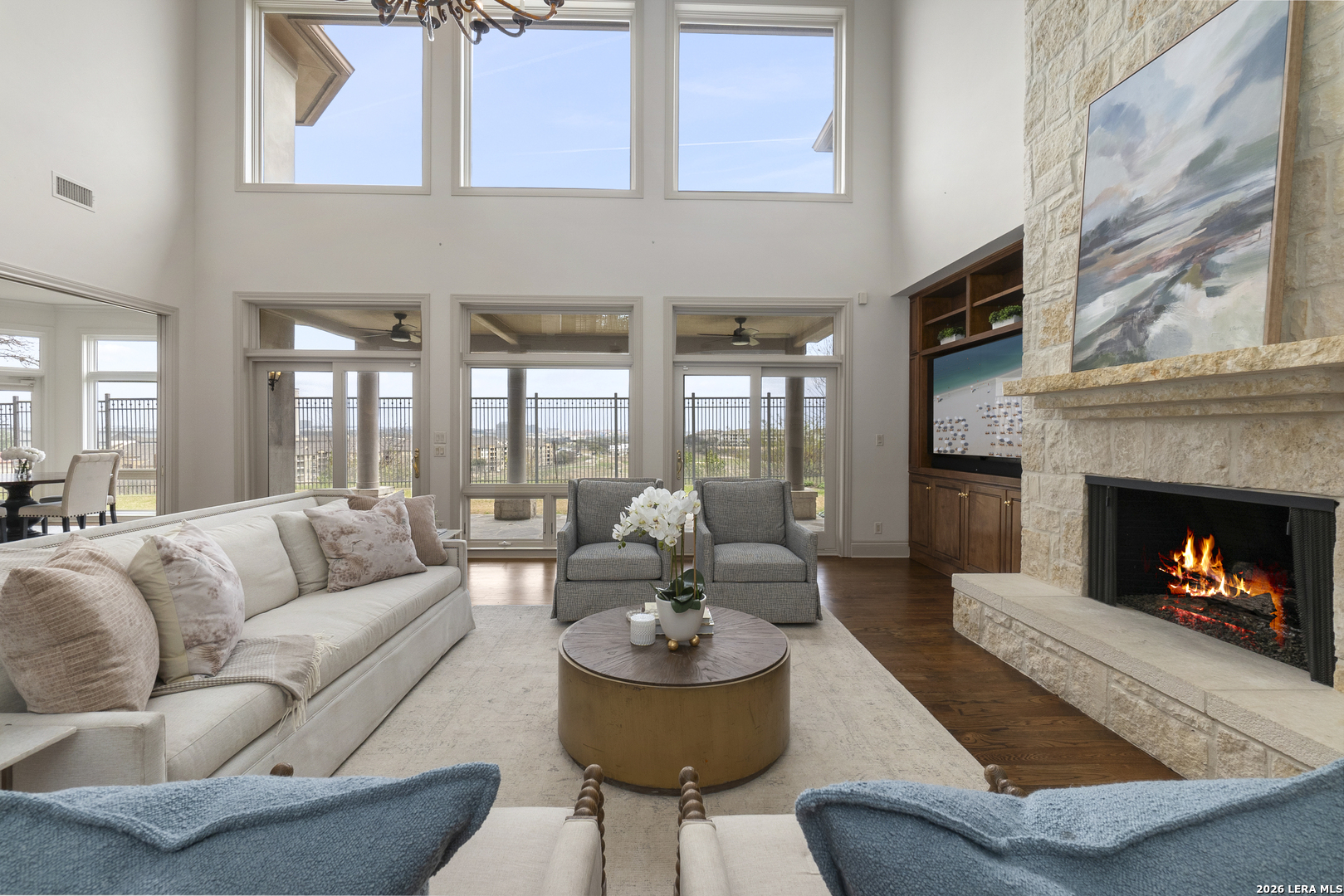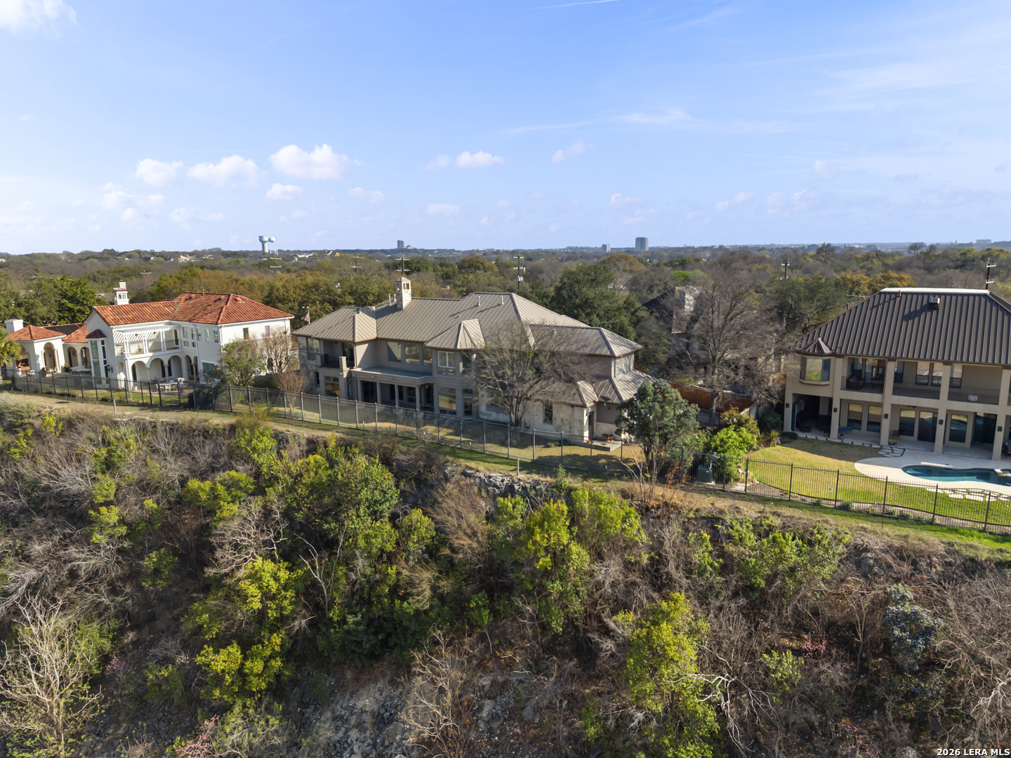 Welcome to 7 Oxford Hall - positioned on the top of the cliff in Alamo Heights, this Lincoln Heights estate offers breathtaking views of San Antonio's skyline and the Quarry Golf Course. A perfect blend of timeless elegance and modern luxury, every inch of this home is crafted with impeccable details. The high ceilings and panoramic windows set the grand tone in this two-story living room filled with natural light and a formal dining area ideal for hosting. The chef's kitchen imagined by local designer Julie Bradshaw stuns with premium appliances, a massive island with leathered Taj Majal Quartzite, a walk-in pantry, and a butler's pantry-both stylish and functional. The main-level primary suite is a serene retreat with dual walk-in closets, dual and separate vanities and separate closets. This home also features a private work out room, an elevator and multiple bonus areas that could be used for an office or secondary flex spaces. Upstairs, three ensuite bedrooms and a cozy sitting room open to a balcony with jaw-dropping views. From its unmatched craftsmanship to panoramic views, this isn't just a home-it's a lifestyle.