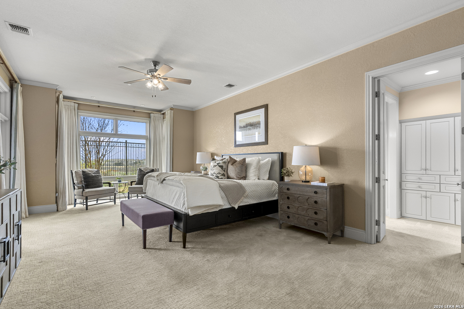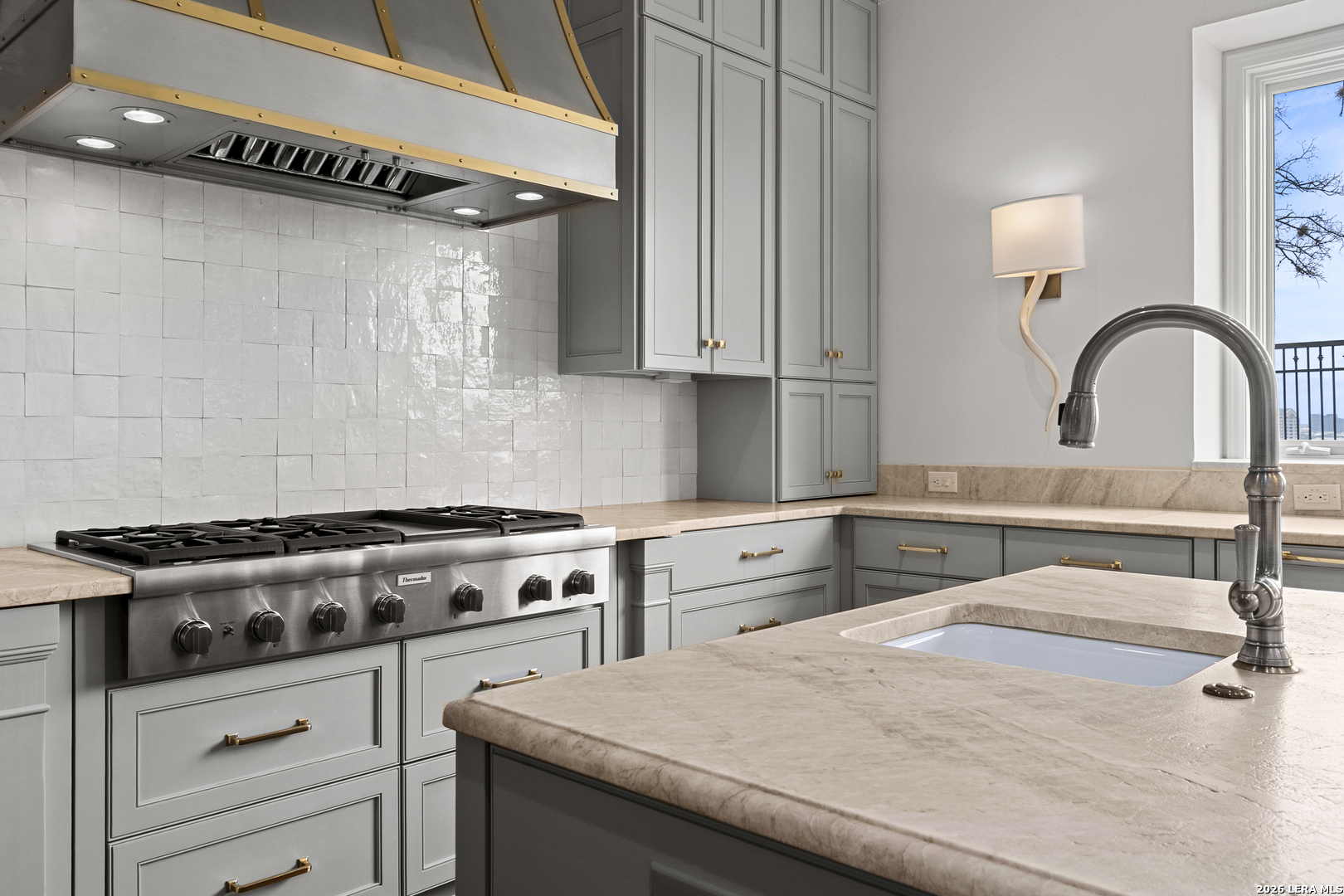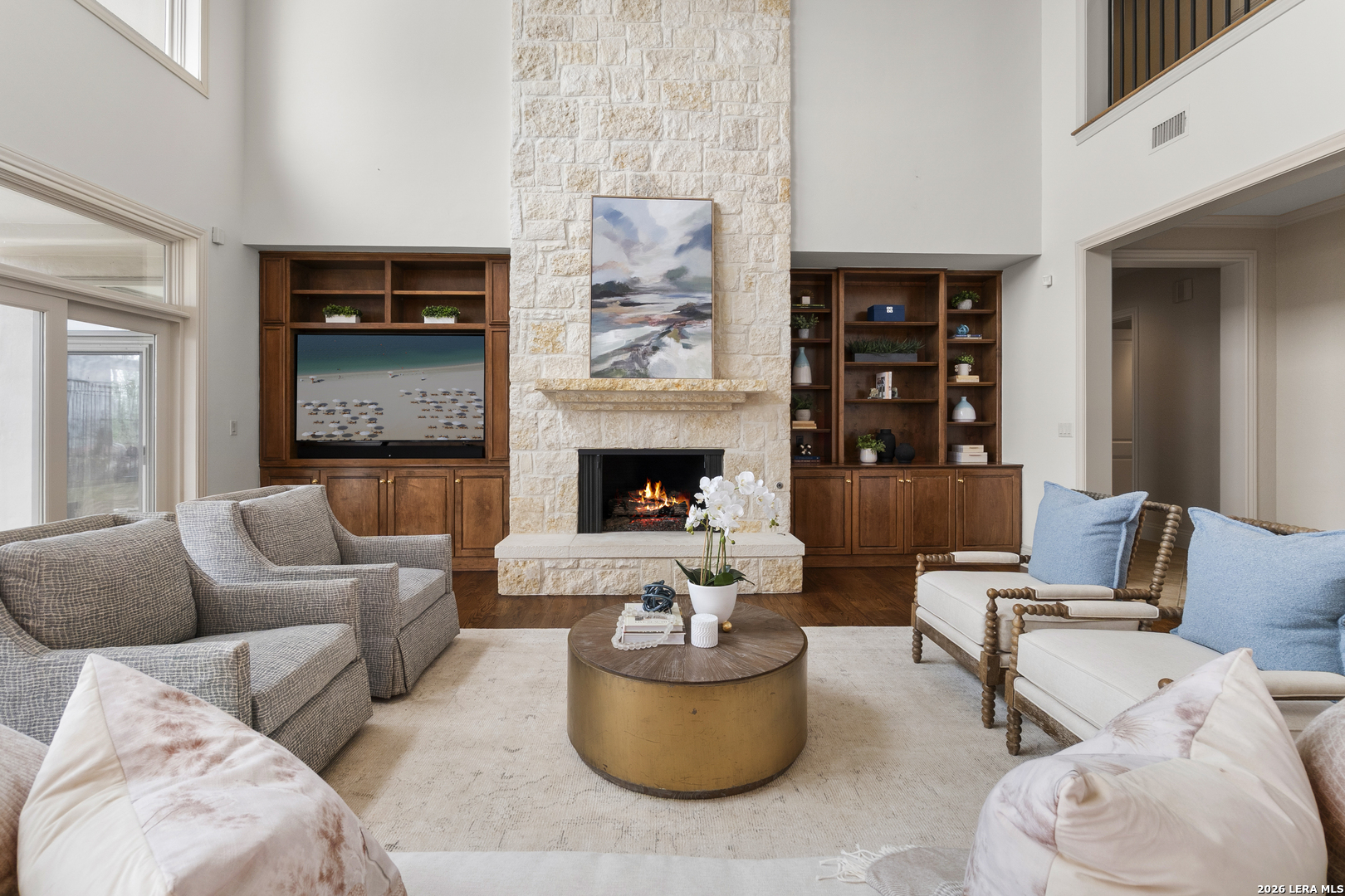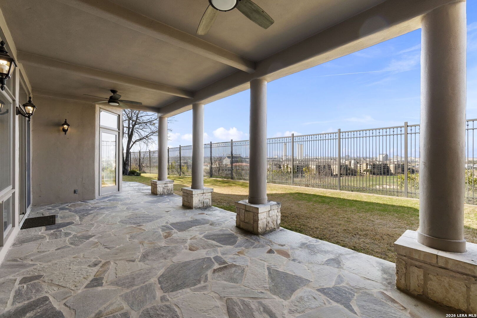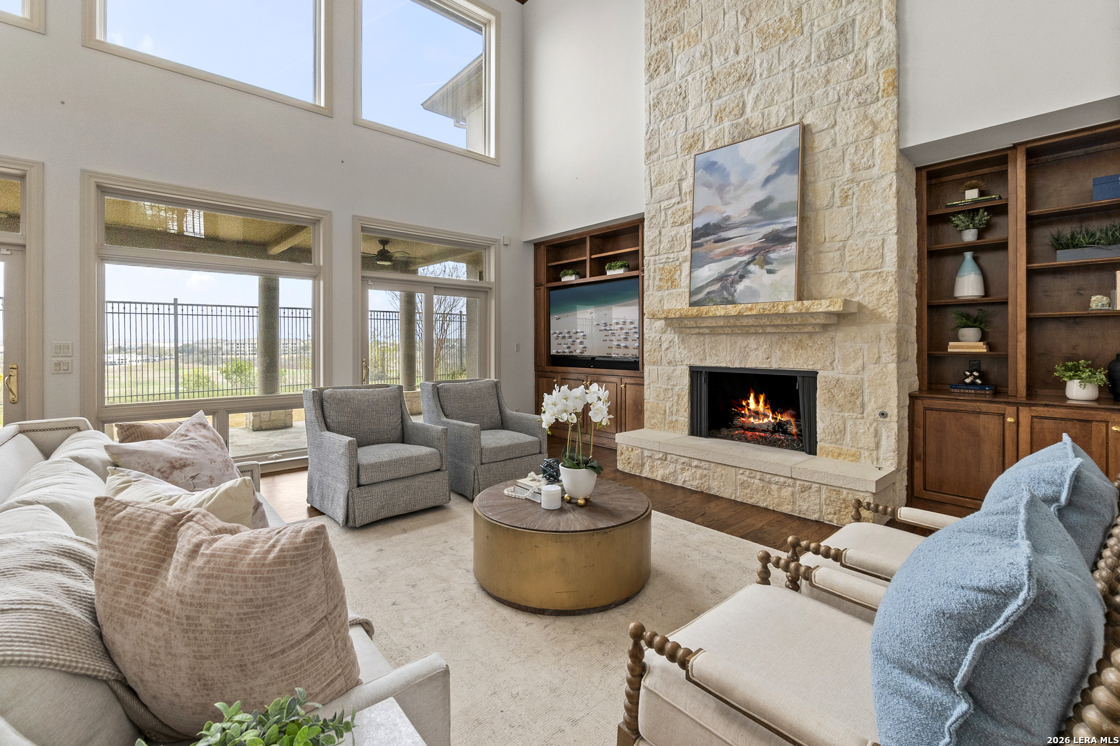 Welcome to 7 Oxford Hall - positioned on the top of the cliff in Alamo Heights, this Lincoln Heights estate offers breathtaking views of San Antonio's skyline and the Quarry Golf Course. A perfect blend of timeless elegance and modern luxury, every inch of this home is crafted with impeccable details. The high ceilings and panoramic windows set the grand tone in this two-story living room filled with natural light and a formal dining area ideal for hosting. The chef's kitchen imagined by local designer Julie Bradshaw stuns with premium appliances, a massive island with leathered Taj Majal Quartzite, a walk-in pantry, and a butler's pantry-both stylish and functional. The main-level primary suite is a serene retreat with dual walk-in closets, dual and separate vanities and separate closets. This home also features a private work out room, an elevator and multiple bonus areas that could be used for an office or secondary flex spaces. Upstairs, three ensuite bedrooms and a cozy sitting room open to a balcony with jaw-dropping views. From its unmatched craftsmanship to panoramic views, this isn't just a home-it's a lifestyle.
