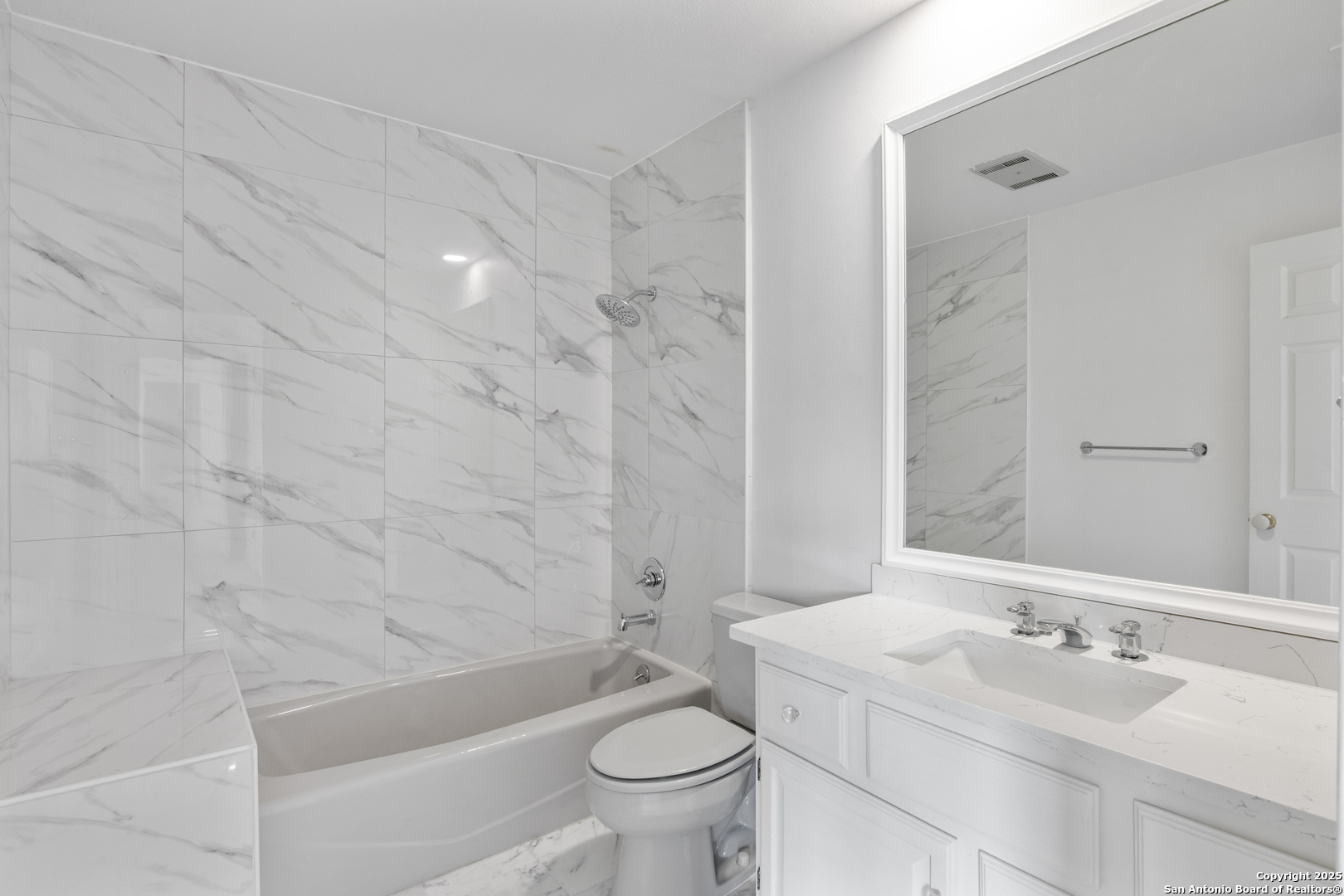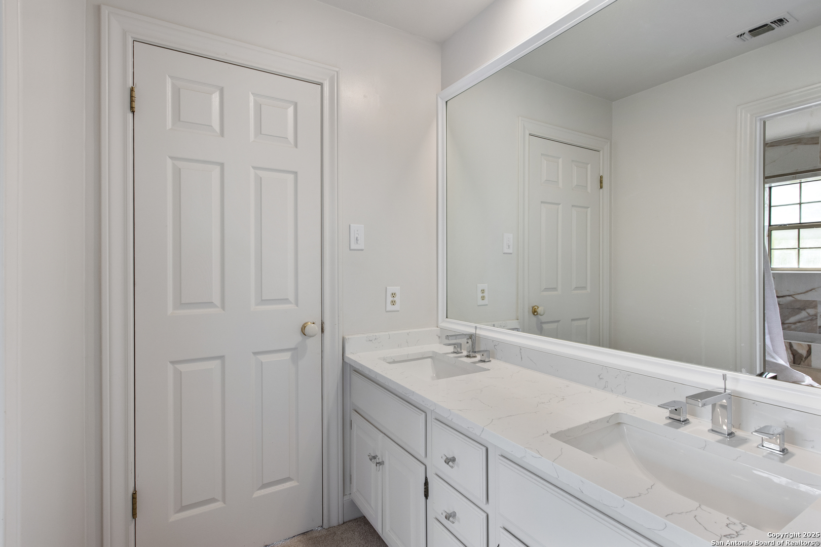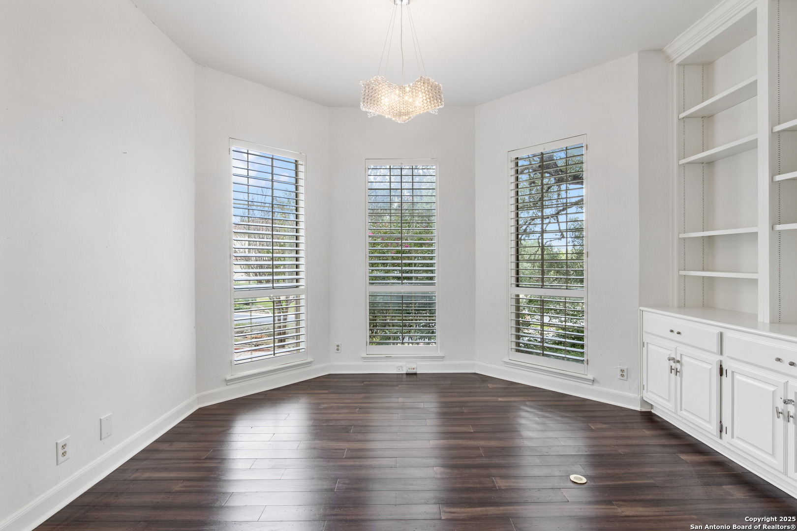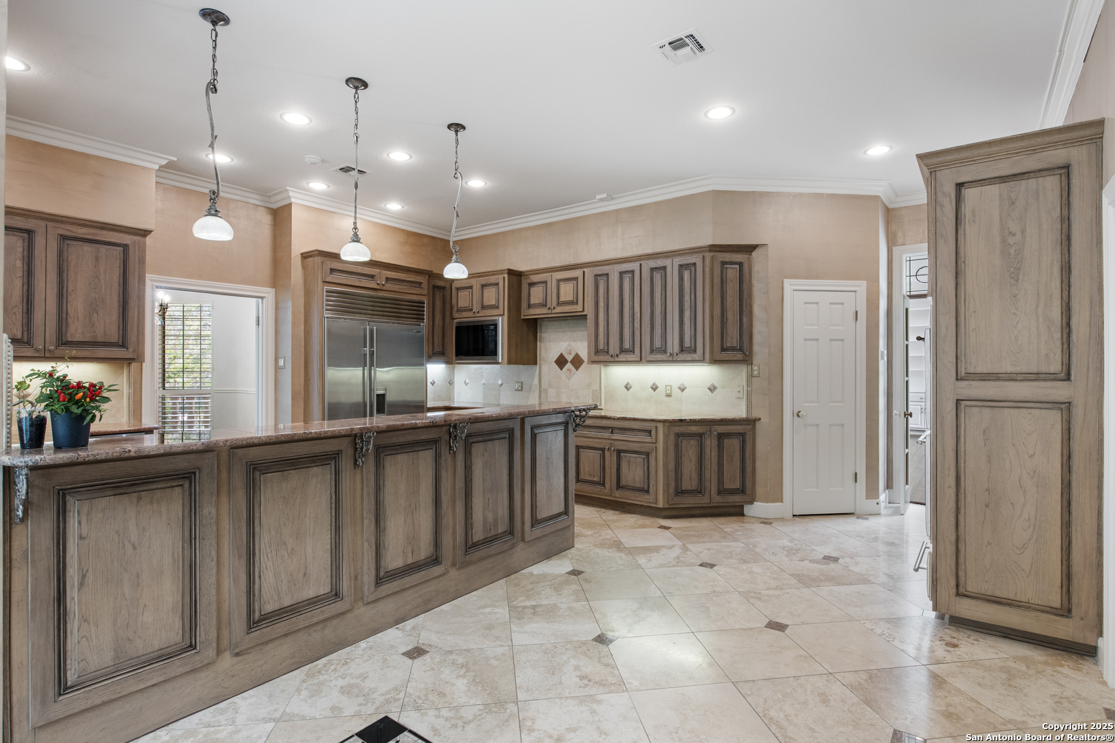 Experience timeless elegance and modern comfort in this stunning estate located in the prestigious Dominion. Nestled on 0.6 acres of beautifully landscaped grounds, this home offers serene walking paths, lush greenery, and a private backyard oasis with a sparkling pool. The stately brick exterior and circular drive welcome you to a residence designed for grand entertaining and everyday luxury. Inside, soaring ceilings and dramatic windows fill the living spaces with natural light, highlighting breathtaking views of the pool and gardens. The gourmet kitchen is a chef's dream with custom cabinetry, granite counters, and professional-grade appliances, seamlessly flowing into the breakfast and family areas. The expansive primary suite offers private outdoor access, a spa-inspired bath, and generous closet space. Multiple living areas, a game room, and a wet bar ensure ample room for relaxation and gatherings. Outdoors, mature landscaping, shaded sitting areas, and tranquil pathways create the perfect setting for entertaining or quiet retreat. With its blend of refined architecture, resort-style amenities, and an exclusive Dominion address, this extraordinary property is a rare opportunity to own one of San Antonio's finest homes.