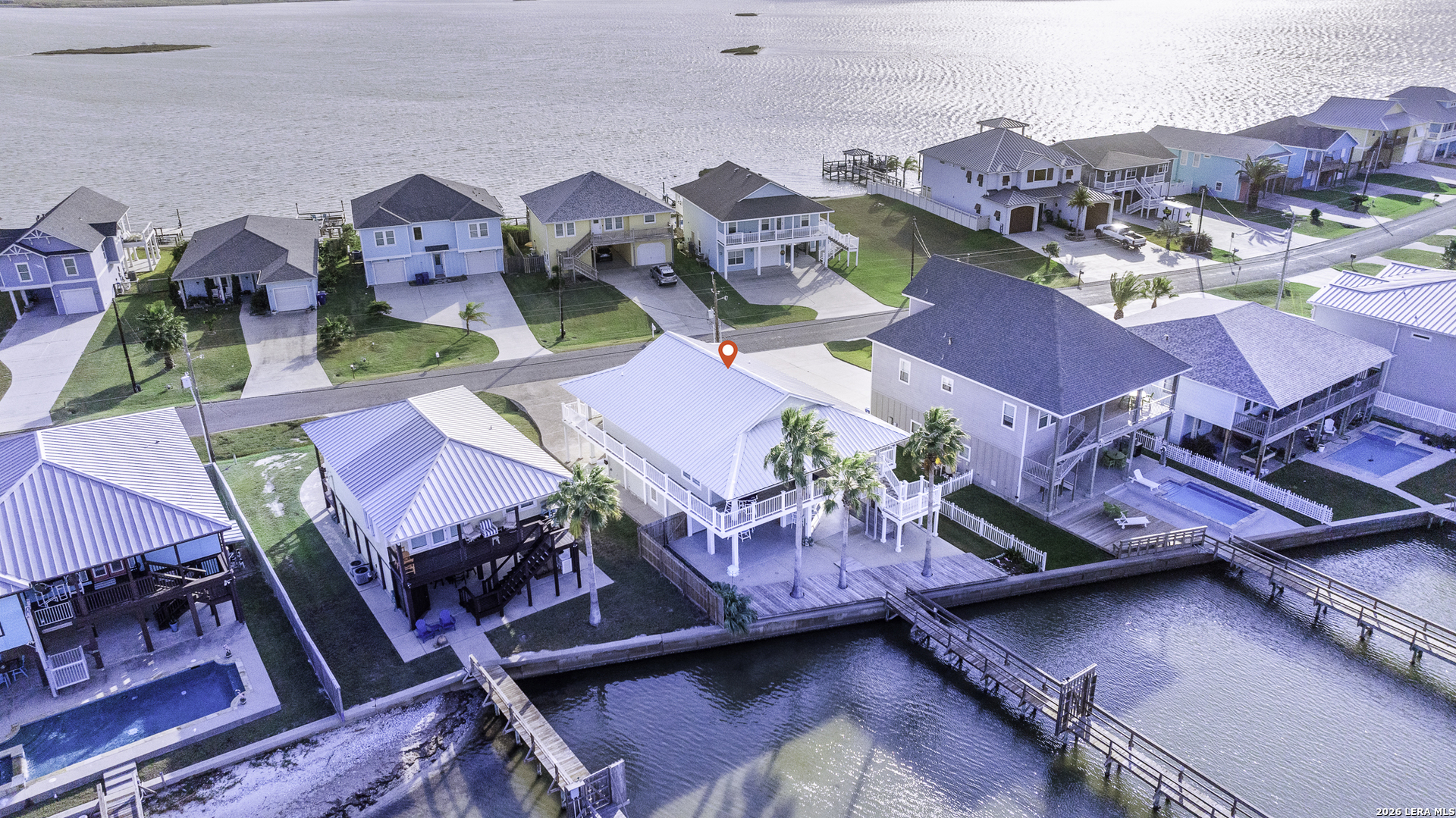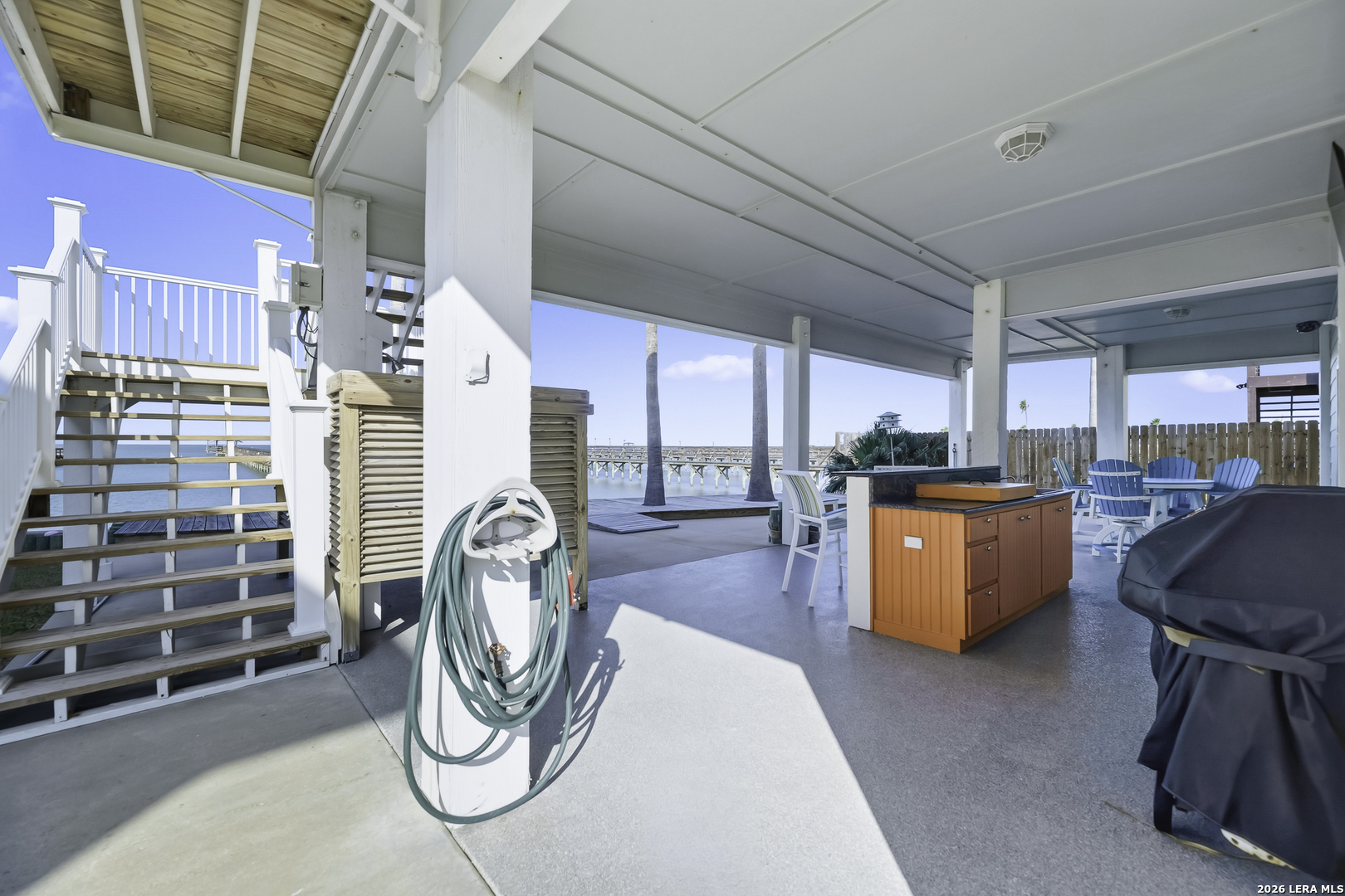 Escape to The Pearl of the Bay, an elite Copano Bayfront property distinguished by its 600' private pier, complete with cleaning station, electricity, water and an expansive T-head. The double handrails provide enhanced safety while underscoring the meticulous attention to detail that defines this property. The upper-level offers a bay view, open-concept design, granite countertops, and handcrafted all-wood interior finishings. No sheetrock was used in the construction of this home, ensuring superior durability and moisture resistance. A spacious primary suite captures sweeping water views and elevates everyday living to resort-style comfort. Constructed with SIP panels, the home delivers remarkable structural and windstorm integrity, energy efficiency, and enduring strength. Enjoy entertaining in the oversized, fully equipped kitchen, complete with double ovens-- a coastal chef's dream! The lower level features its own fully independent 1/1 private residence, ideal for guest accommodations or rental income. With two distinct living quarters, this property offers flexibility seldom found along the coast-live in one, rent the other, or simply enjoy the luxury of thoughtfully designed space for family and guests. Outdoor living is elevated to an art form. A wraparound porch featuring structurally composite railing frames the home, and a cargo lift adds effortless access. Both the garage and patio feature epoxy flooring, creating a clean, durable, and low-maintenance finish and a glass cooktop kitchen makes outdoor cooking a breeze. Town center, restaurants, shopping and groceries are all within a 10-minute reach. Offered fully turnkey, this estate conveys with every carefully curated detail-including interior and exterior furniture, local artisan decor, kitchenware, appliances, fishing equipment, and even the golf cart to fully envelop yourself in the resort-style coastal living experience! Simply arrive and embrace the luxury of coastal living at its finest!