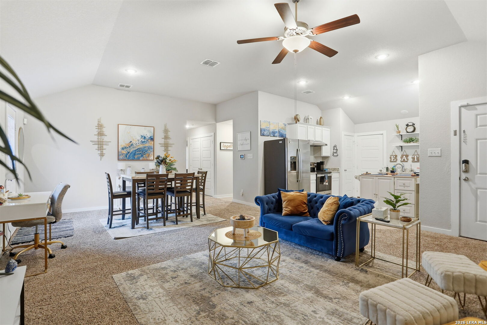 With neutral finishes and abundant natural light, this thoughtfully designed, newer construction home in the Sage Valley subdivision offers 3 bedrooms, 2 full baths, and an attached one-car garage. The functional open-concept layout is ideal for modern living, with the living and dining areas flowing seamlessly into the kitchen, featuring crisp cabinetry, stainless steel appliances, and a movable center island that doubles as an eat-in breakfast nook. The private primary suite provides a relaxing retreat, highlighted by a walk-in shower with a glass enclosure. Two secondary bedrooms are well-sized and versatile, ideal for guests, a home office, or a creative space. A dedicated laundry area and practical storage throughout enhance everyday convenience. Residents of Sage Valley enjoy access to a neighborhood park, offering everyday outdoor enjoyment just steps from home. A short commute to Lackland Air Force Base, along with easy access to major roadways and schools, adds additional convenience. Furnishings are available by separate agreement or may be considered with an acceptable offer. Schedule your tour today.