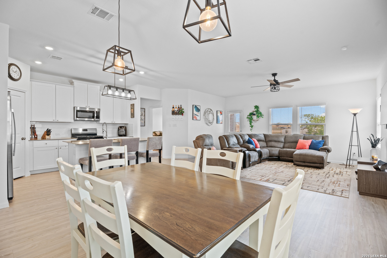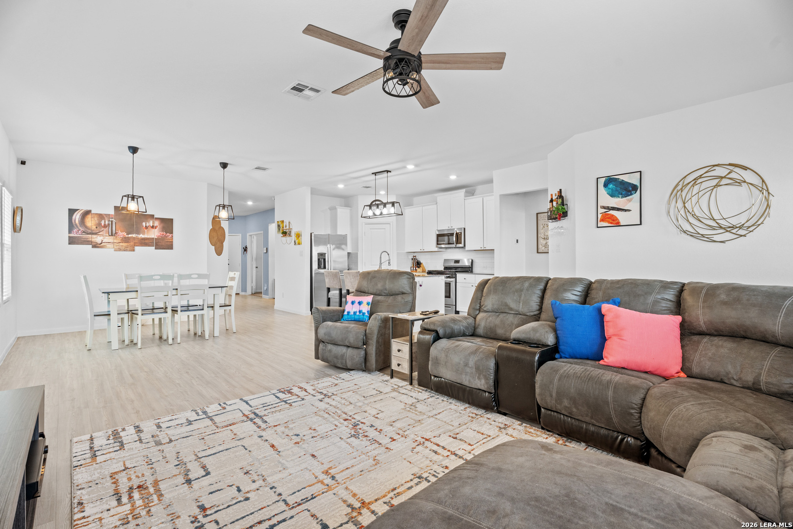 Spacious and thoughtfully designed one-story home featuring 3 generously sized bedrooms plus a dedicated office. You'll love the open floor plan that flows seamlessly from the kitchen into the living area-perfect for everyday living and entertaining. Step outside to an extended back patio with no back neighbors, offering added privacy and space to relax. The owner's suite is a true retreat with dual vanities, a large walk-in shower, and an oversized walk-in closet. Located on the bustling Far West Side, this home is ideal for those near Lackland AFB or anyone wanting quick access to Hwy 90 and 211. Enjoy life in a master-planned community with walking trails, a pool, park, clubhouse, and gym. Take this home off the market with just a $500 deposit! Seller is offering a 13-month home warranty, and the home is still under builder warranty. Meticulously maintained and move-in ready-plus enjoy free movers for the first two hours.