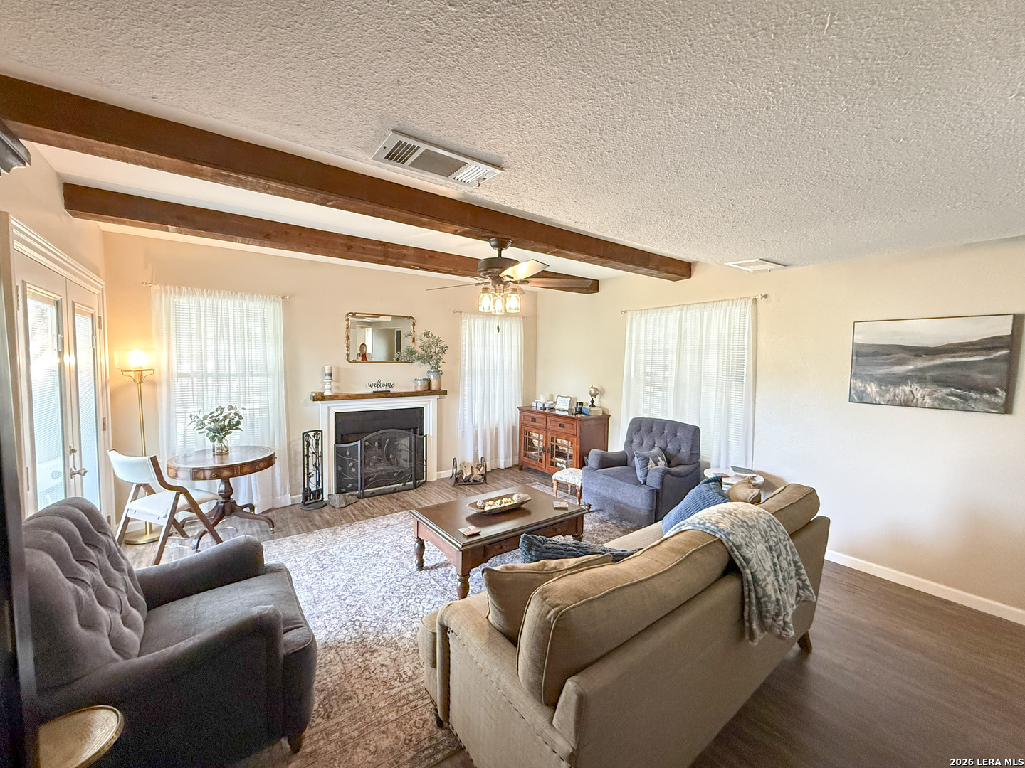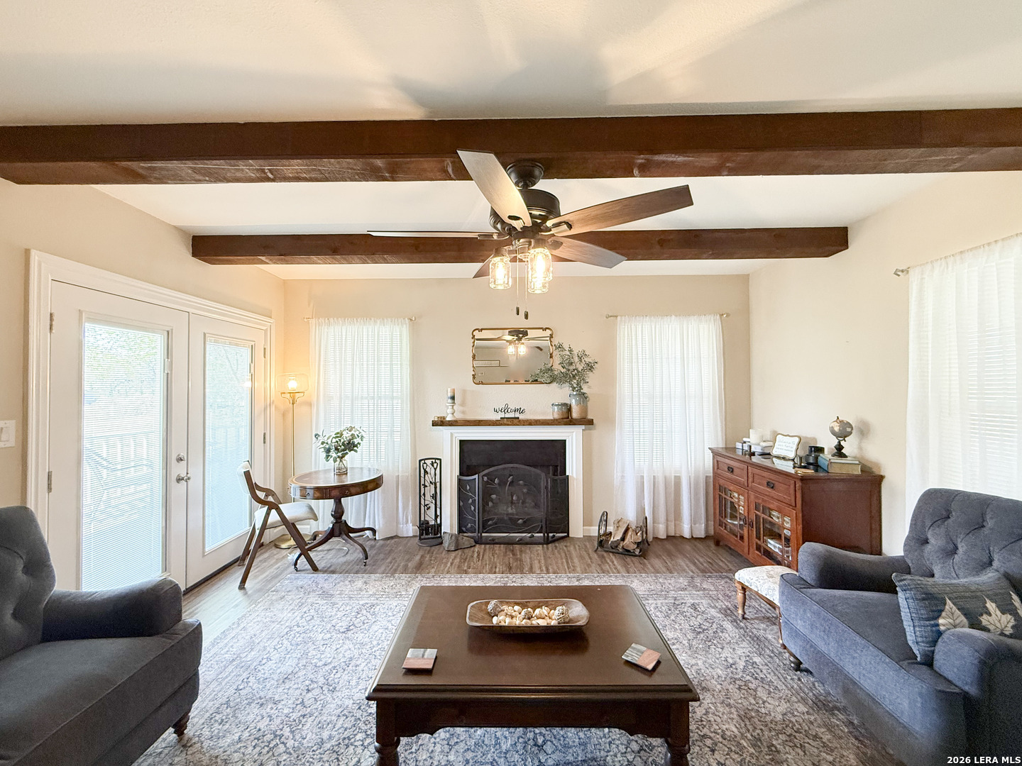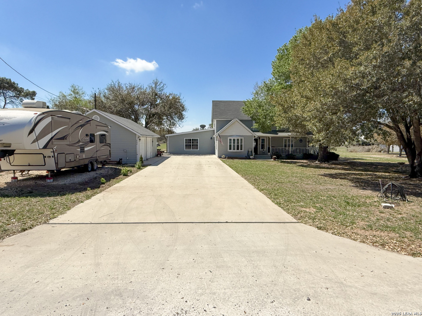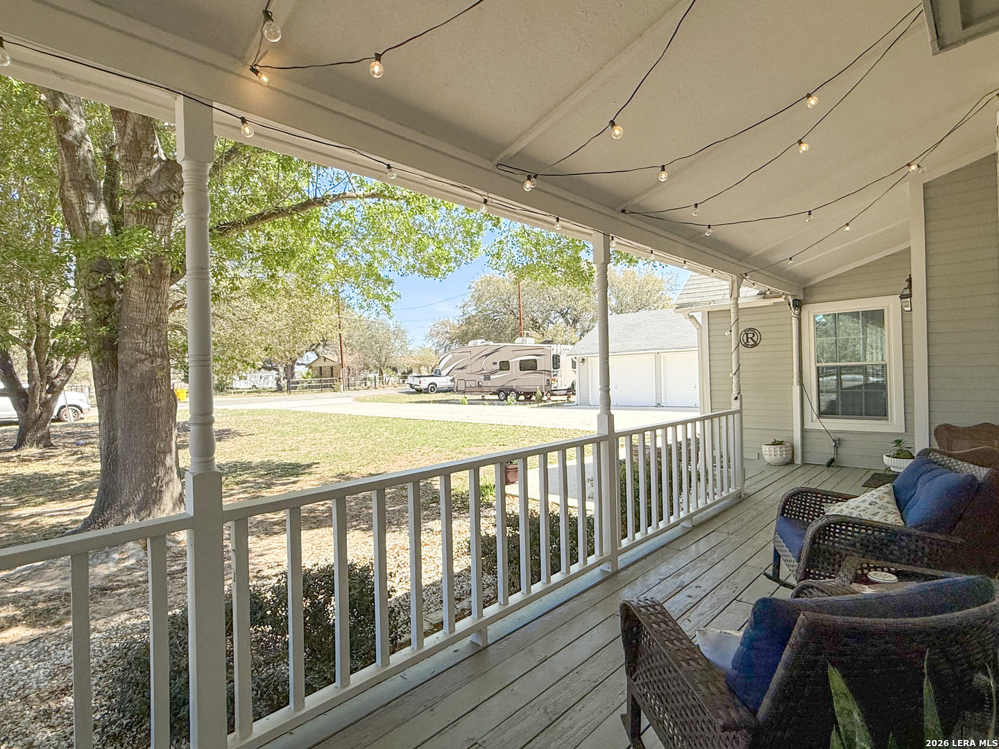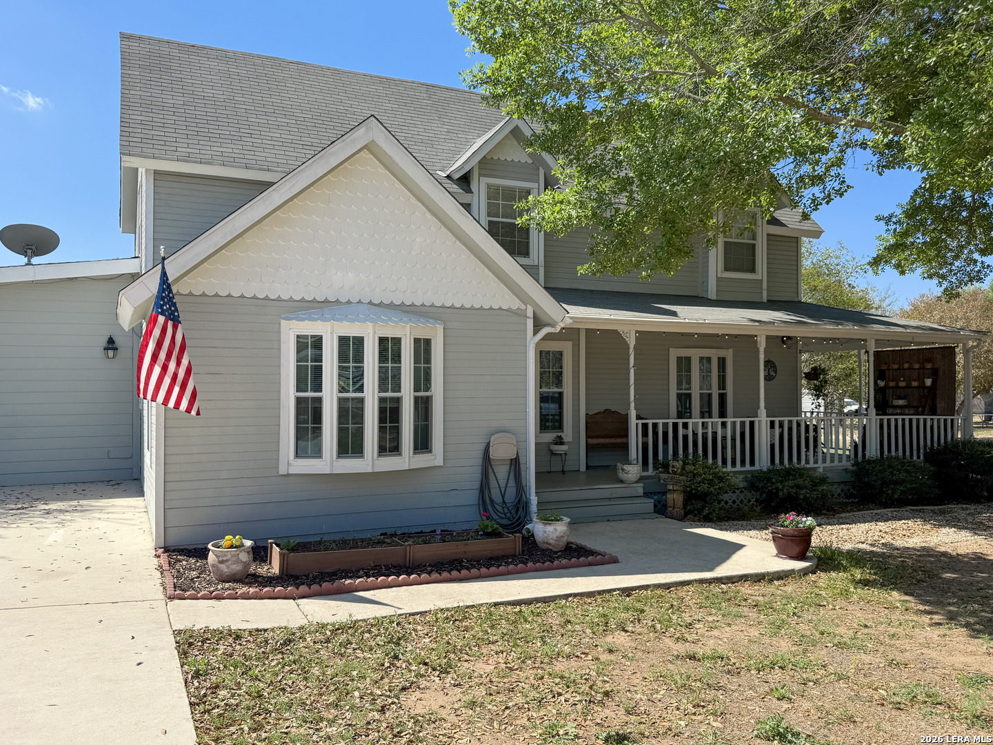 Set on 2.71 acres, this charming property blends space, comfort, and convenience into one exceptional property. A welcoming wrap-around front porch sets the tone, ideal for slow mornings or relaxing evenings outdoors. Inside, the living room is filled with natural light and accented by a cozy wood-burning fireplace. The open flow into the kitchen creates an ideal setting for entertaining and everyday living. The kitchen boasts a breakfast bar, ample cabinetry, and modern appliances, offering both function and style. An additional flex space is perfectly situated just off the kitchen, ideal for a home office or guests, and includes multiple closets for plenty of storage. The primary bedroom downstairs offers direct access to the porch, making this primary the perfect spot to unwind. Upstairs, two spacious bedrooms showcase vaulted ceilings and wooden beams, adding warmth and character throughout to your own personal retreat. A detached garage provides space for two vehicles along with additional storage. Outside, enjoy over two acres of private land with endless potential, whether you're looking to expand, garden, or add a pool for those long summer nights. Additional features include one acre of underground electric fencing for pets and a RV hookup for your added convenience. Offering the best of peaceful country living with easy access to nearby amenities, this home truly has it all. Schedule your private showing today and be one step closer to making this home part of your next chapter!