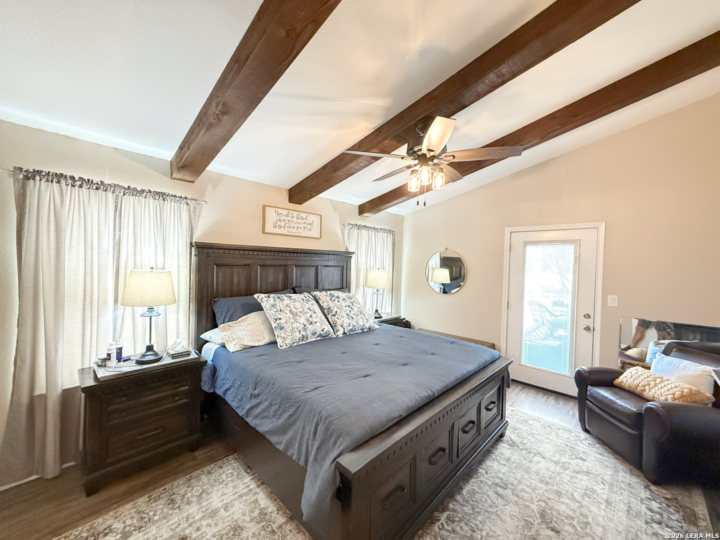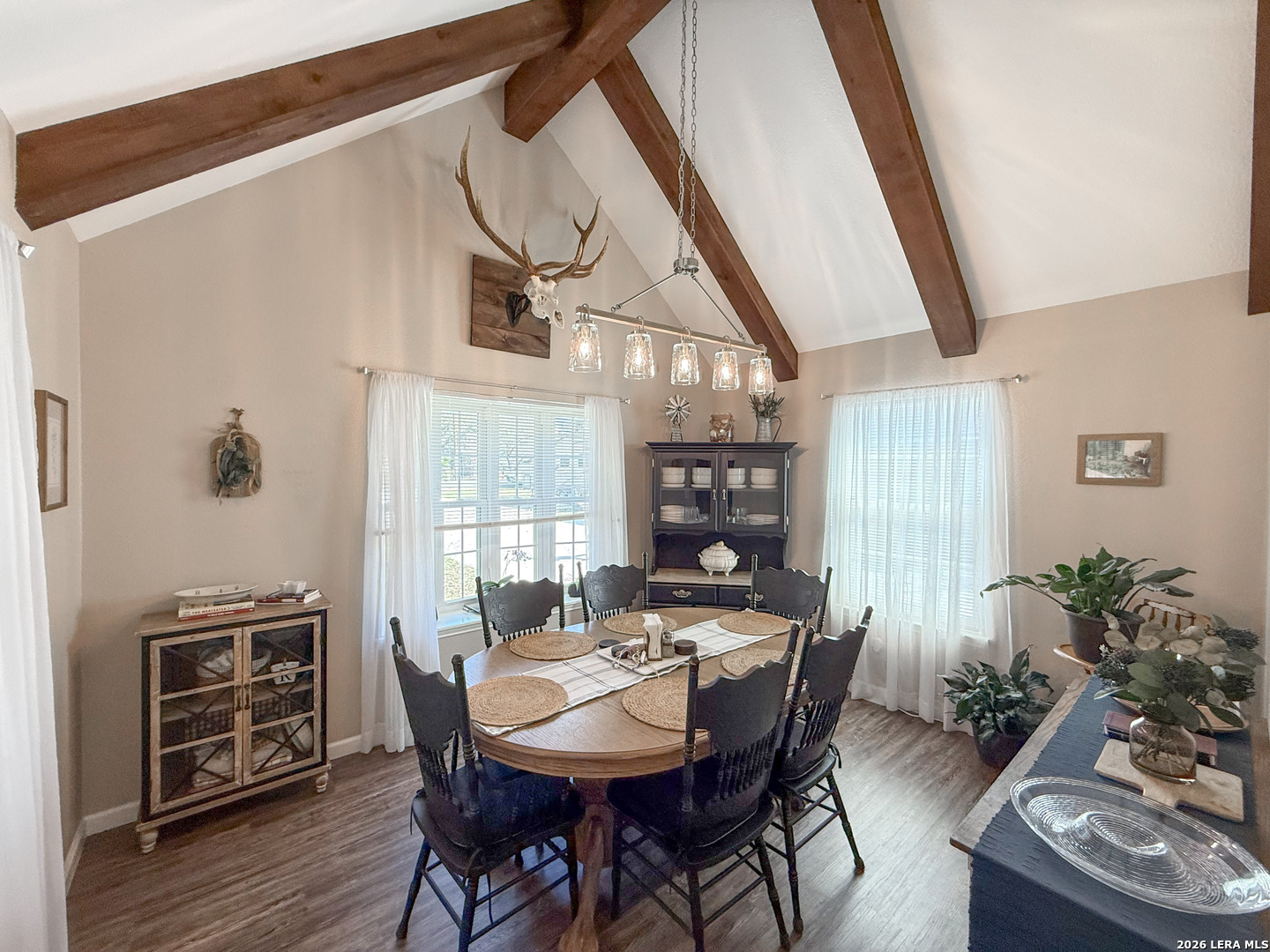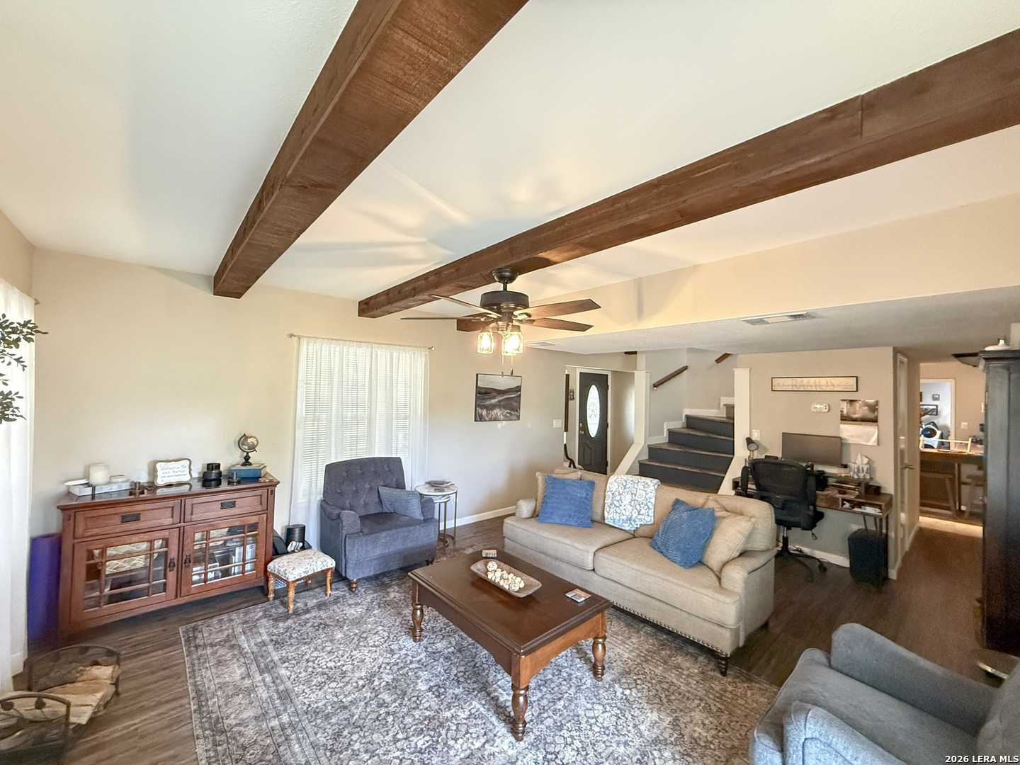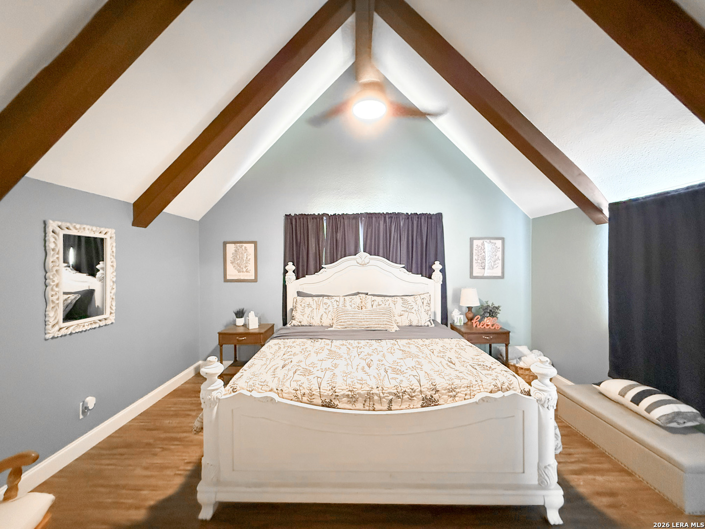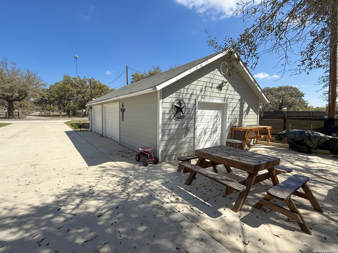 Set on 2.71 acres, this charming property blends space, comfort, and convenience into one exceptional property. A welcoming wrap-around front porch sets the tone, ideal for slow mornings or relaxing evenings outdoors. Inside, the living room is filled with natural light and accented by a cozy wood-burning fireplace. The open flow into the kitchen creates an ideal setting for entertaining and everyday living. The kitchen boasts a breakfast bar, ample cabinetry, and modern appliances, offering both function and style. An additional flex space is perfectly situated just off the kitchen, ideal for a home office or guests, and includes multiple closets for plenty of storage. The primary bedroom downstairs offers direct access to the porch, making this primary the perfect spot to unwind. Upstairs, two spacious bedrooms showcase vaulted ceilings and wooden beams, adding warmth and character throughout to your own personal retreat. A detached garage provides space for two vehicles along with additional storage. Outside, enjoy over two acres of private land with endless potential, whether you're looking to expand, garden, or add a pool for those long summer nights. Additional features include one acre of underground electric fencing for pets and a RV hookup for your added convenience. Offering the best of peaceful country living with easy access to nearby amenities, this home truly has it all. Schedule your private showing today and be one step closer to making this home part of your next chapter!