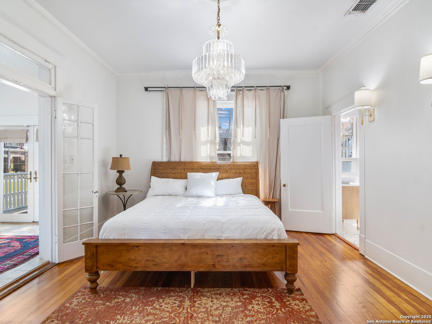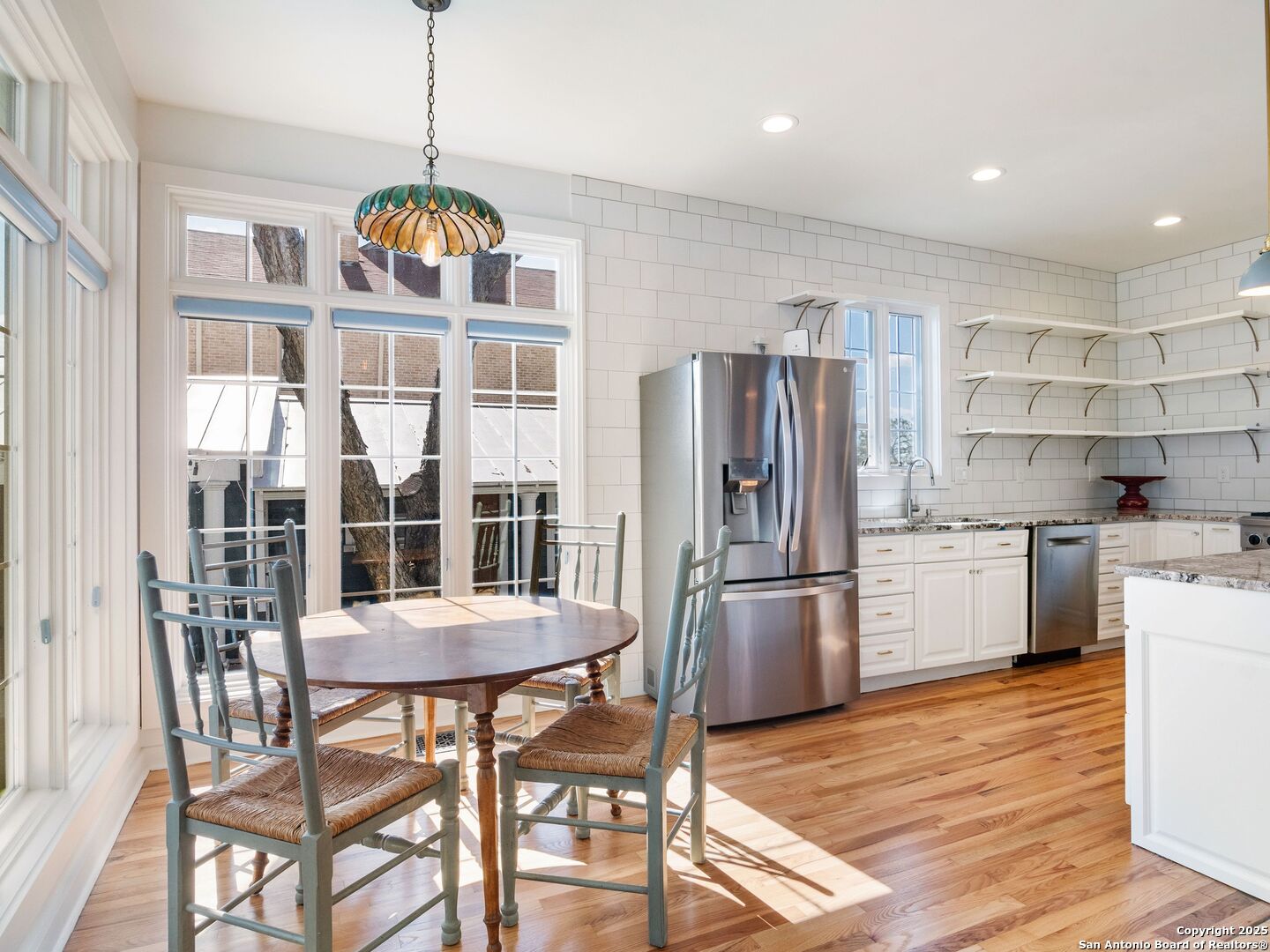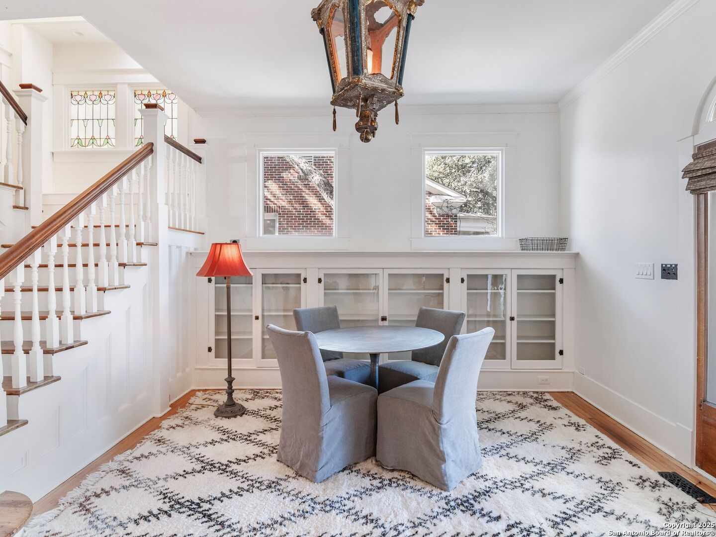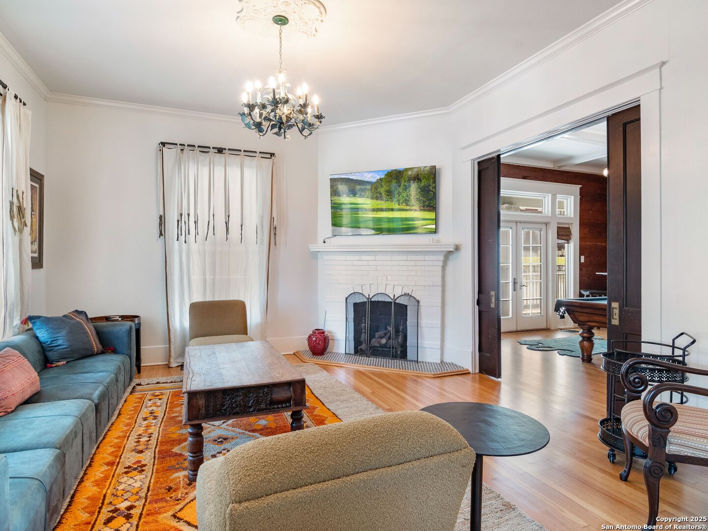 Nestled in the heart of the Alta Vista Conservation District, this beautifully remodeled Colonial home seamlessly blends historic charm with modern elegance. Conveniently located near the vibrant Pearl District, this residence features exquisite architectural details, a newly designed kitchen and bathrooms with custom cement tile, and a charming wraparound porch. The second-level outdoor deck offers breathtaking views of downtown, perfect for relaxing or entertaining. The property also includes a 430 sq. ft. enclosed two-car garage. Don't miss the opportunity to own a piece of San Antonio's history with all the conveniences of modern living!