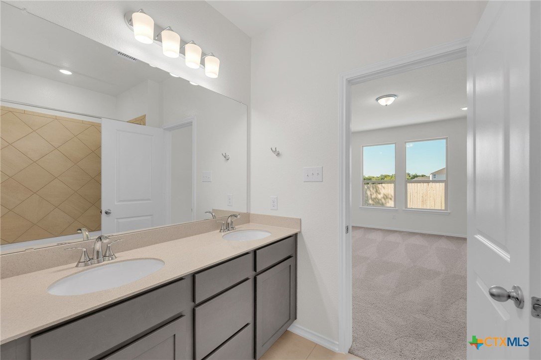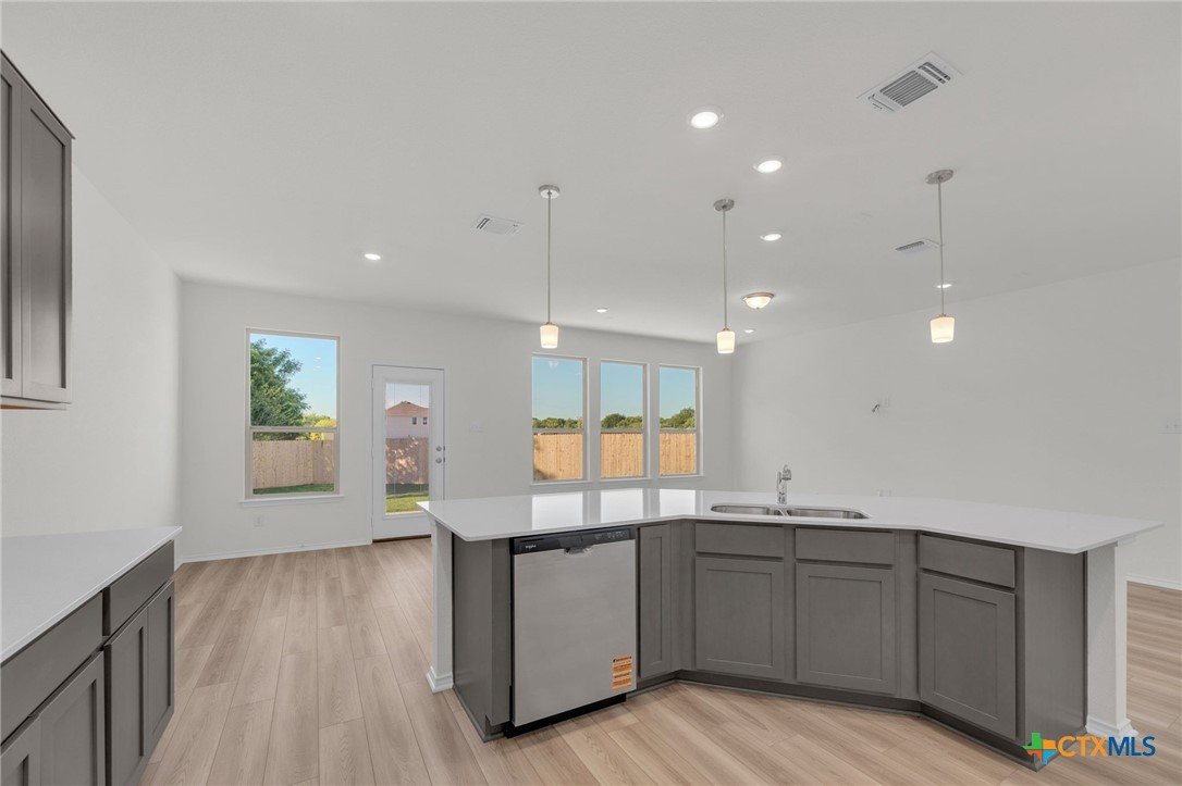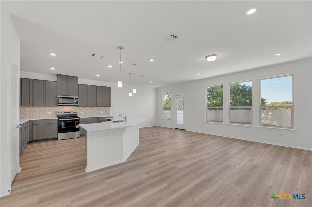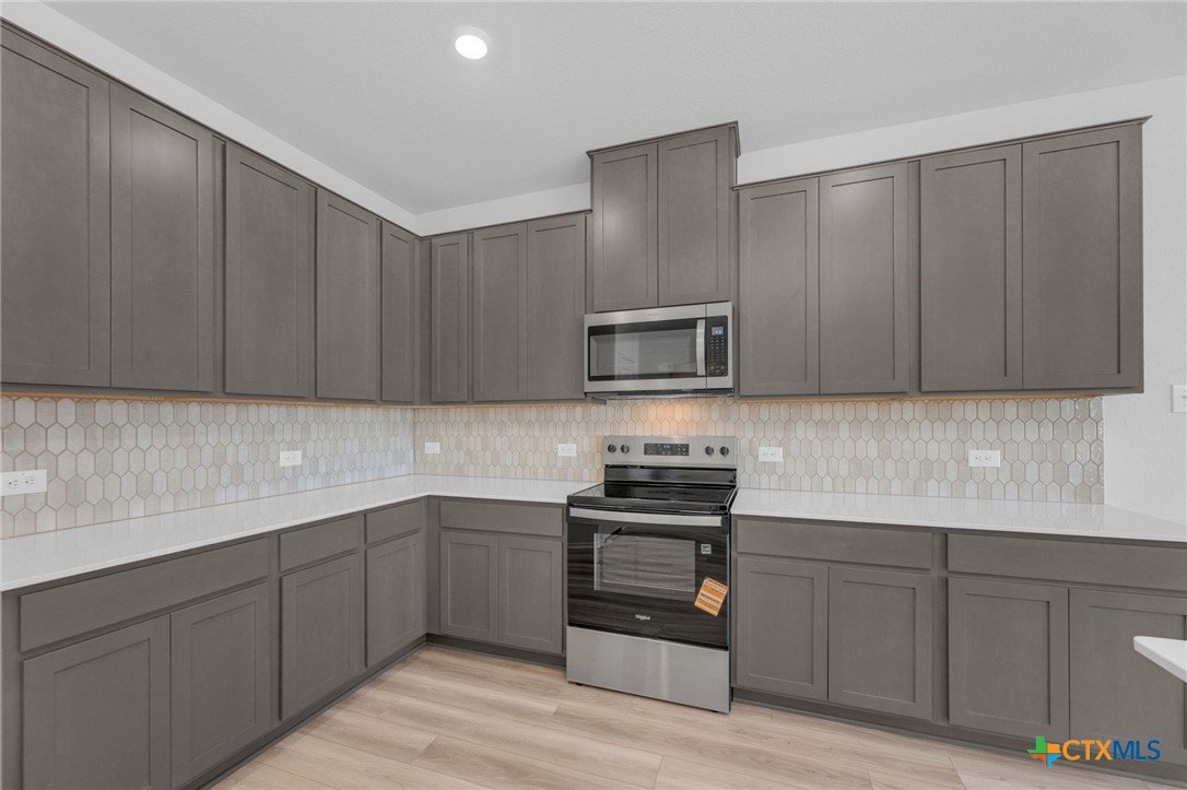 This gorgeous, two-story home showcases an open floor plan with stylish luxury vinyl plank flooring and a spacious great room for entertaining. A den provides space for a home office or private retreat. The kitchen boasts Shaker-style upper cabinets, sleek tile backsplash and Silestone® countertops in Blanco Maple. Unwind in the first-floor primary bedroom, which features plush carpeting, a walk-in closet and connecting bath that offers a dual-sink vanity and tub/shower combination with tile backsplash. Upstairs, a versatile game room awaits. Additional highlights include a smart thermostat, timeless Sherwin-Williams® interior paint and modern Moen® fixtures throughout.