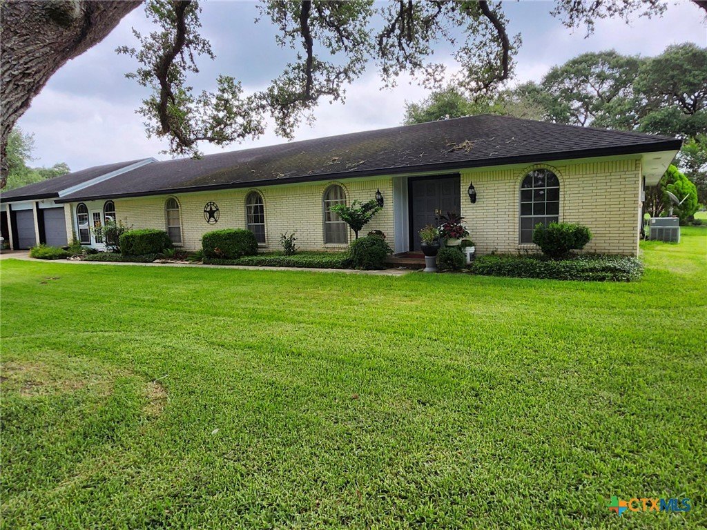 Country estate with 2 1/2 +/- acres and large oak trees away from the city and close to Coleto Creek and Coleto Lake water activities. This home has an attached 3 vehicle, oversized garage with lots of attic storage space! It also has two primary suites. One has walk in shower and the other would be a perfect suite for additional family member who would like a walk in spa! Plenty of room for additional buildings, a pool, and/or animals. Plenty of space for a large garden and fruit trees as well! The immediate yard is fenced but the boundary line goes well beyond the fence! It is completely bricked and all the trim is Hardi plank! Established neighborhood!