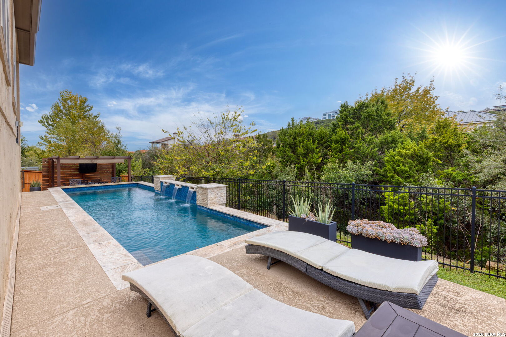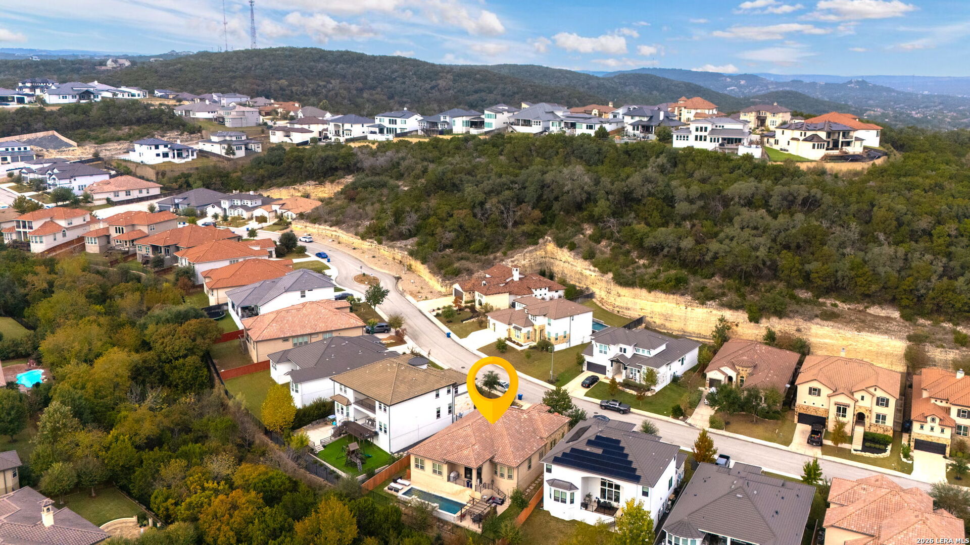 Exquisite single-story residences in the prestigious Cresta Bella subdivision. This elegant 4-bedroom home offers a thoughtfully designed layout featuring a game room, flex room, and private study-ideal for both refined living and upscale entertaining. Designer finishes include 42-inch custom cabinetry, granite countertops, a statement custom fireplace, and wrought iron French doors that open to the outdoor living space. The resort-style Cody pool creates a private backyard retreat. Ideally located just minutes from The Shops at La Cantera, Six Flats Fiesta Texas, and The Rim, offer both luxury and convenience.