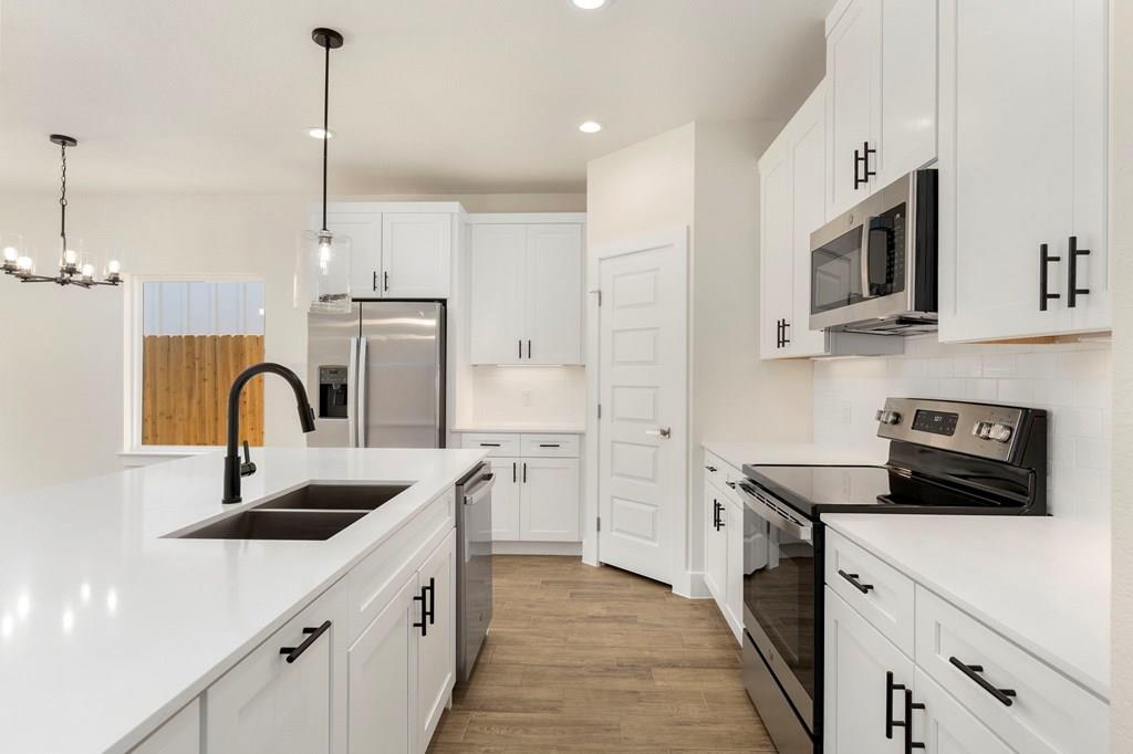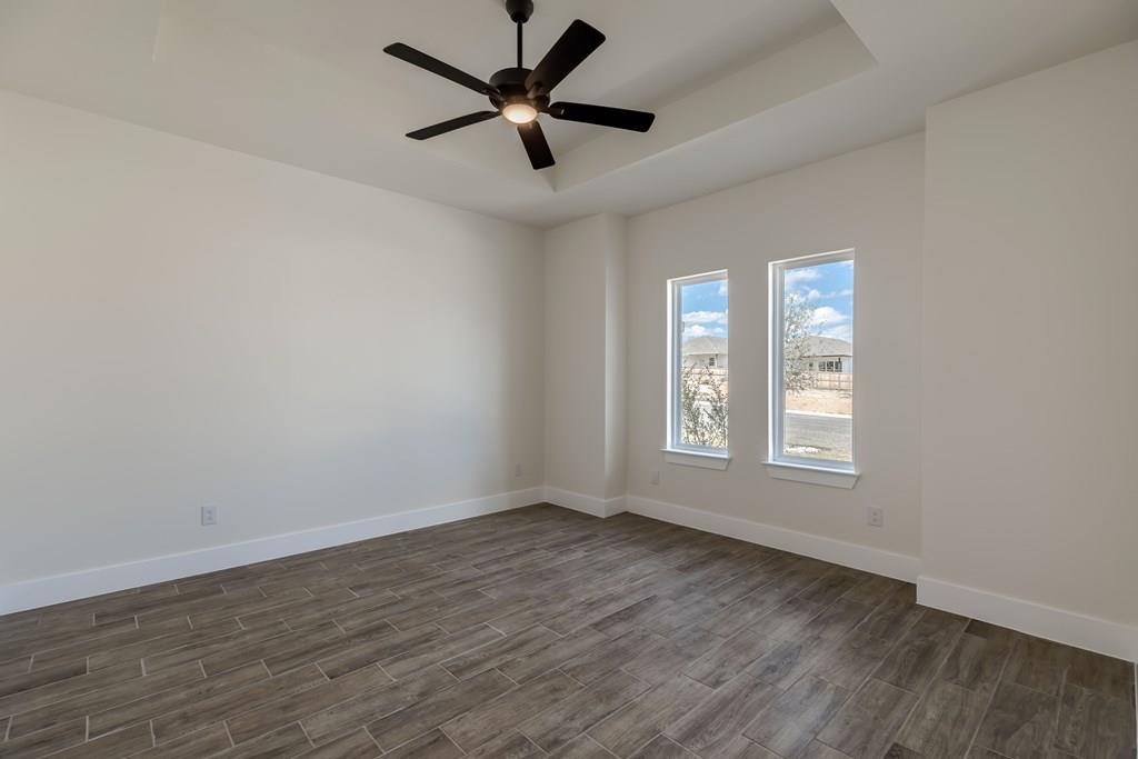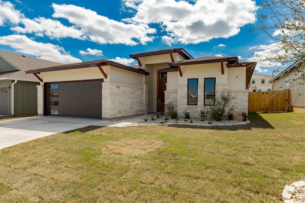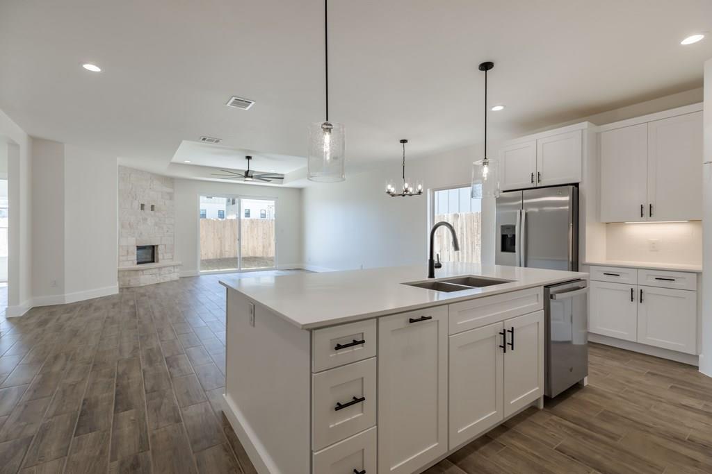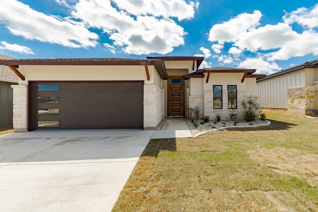 READY TO MOVE IN BRAND NEW CONSTRUCTION! This Newly Constructed "Hill Country Signature Home” features clean lines and a light and bright open concept while maintaining the warmth you expect of a Fredericksburg Texas Hill Country Home. The great room concept features high ceilings and "wood grain" tile floors, an electric fireplace (just press a switch for the cozy warmth a fireplace produces), plus plenty of windows. The kitchen includes white painted cabinets with soft close drawers and doors, under cabinet lighting, quartz counters, electric range, refrigerator, dishwasher, microwave, and pantry, plus a kitchen bar and adjoining dining area. There are 2 master suites complete with walk-in closets and well-appointed en-suites both with roll-in showers, plus a large office. Also featured are a half-bath and laundry/utility room. The exterior is stucco and rock for easy maintenance. 2-car garage, and nicely landscaped yards with sprinkler system. This home is minutes from the charming town of Fredericksburg with its great restaurants, wineries, shopping, and medical facilities.