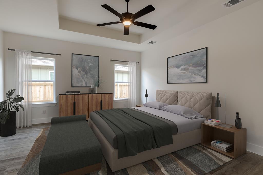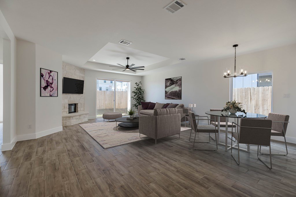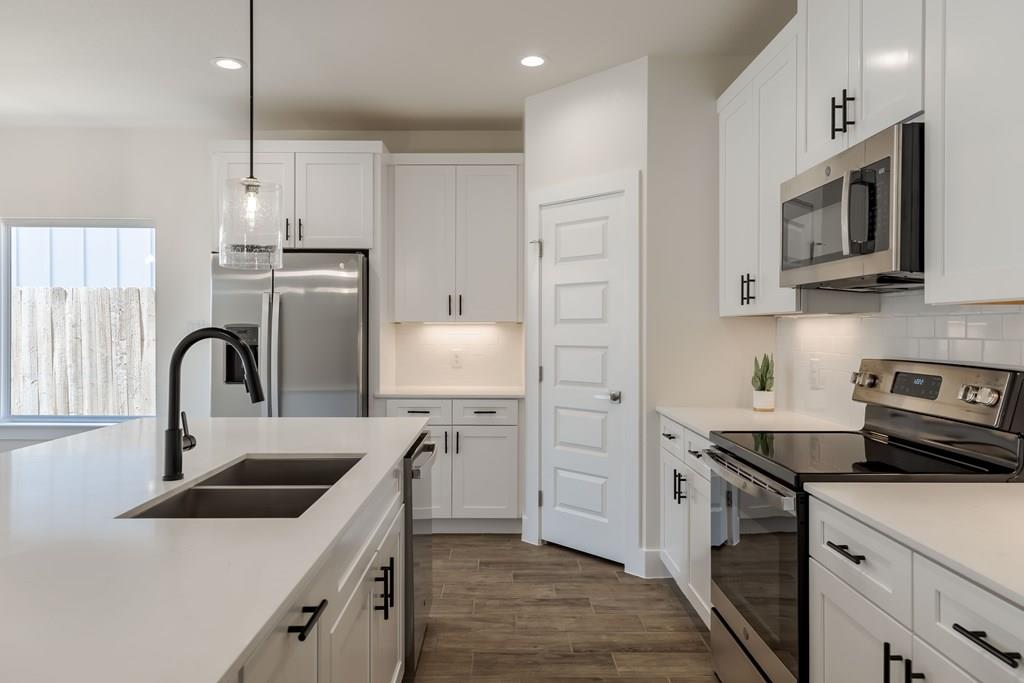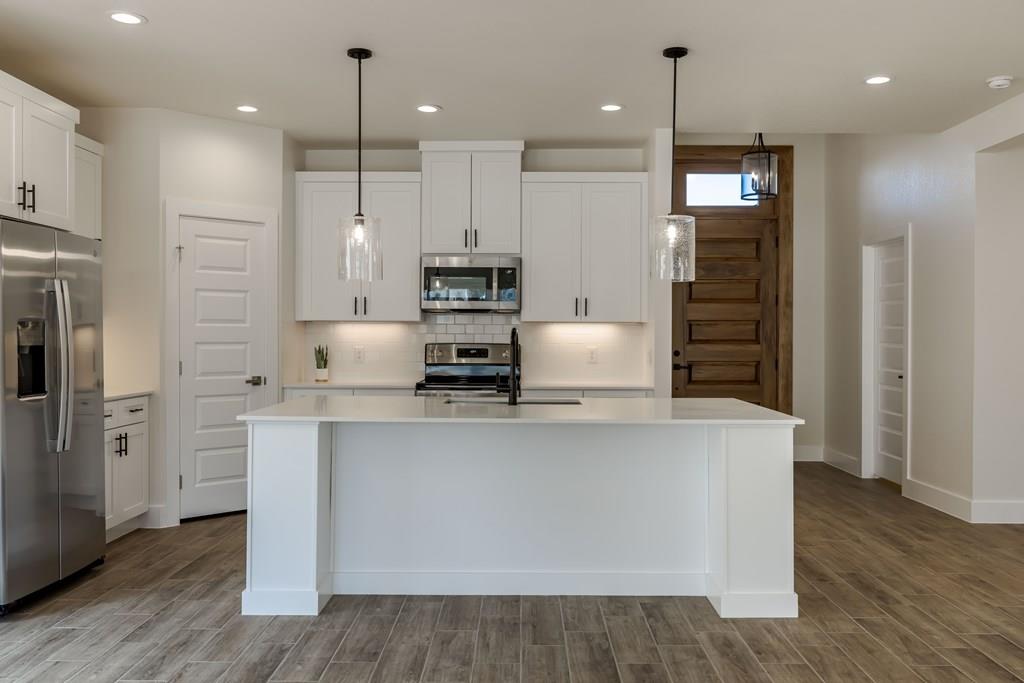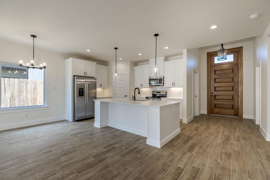 READY TO MOVE IN BRAND NEW CONSTRUCTION! This Newly Constructed "Hill Country Signature Home” features clean lines and a light and bright open concept while maintaining the warmth you expect of a Fredericksburg Texas Hill Country Home. The great room concept features high ceilings and "wood grain" tile floors, an electric fireplace (just press a switch for the cozy warmth a fireplace produces), plus plenty of windows. The kitchen includes white painted cabinets with soft close drawers and doors, under cabinet lighting, quartz counters, electric range, refrigerator, dishwasher, microwave, and pantry, plus a kitchen bar and adjoining dining area. There are 2 master suites complete with walk-in closets and well-appointed en-suites both with roll-in showers, plus a large office. Also featured are a half-bath and laundry/utility room. The exterior is stucco and rock for easy maintenance. 2-car garage, and nicely landscaped yards with sprinkler system. This home is minutes from the charming town of Fredericksburg with its great restaurants, wineries, shopping, and medical facilities.